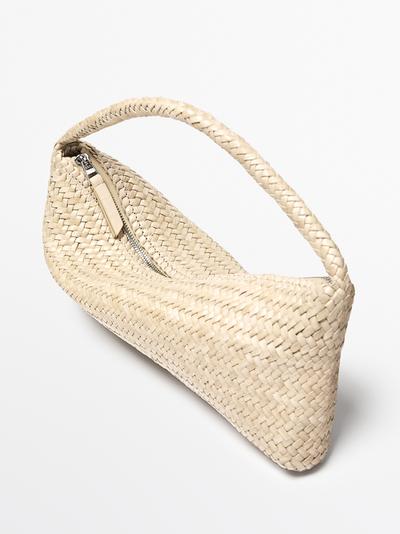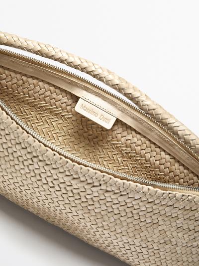 Massimo Dutti Сумка-круассан из плетеной кожи наппа, белый