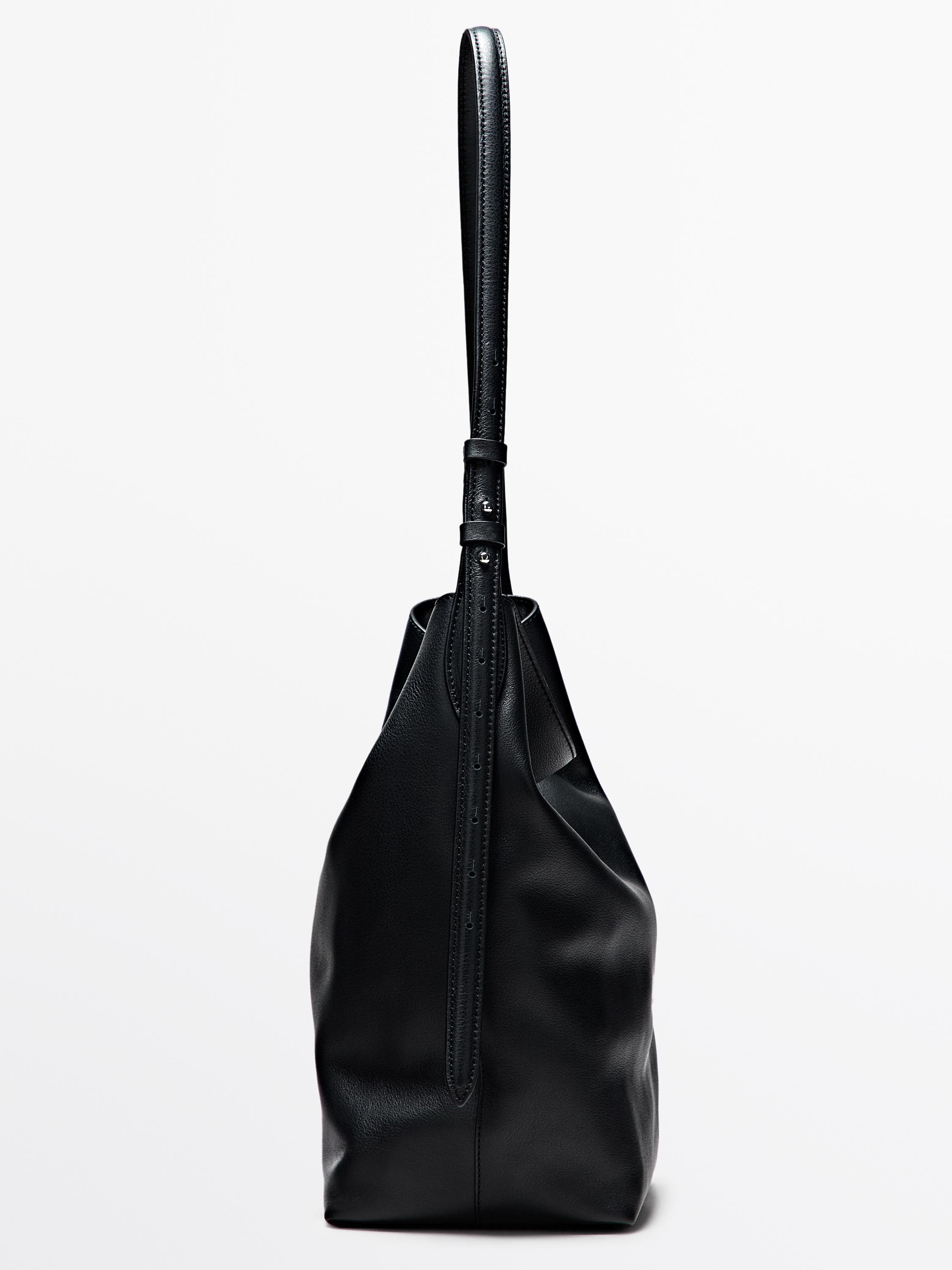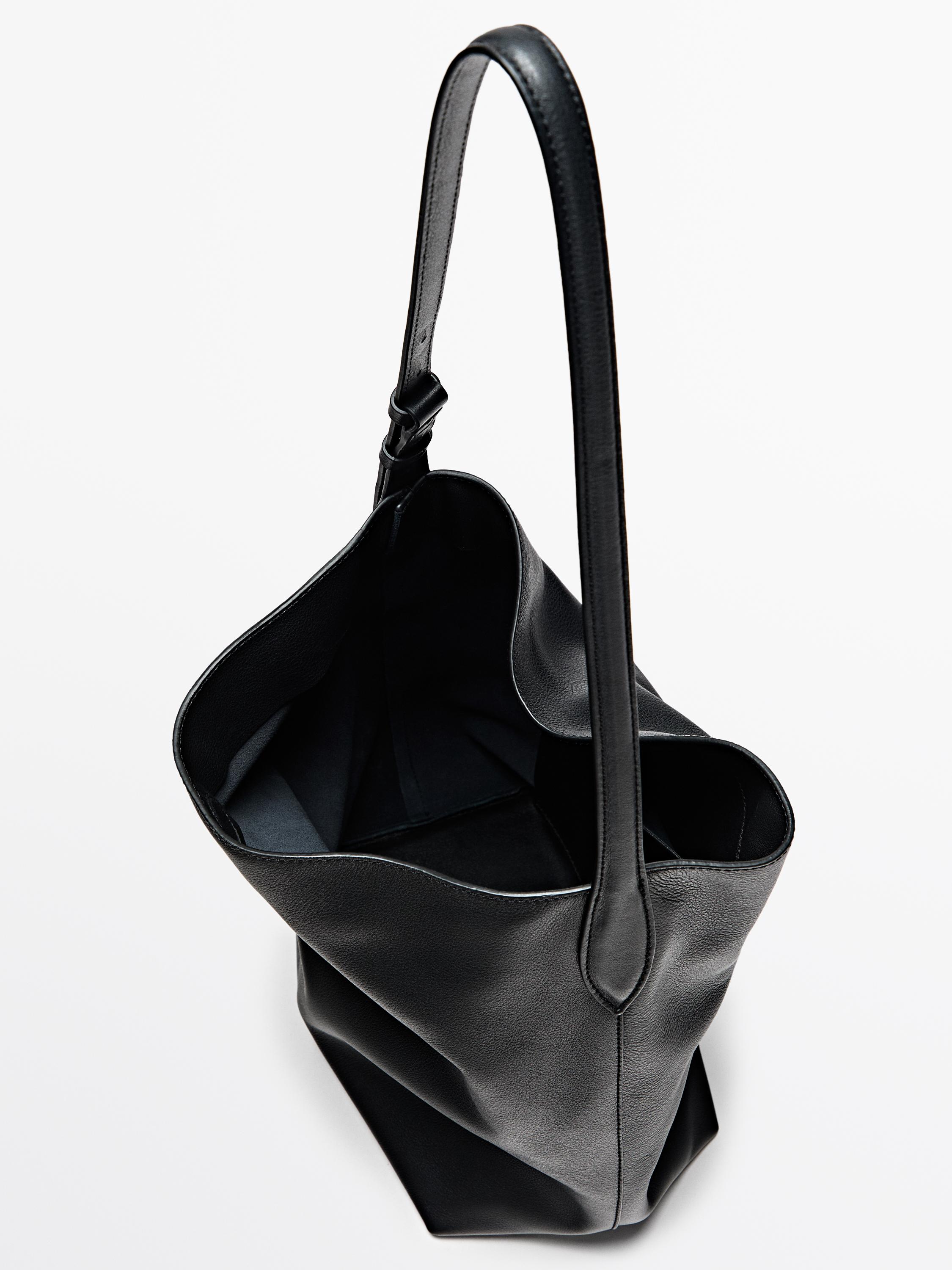 Massimo Dutti Сумка-мешок из кожи наппа, черный