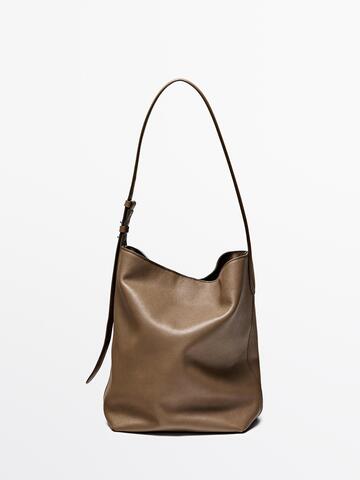 Massimo Dutti Сумка-мешок из кожи наппа, серо-коричневый