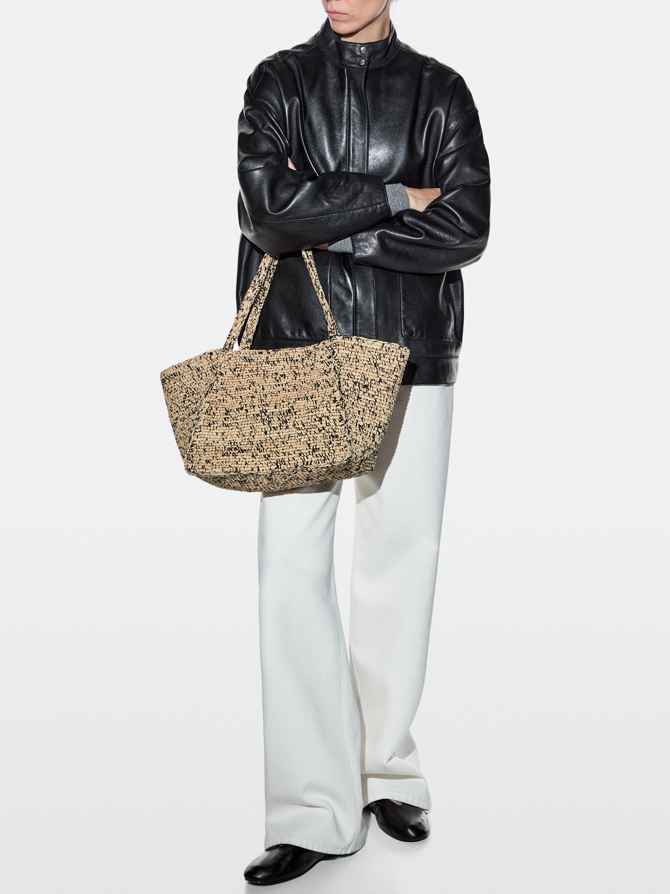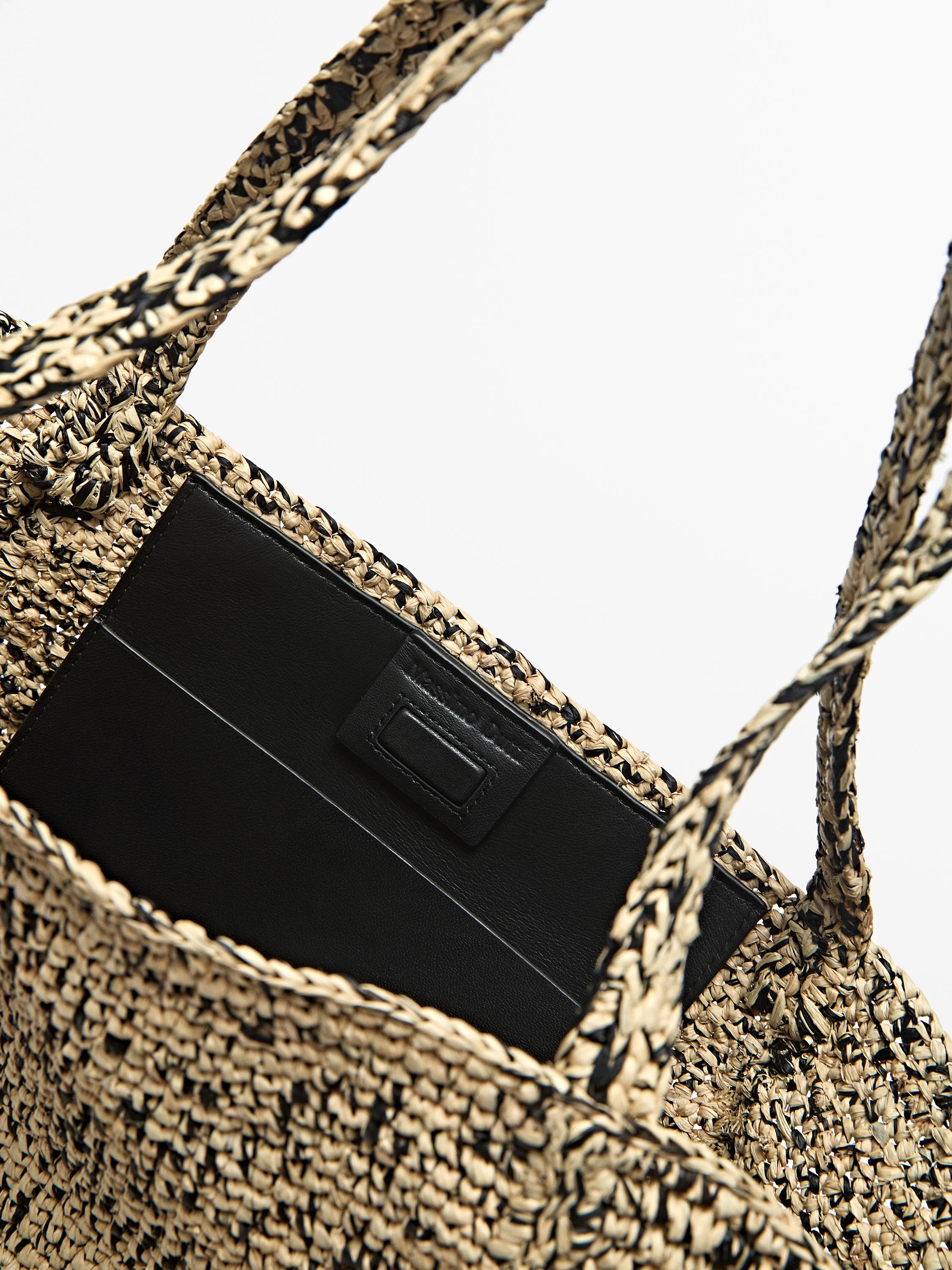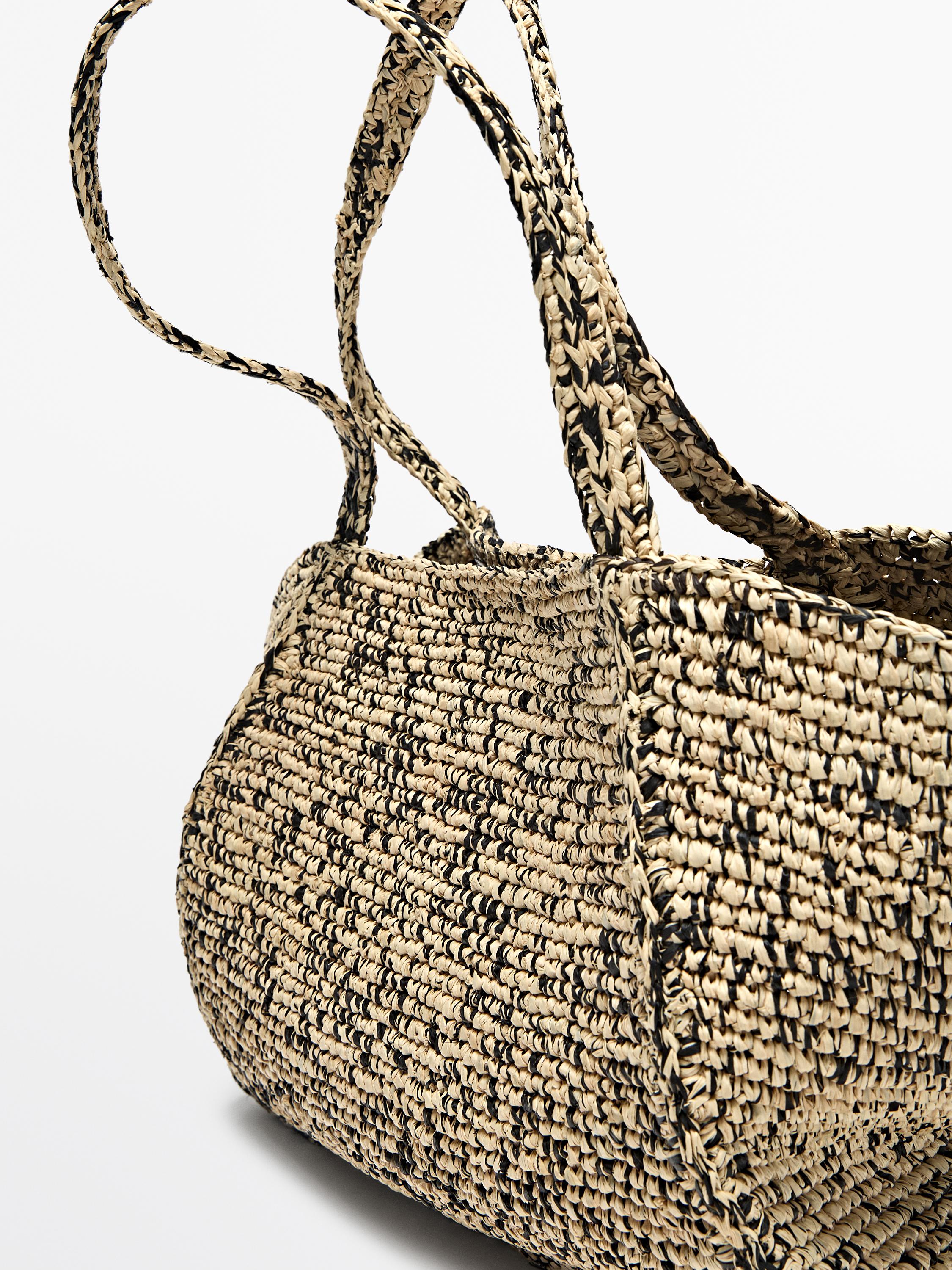 Massimo Dutti Сумка-шоппер среднего размера из 100% рафии, серый