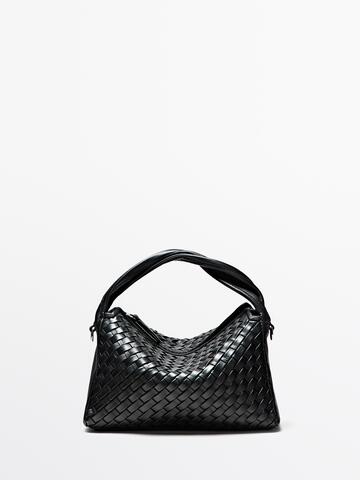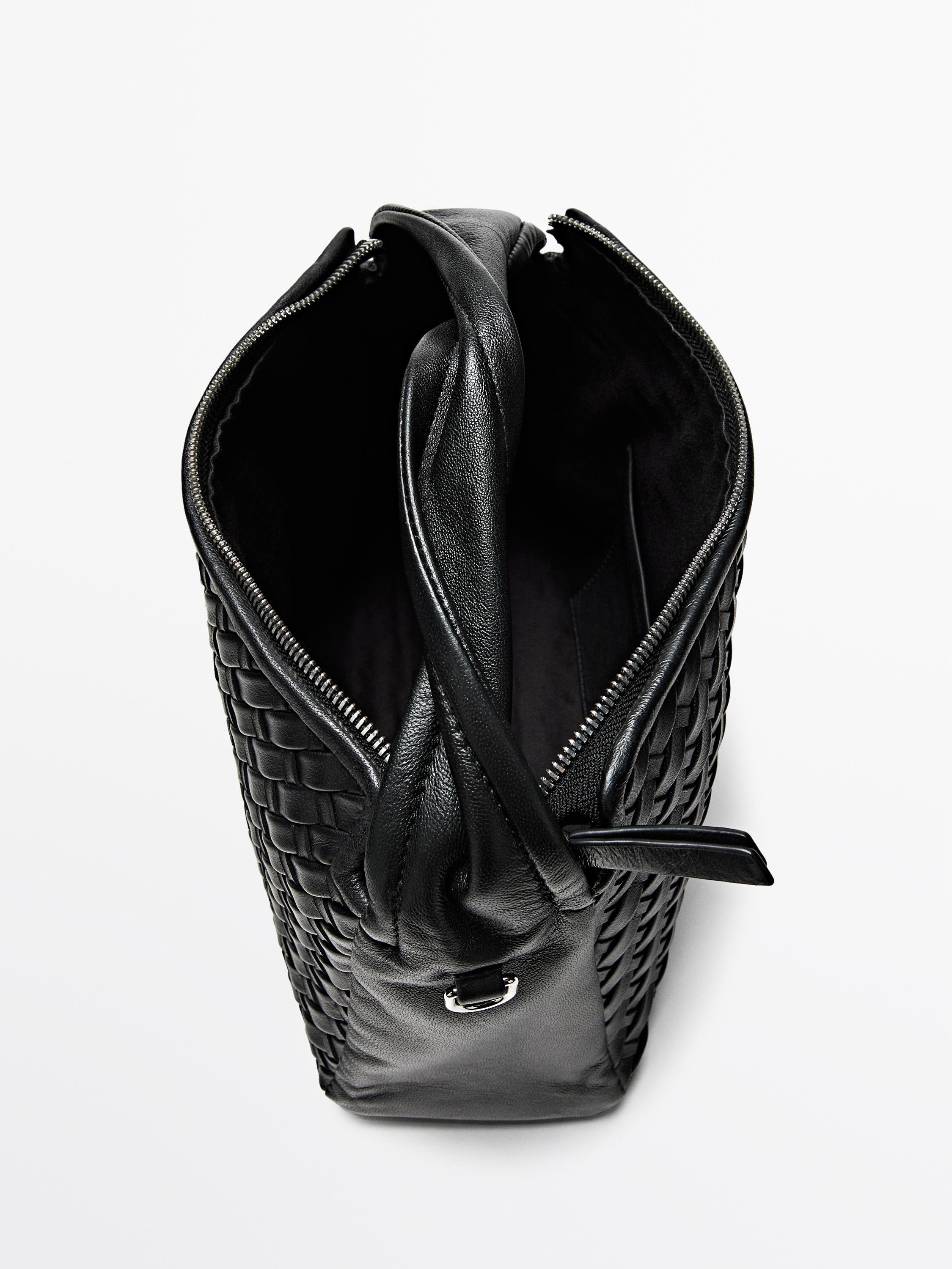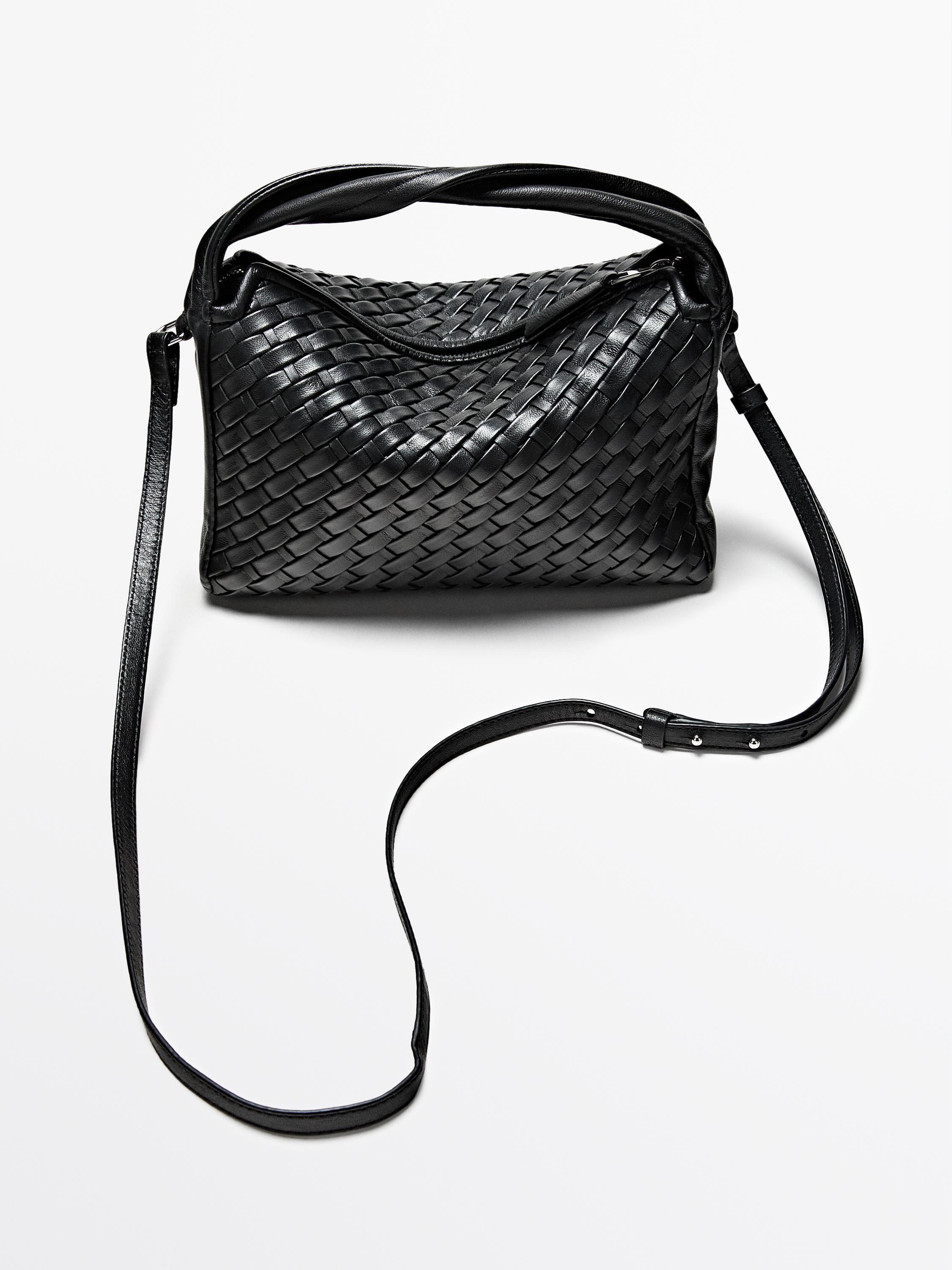Massimo Dutti Сумка среднего размера из плетеной кожи наппа, черный