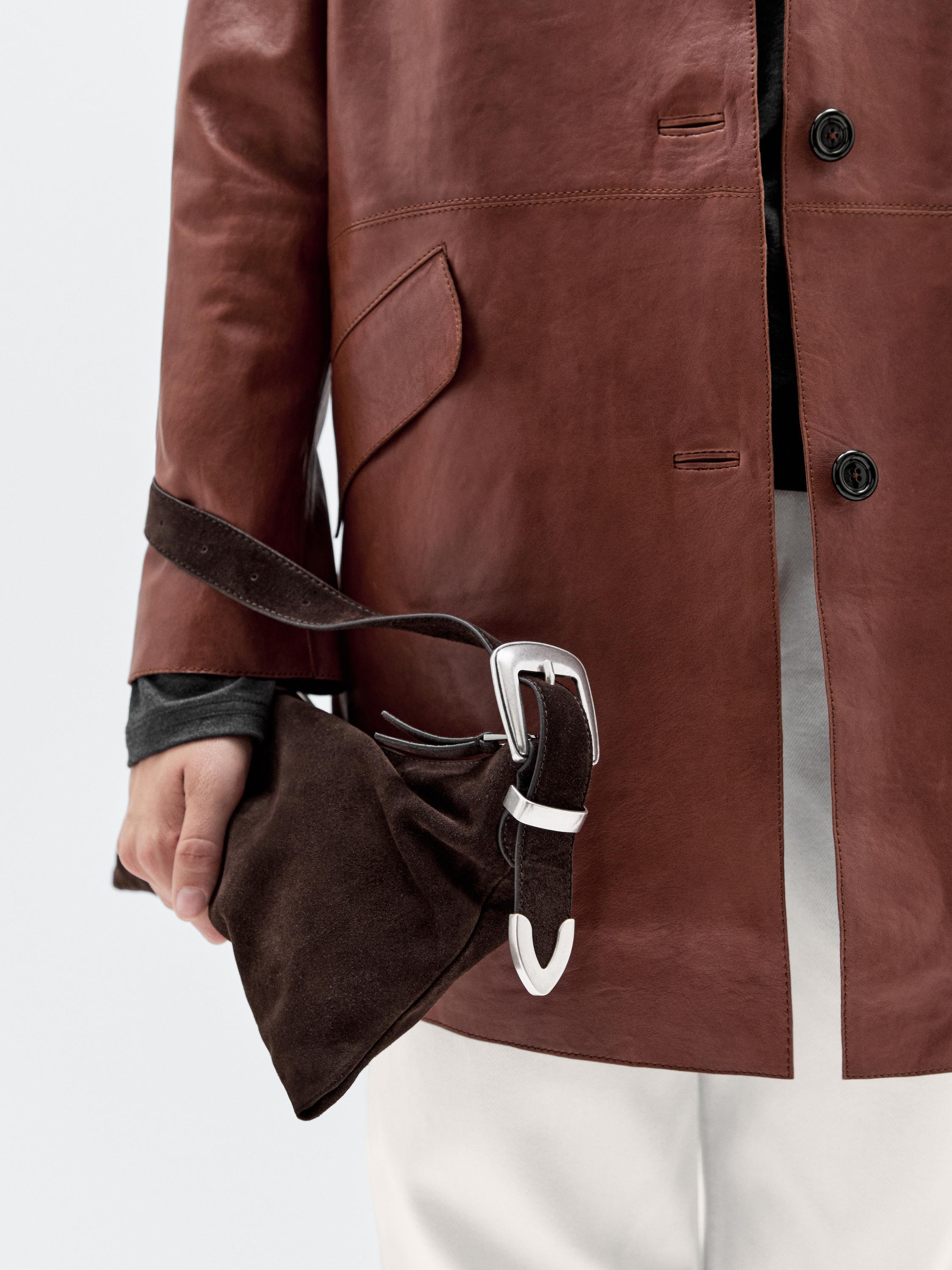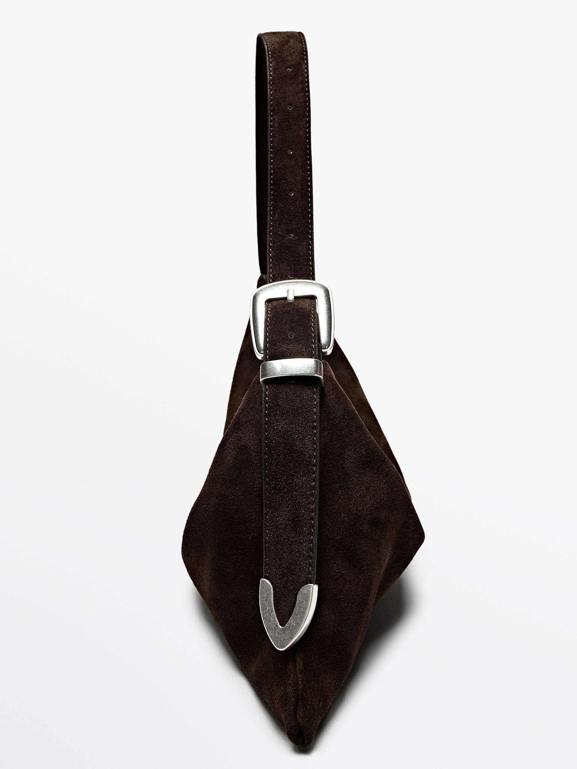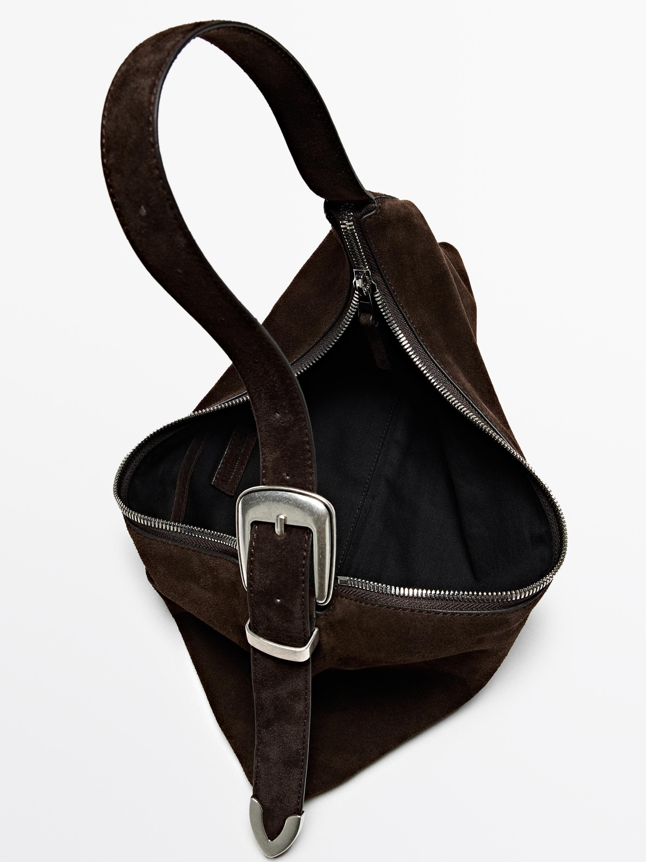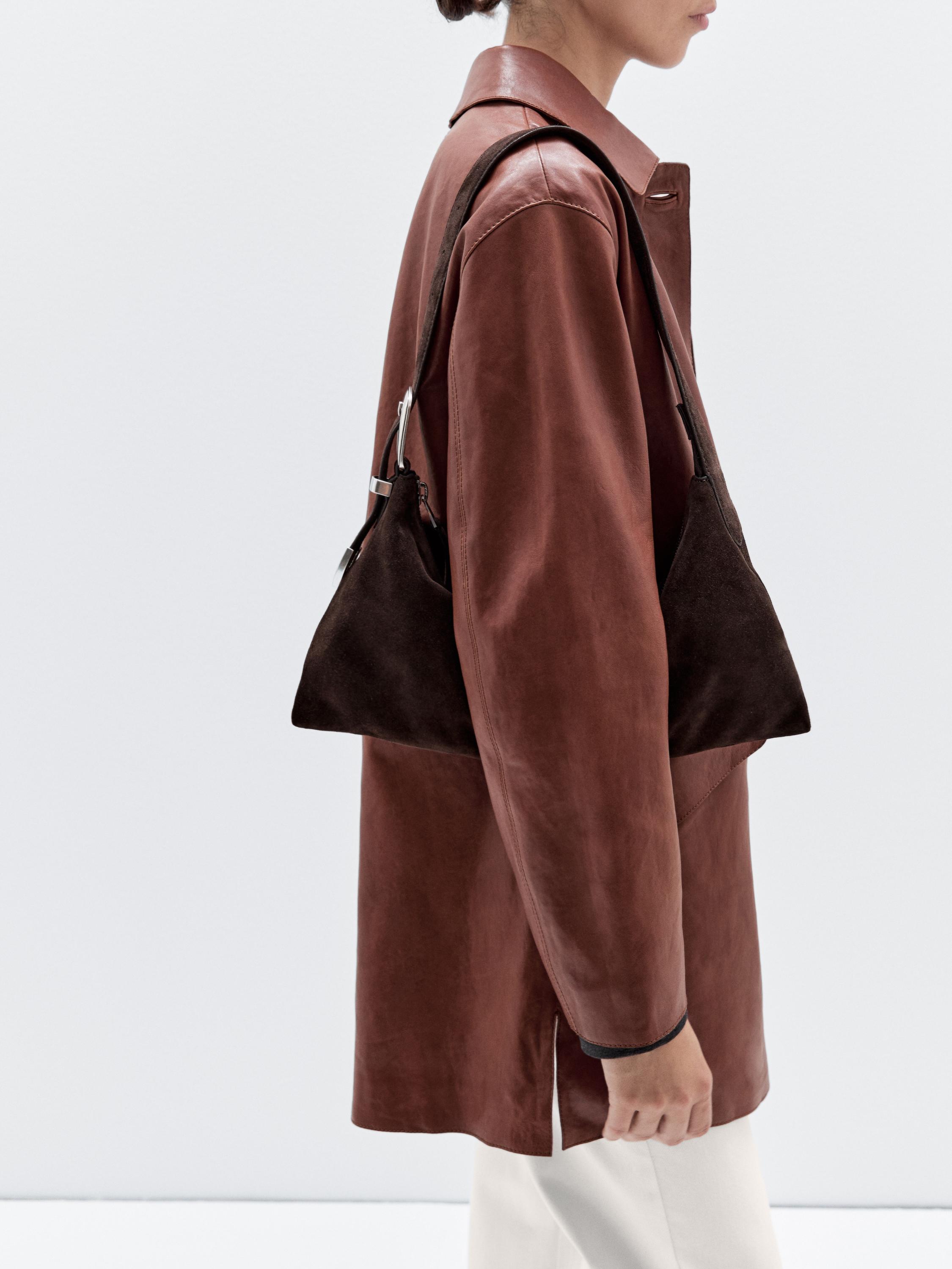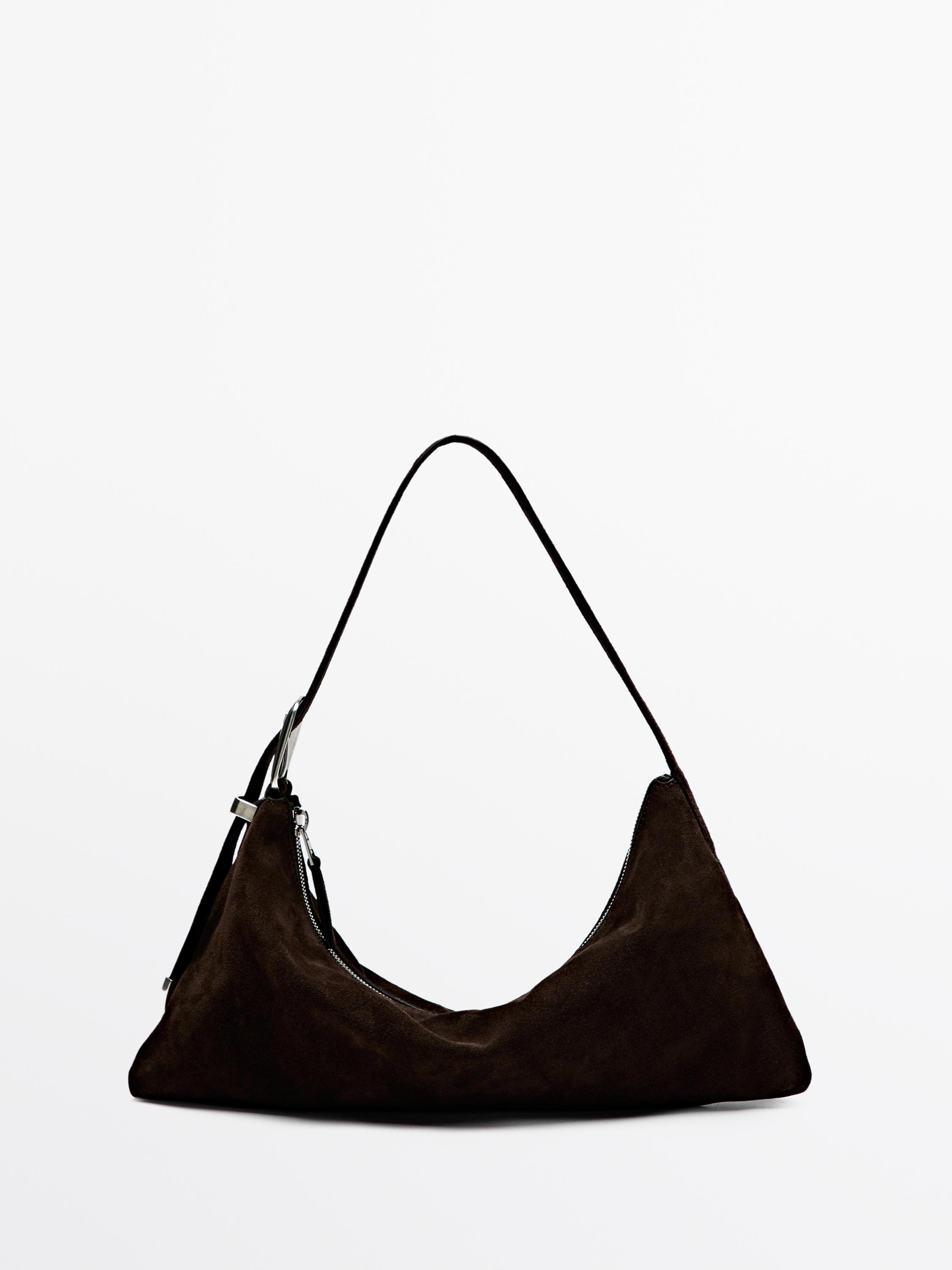 Massimo Dutti Сумка среднего размера из замши, коричневый