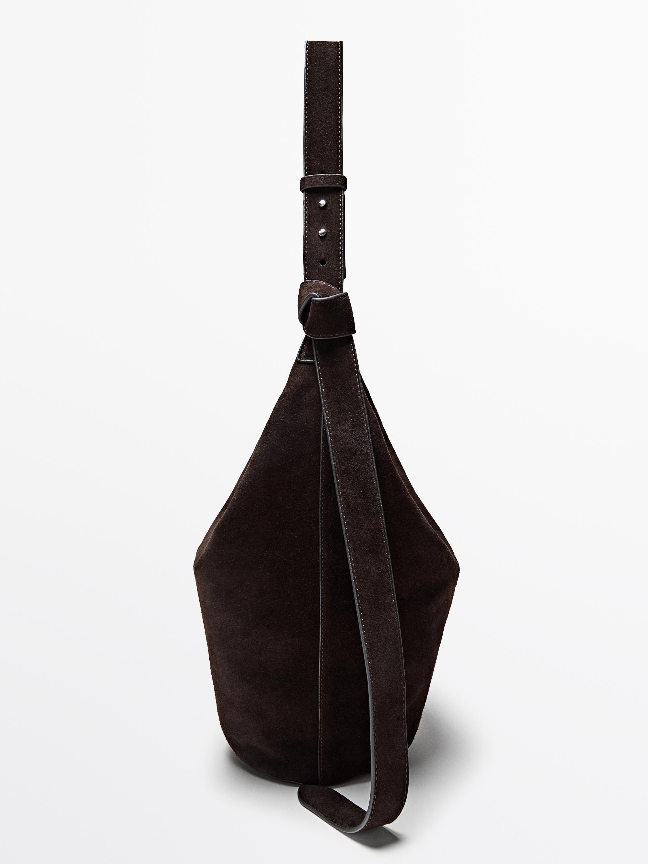 Massimo Dutti Сумка-тоут из замши, шоколадный