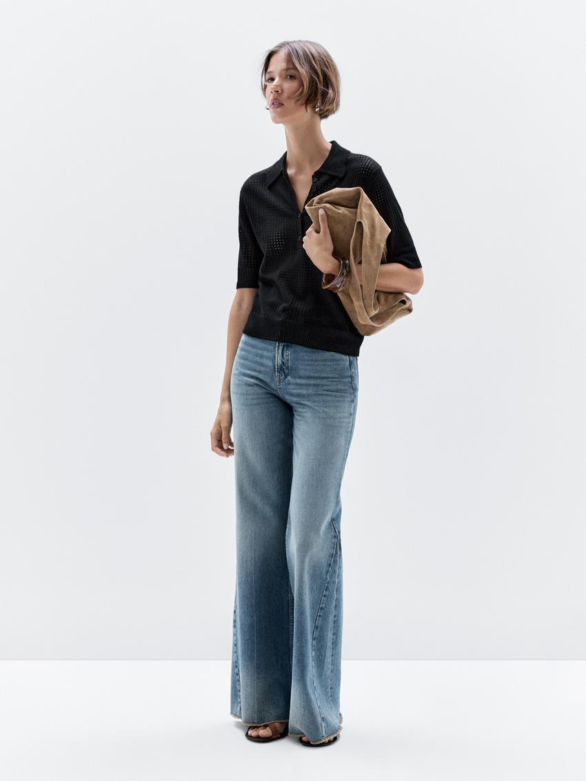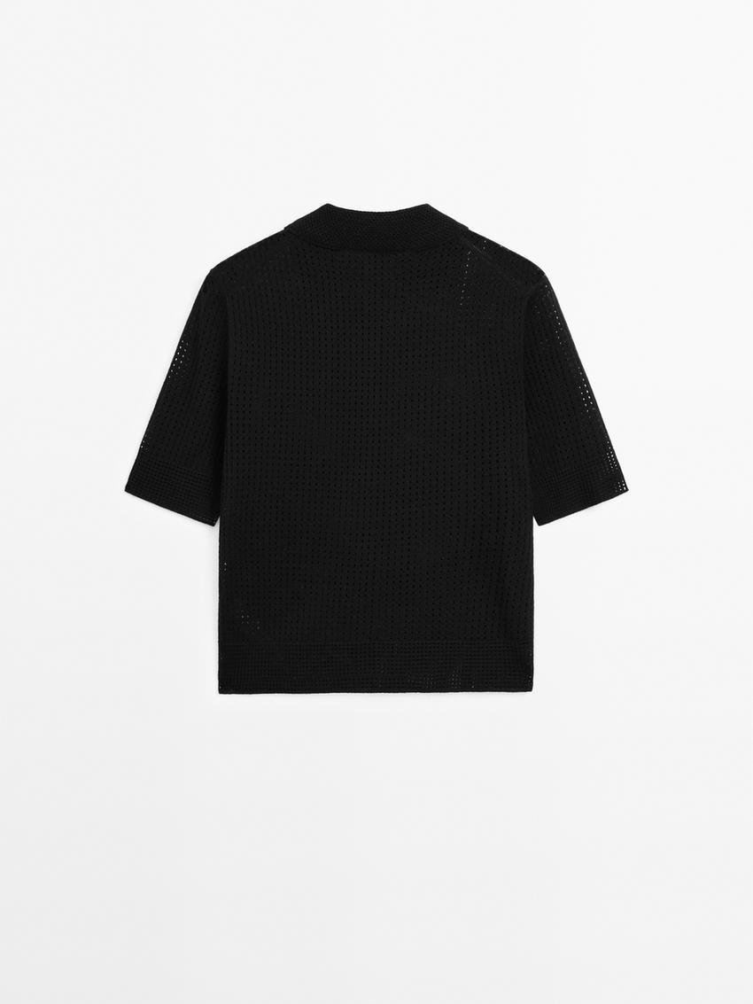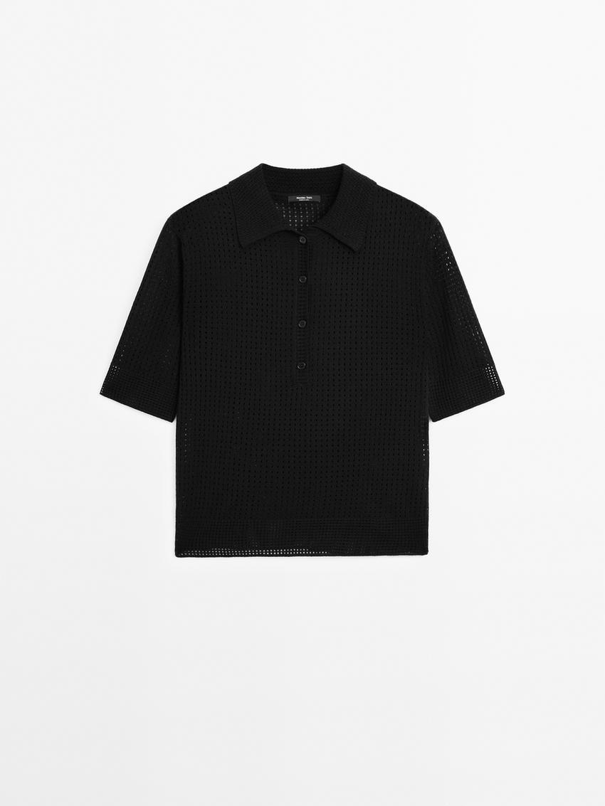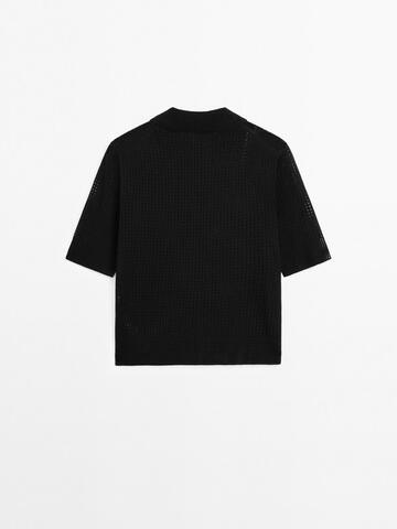 Massimo Dutti Свитер ажурной вязки с воротником поло, черный