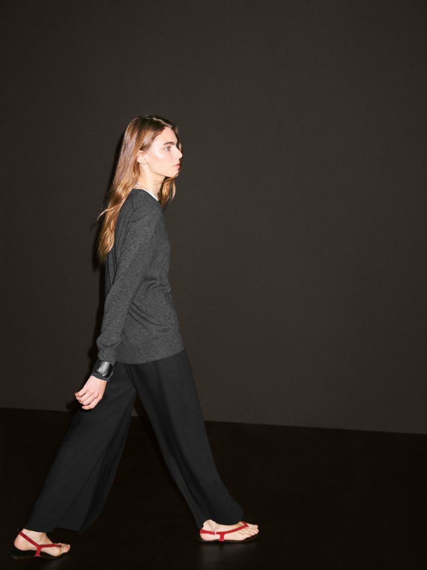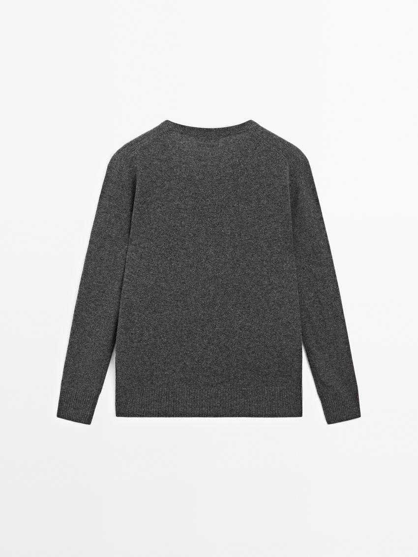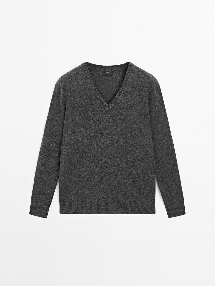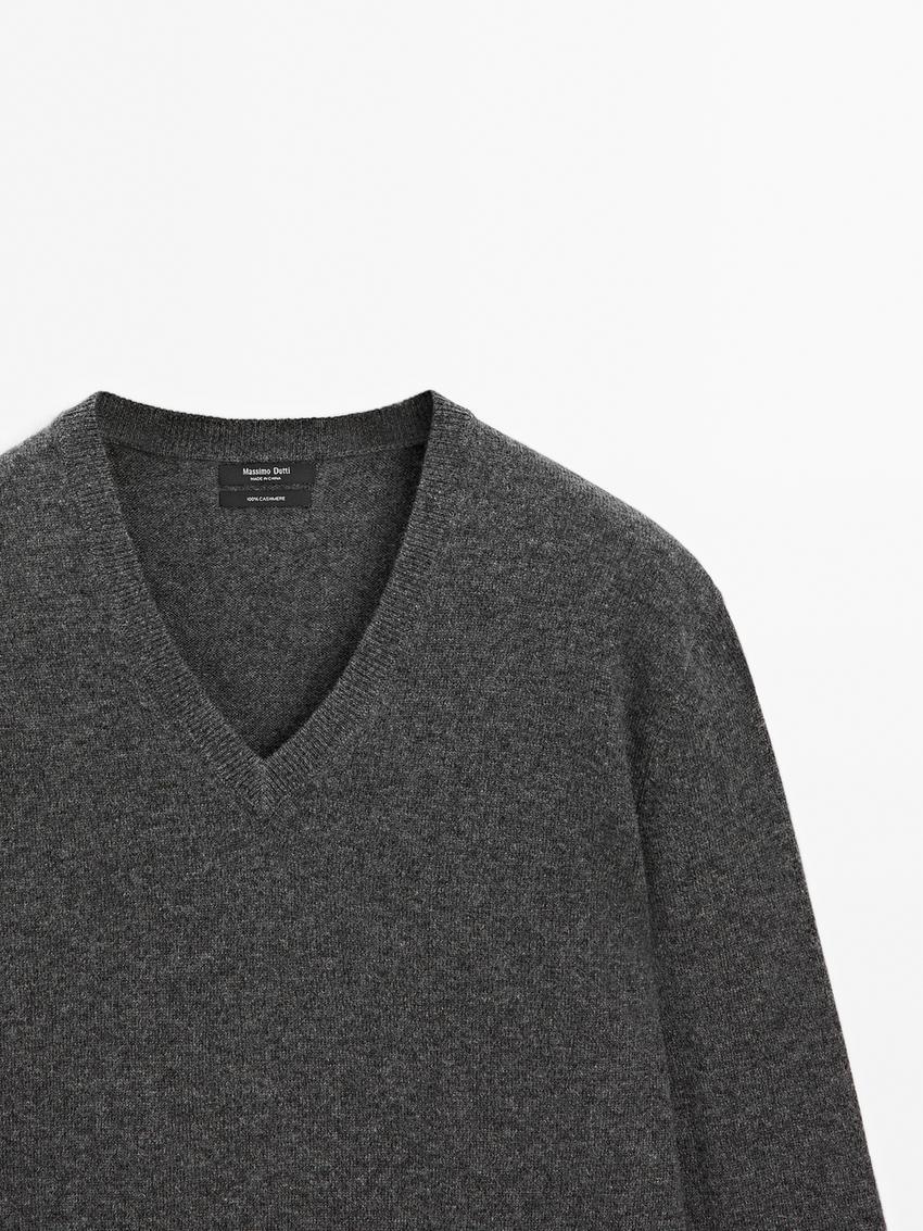 Massimo Dutti Свитер из 100% кашемира с V-образным вырезом, серый