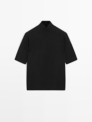 Massimo Dutti Свитер из 100% шерсти с короткими рукавами, черный