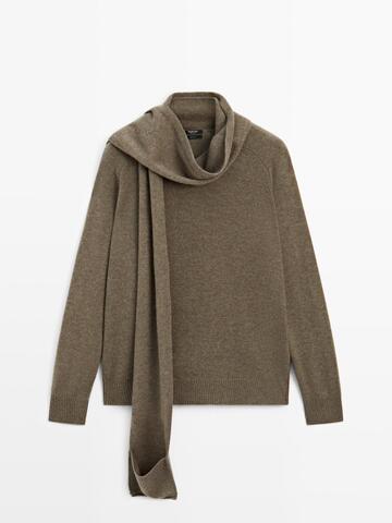 Massimo Dutti Свитер из 100% шерсти с шарфом и карманом, зеленый