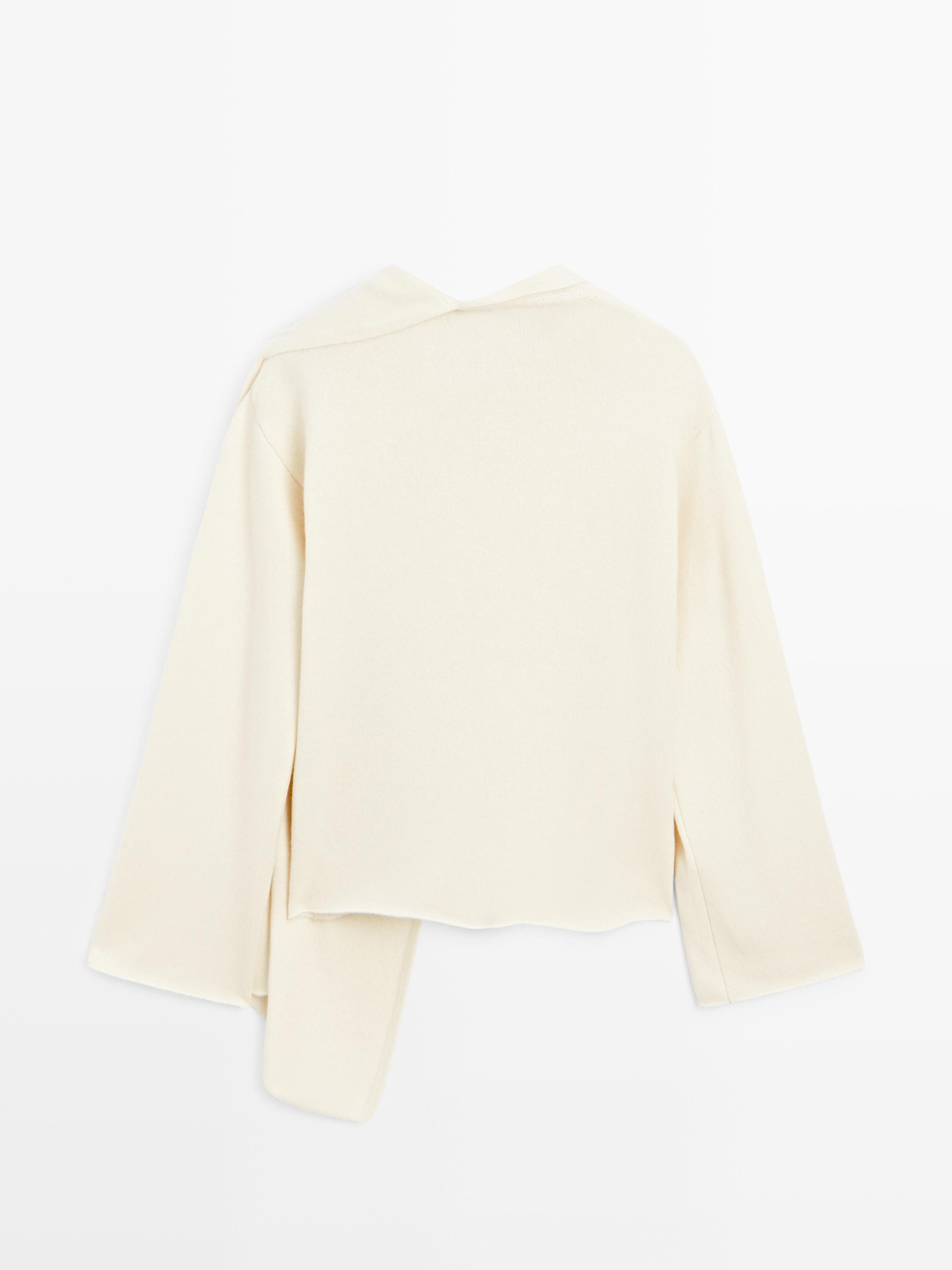 Massimo Dutti Свитер из 100% шерсти с шарфом, натуральный, кремовый