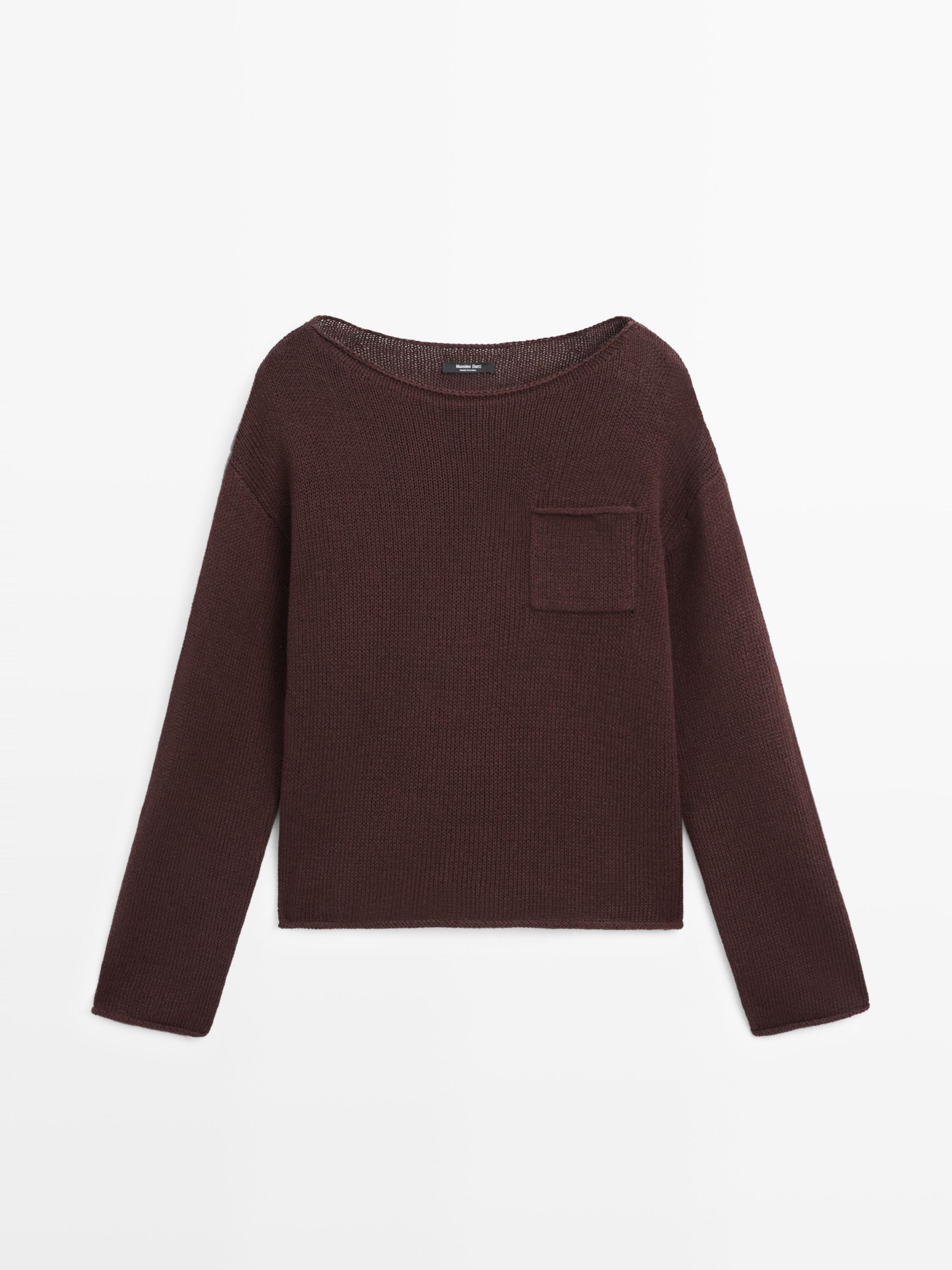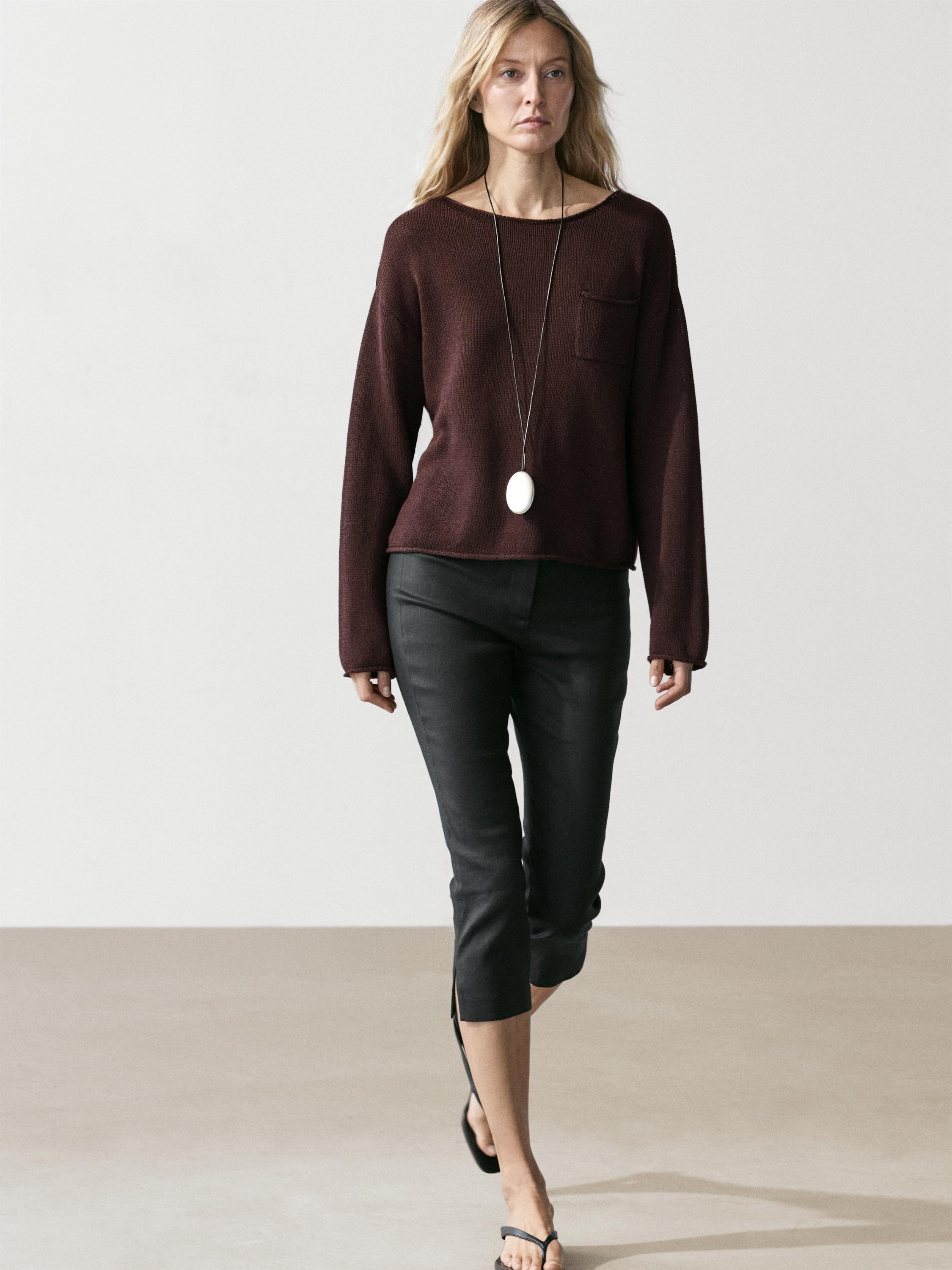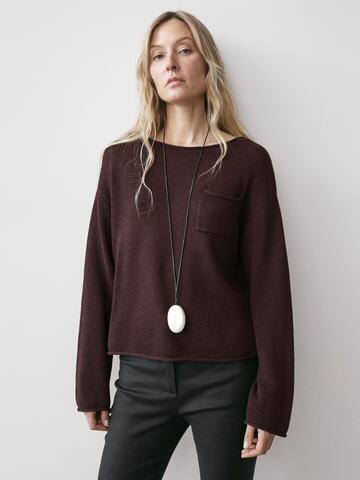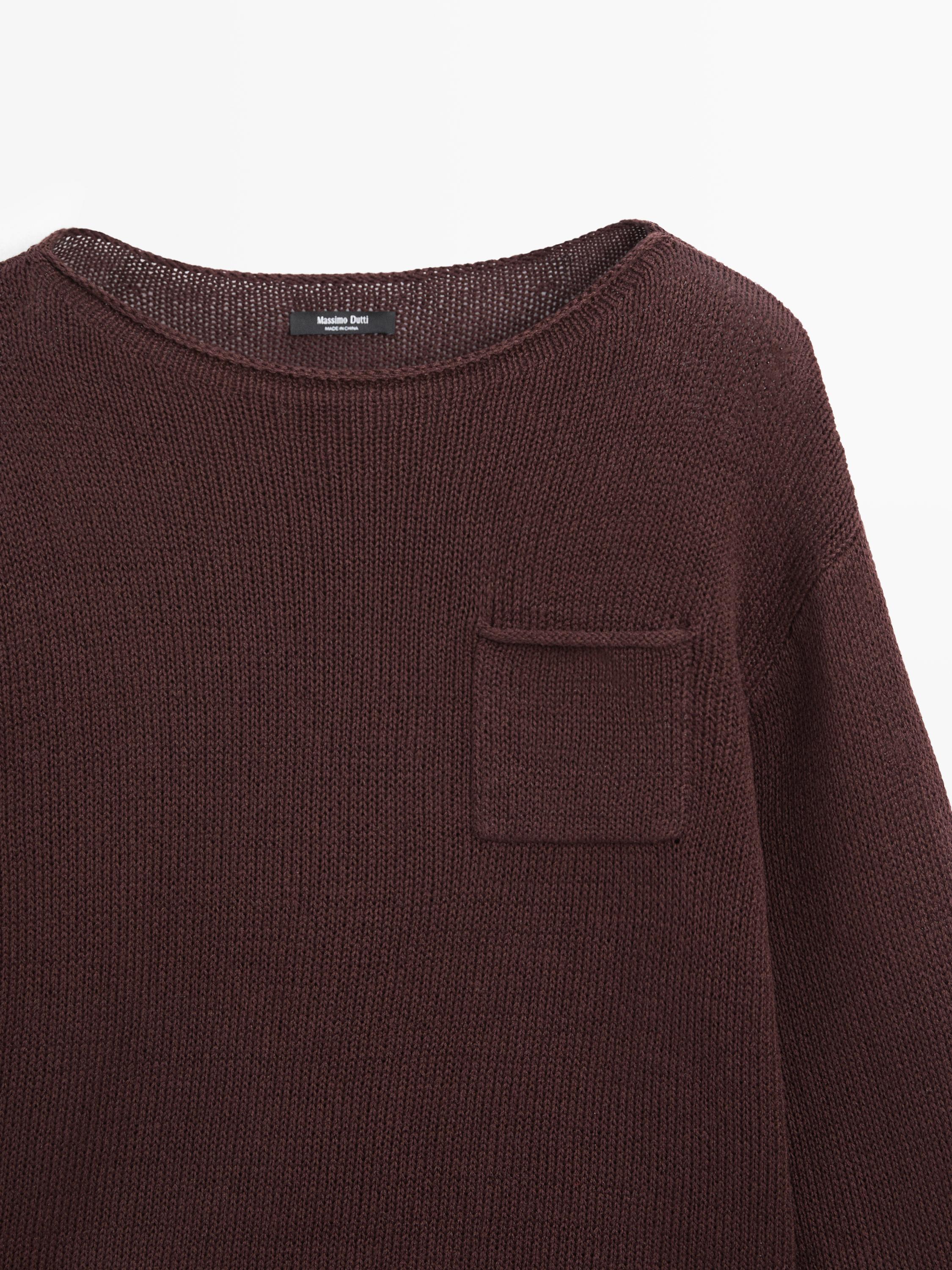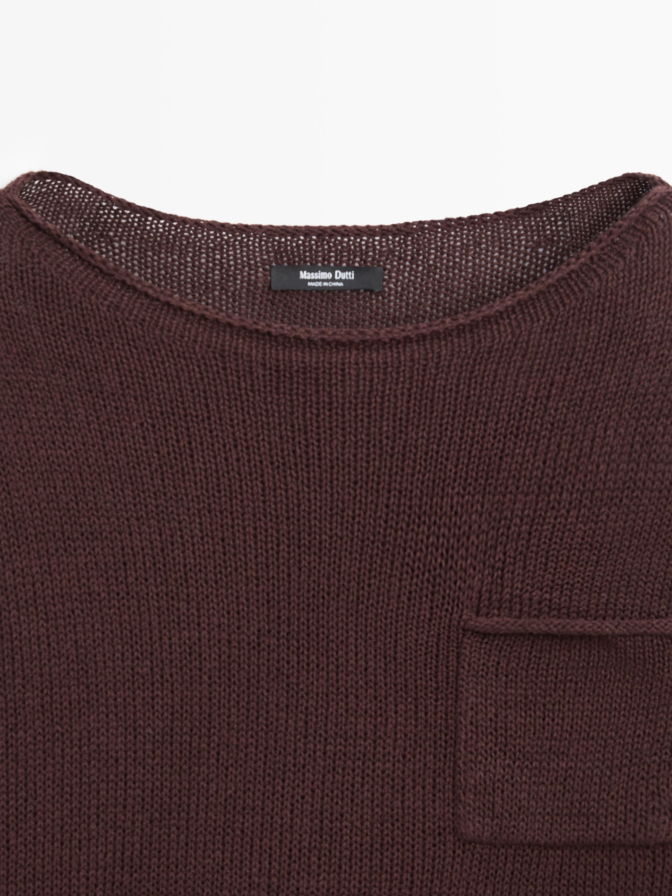 Massimo Dutti Свитер из хлопкового и льняного трикотажа с карманом, коричневый