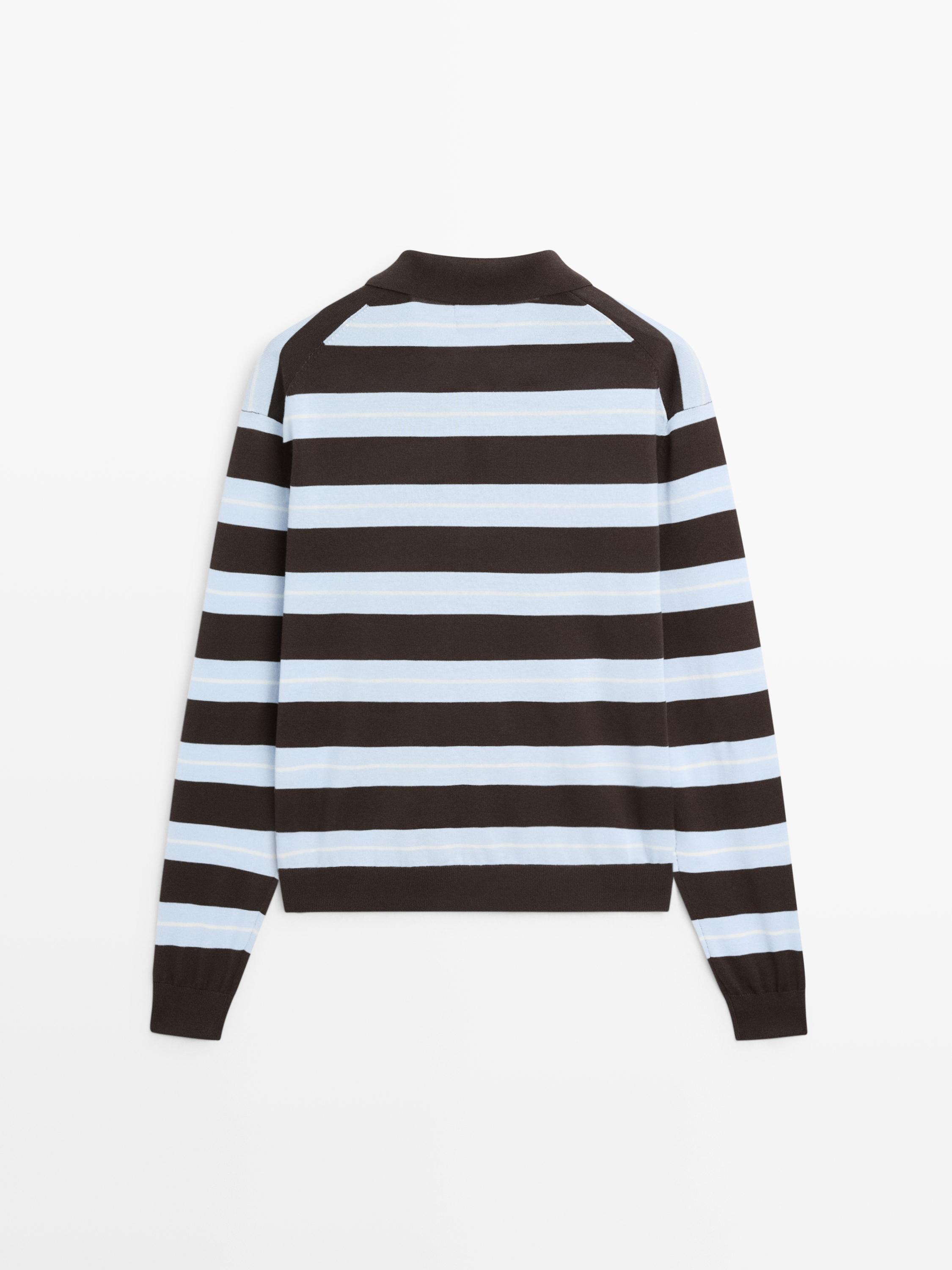 Massimo Dutti Свитер из хлопкового трикотажа в полоску, коричневый