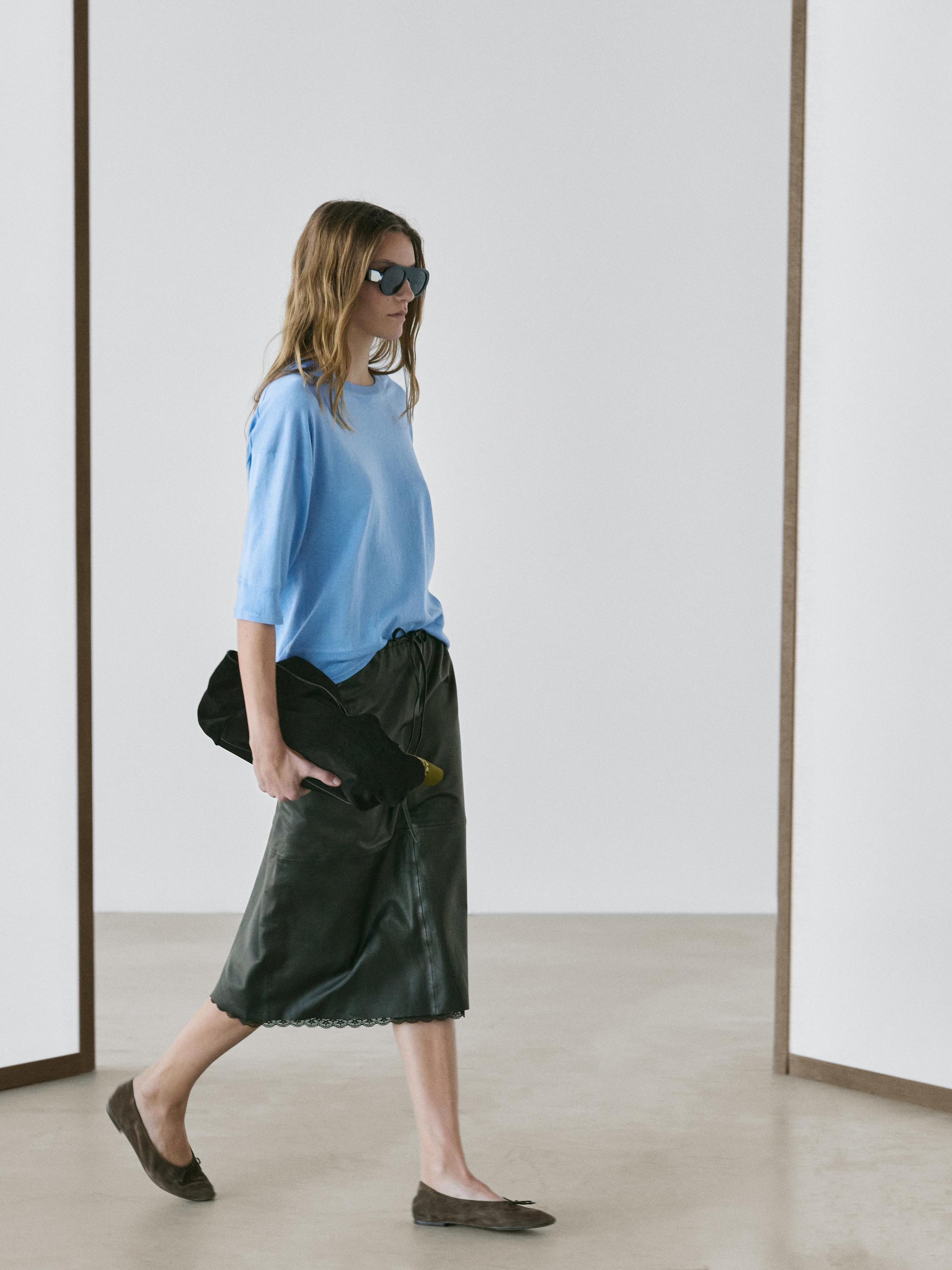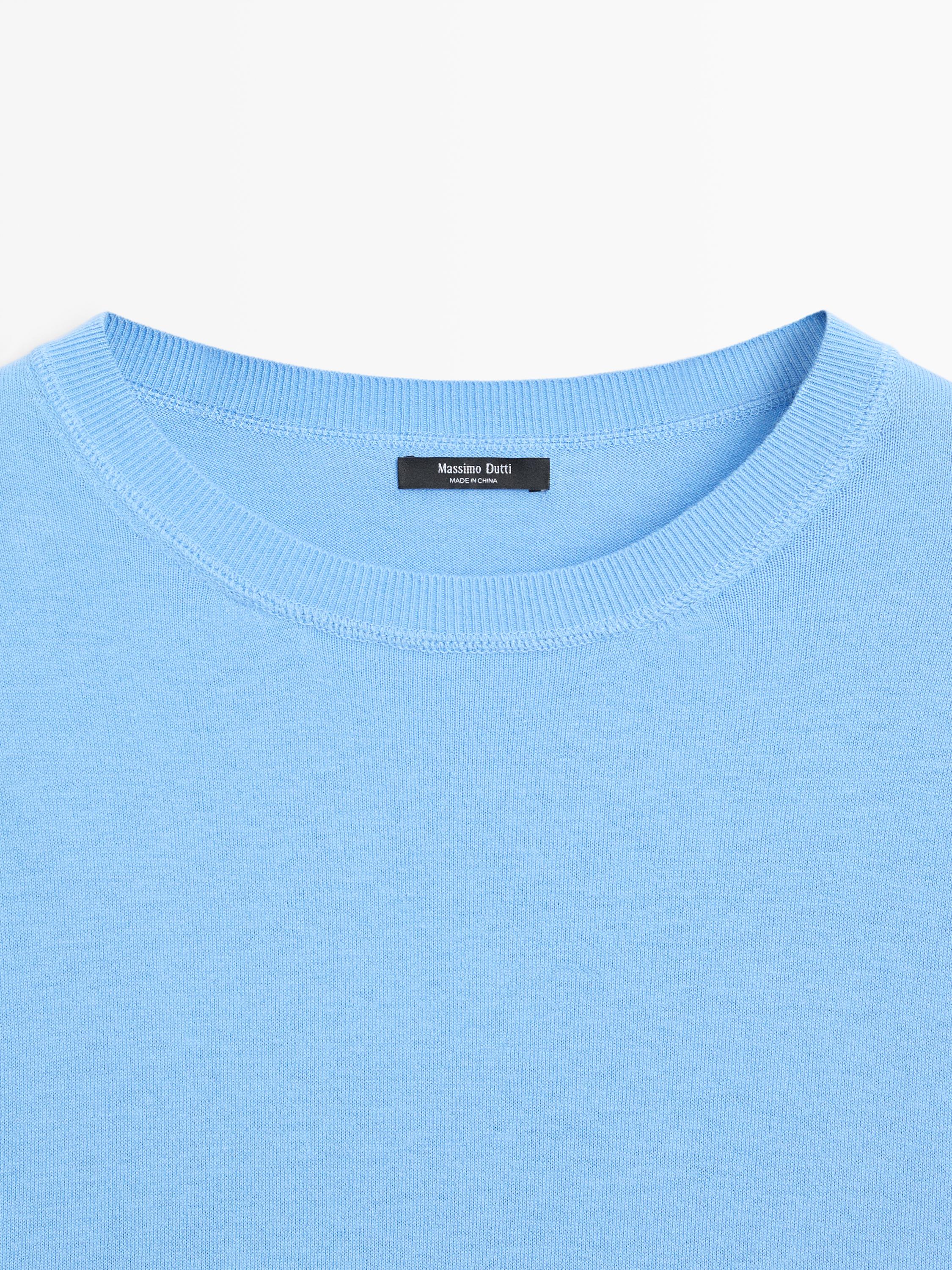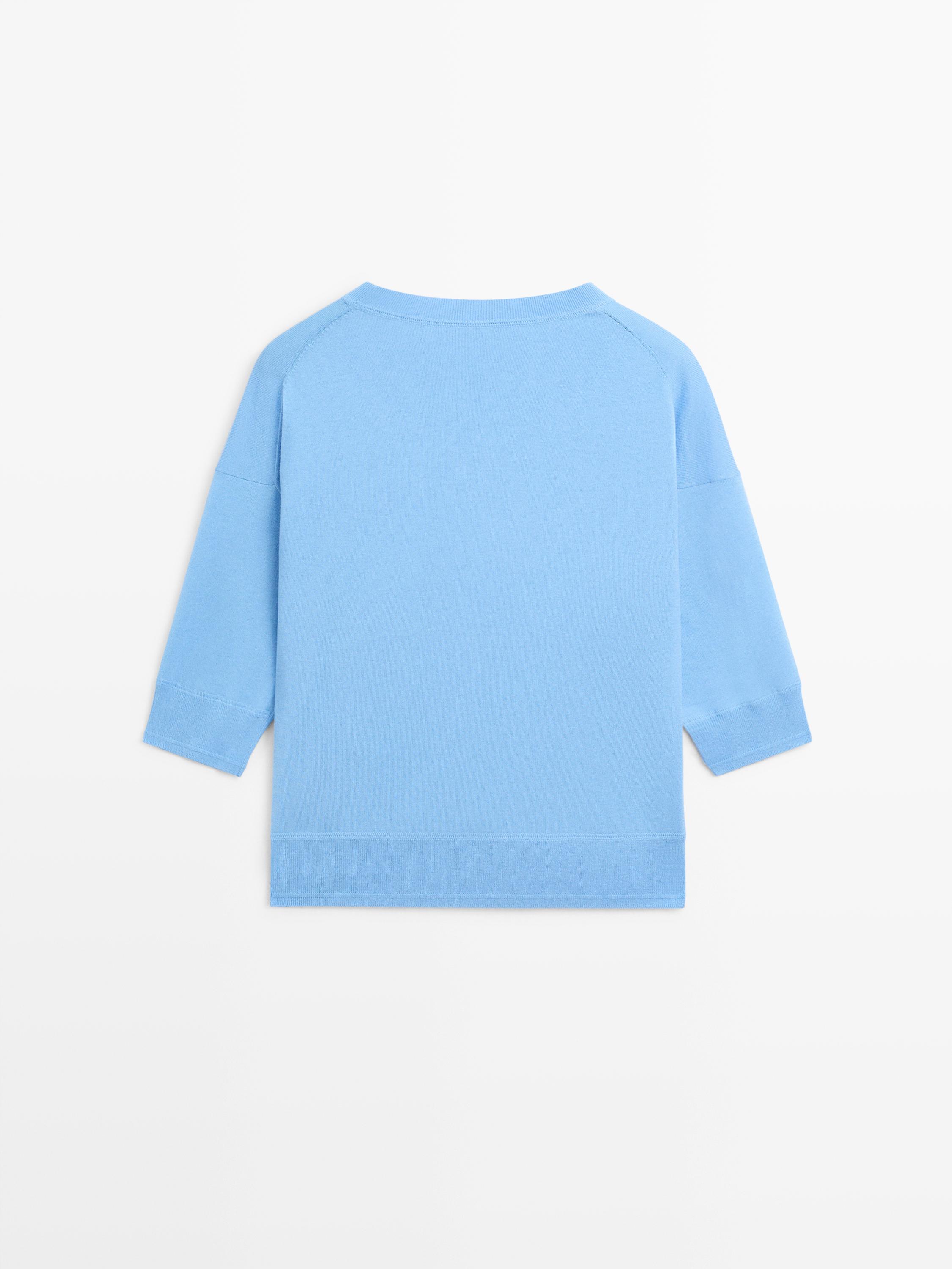 Massimo Dutti Свитер из смешанного хлопка с короткими рукавами, синий