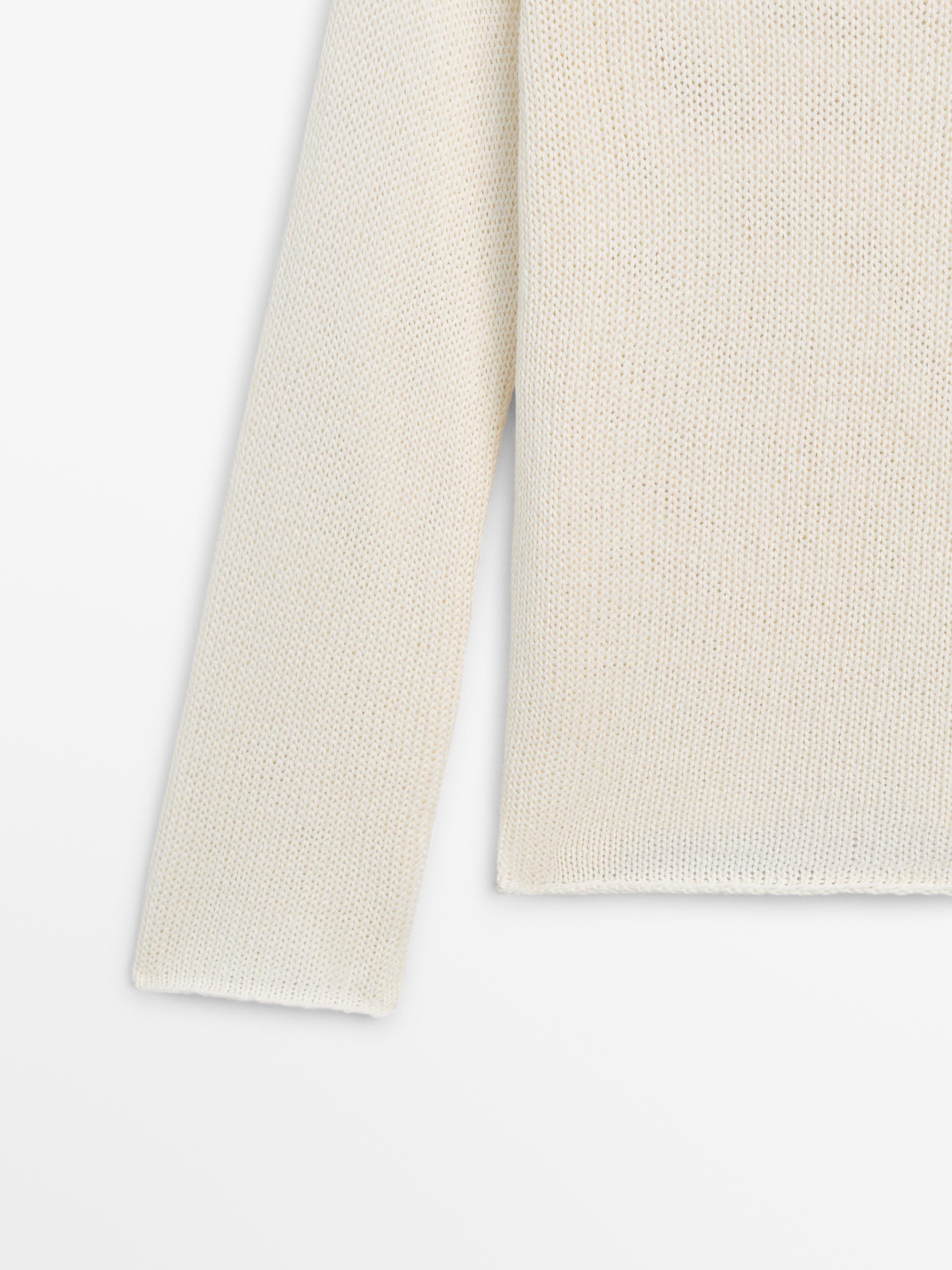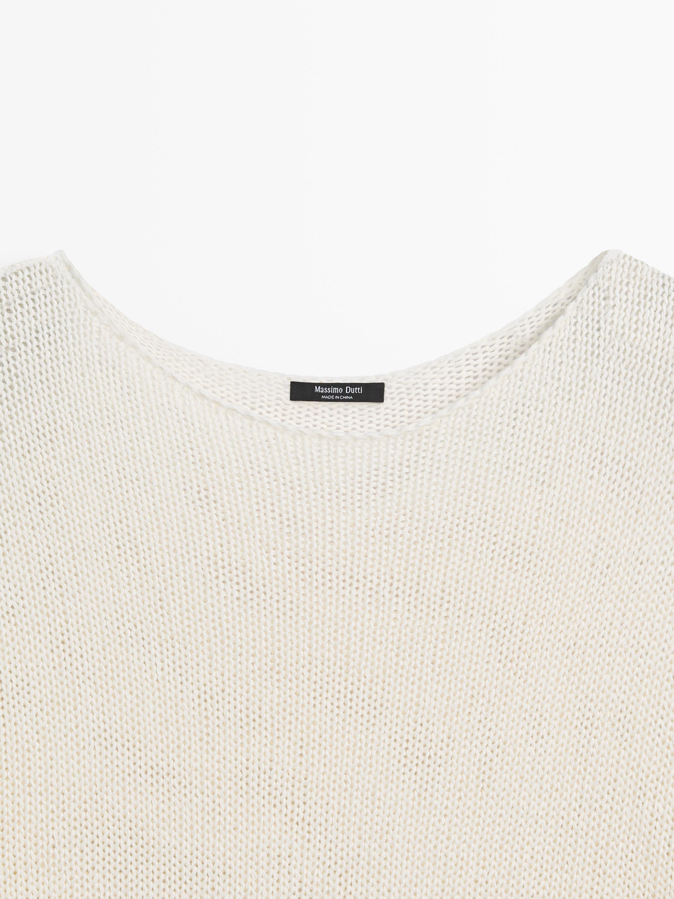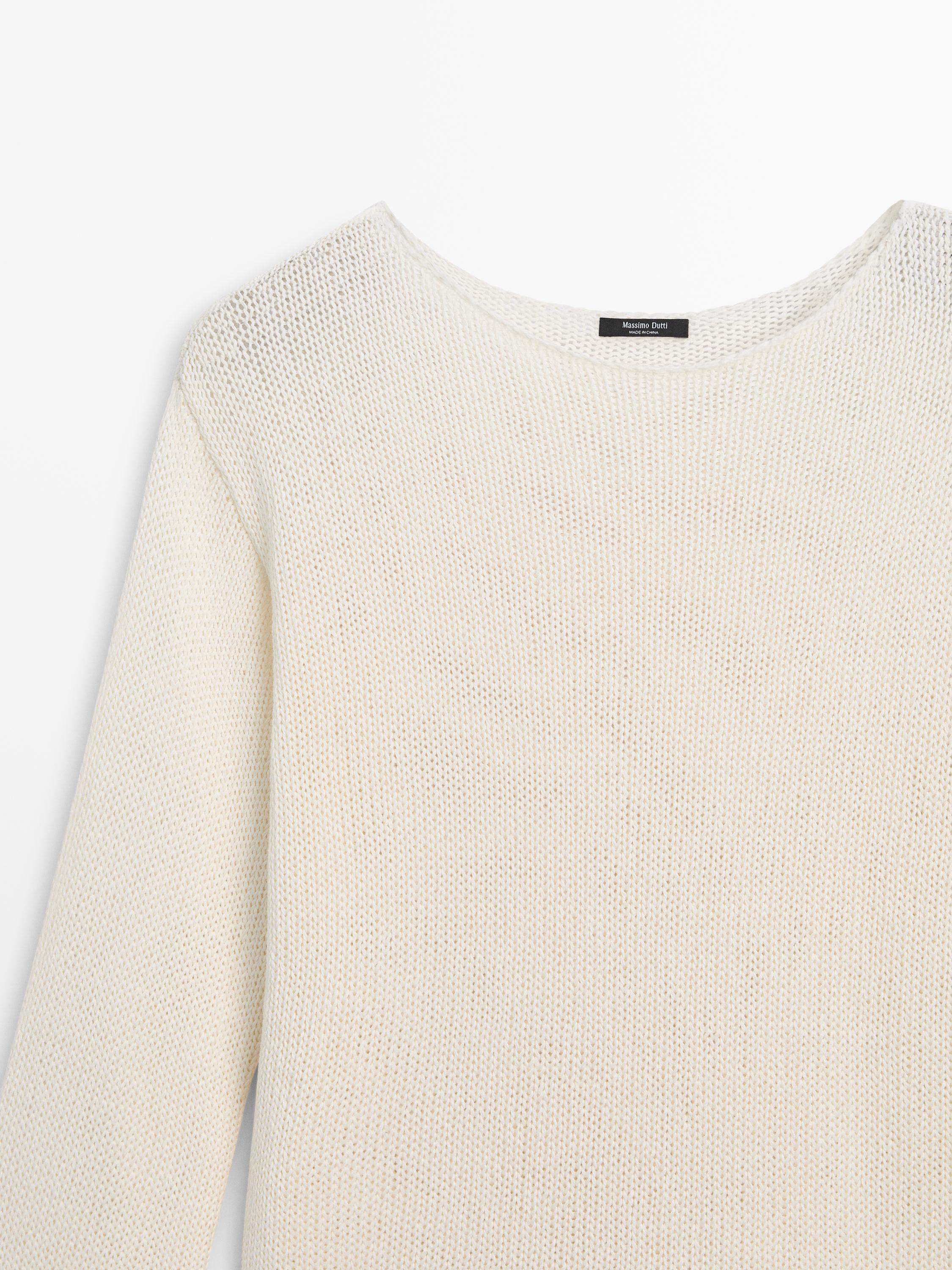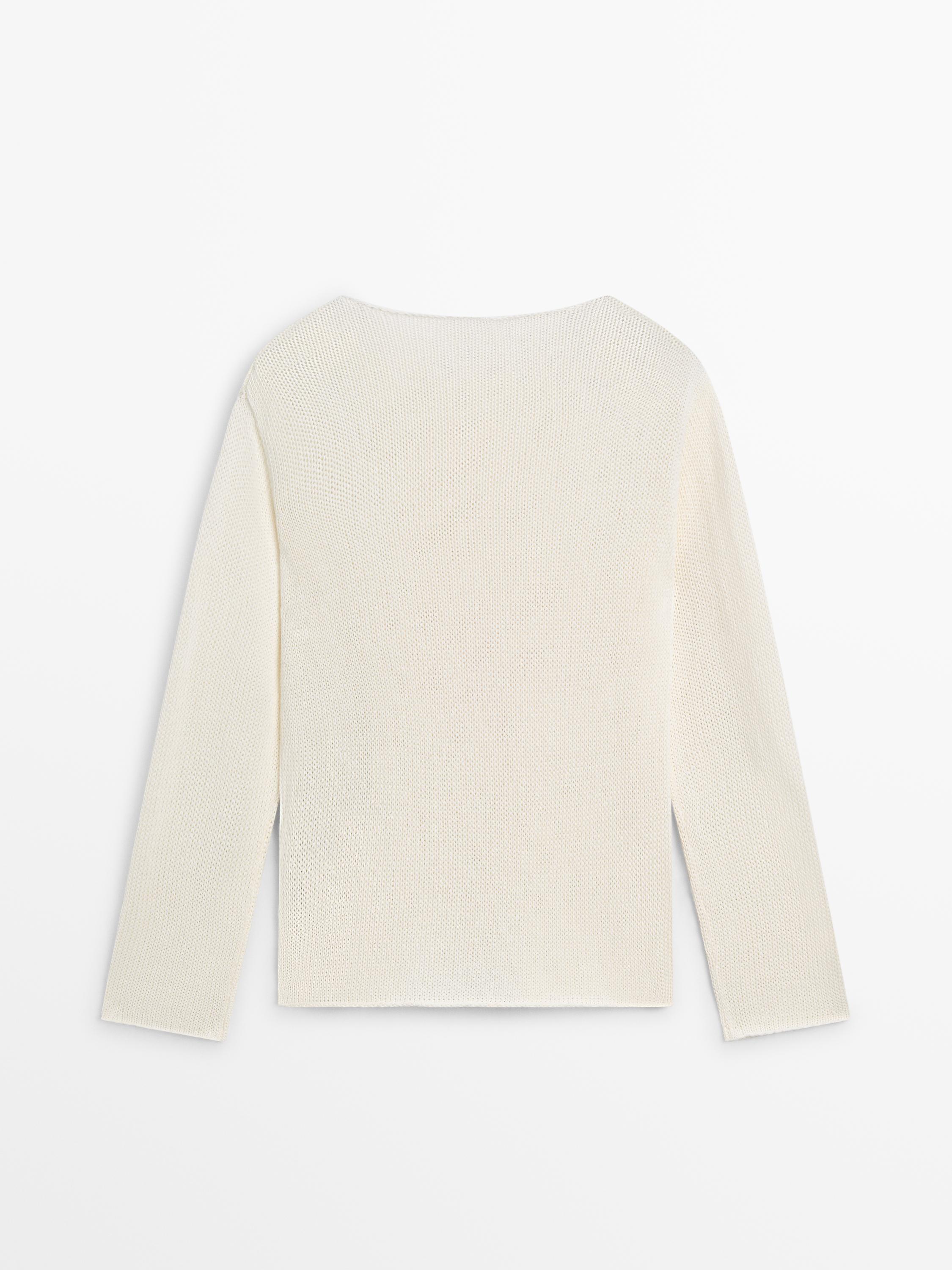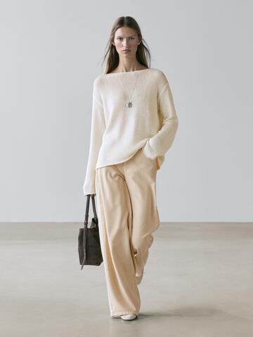 Massimo Dutti Свитер из смесового хлопка с ажурным узором, натуральный/кремовый