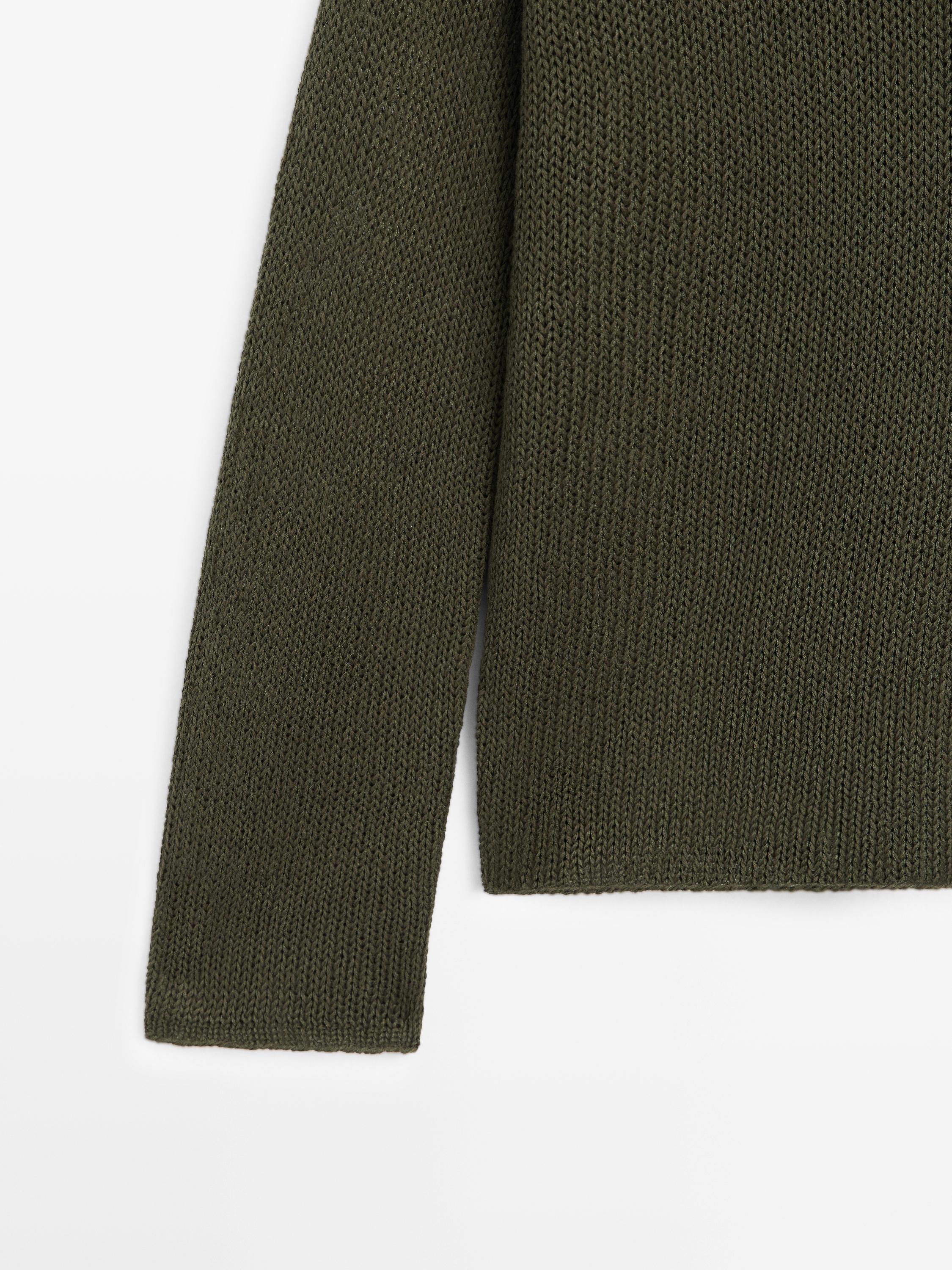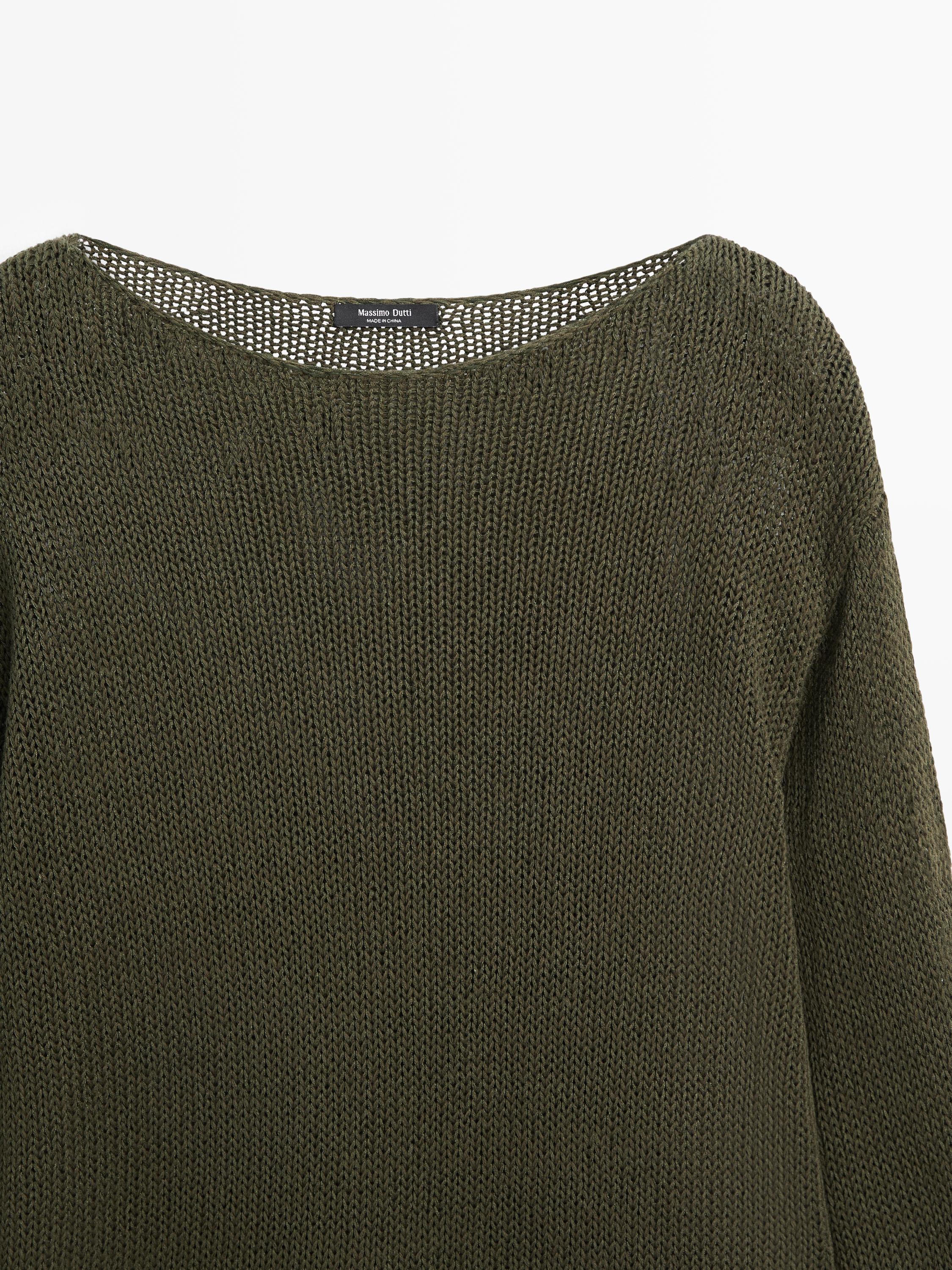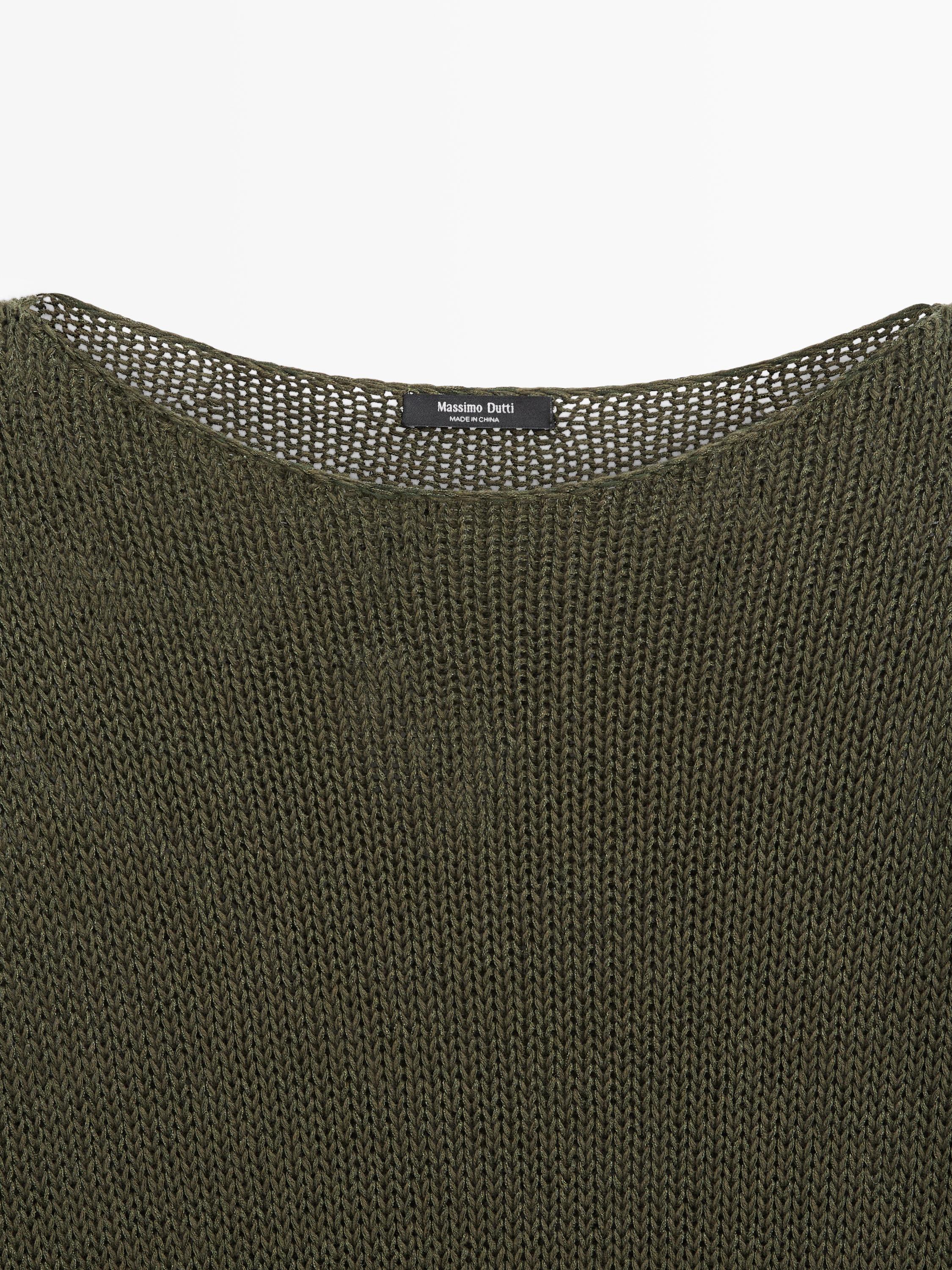 Massimo Dutti Свитер из смесового хлопка с ажурным узором, темно-зеленый