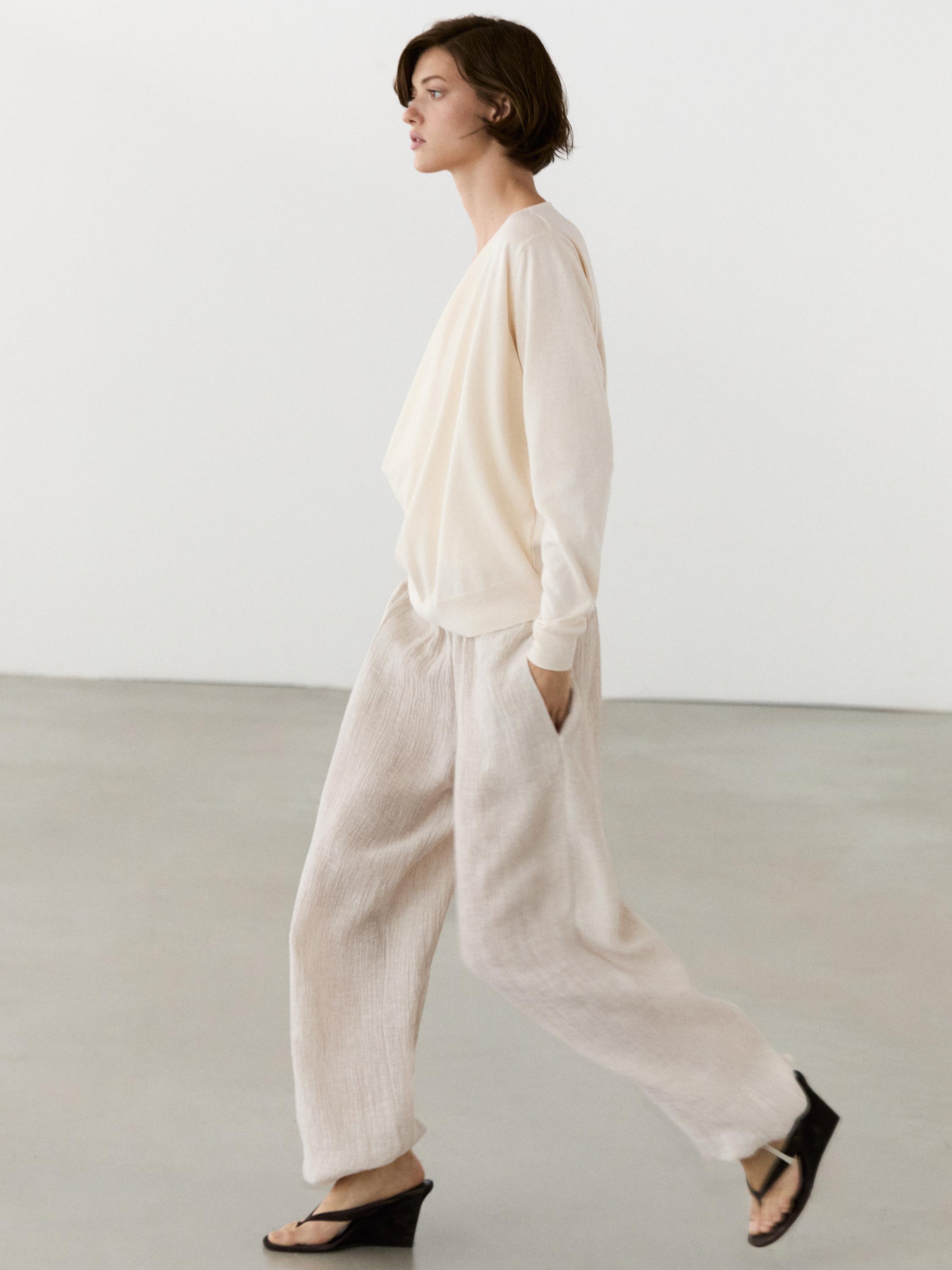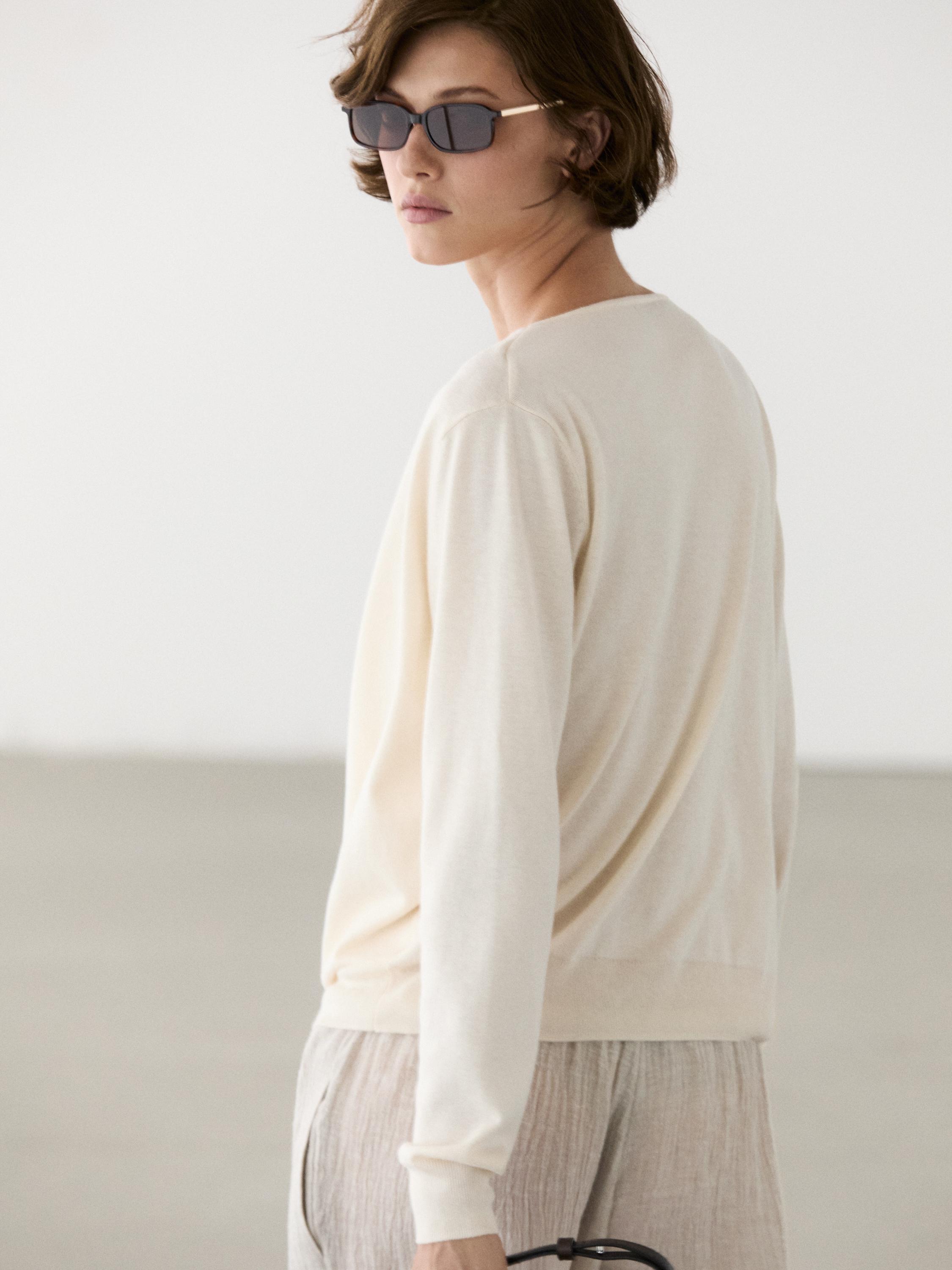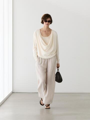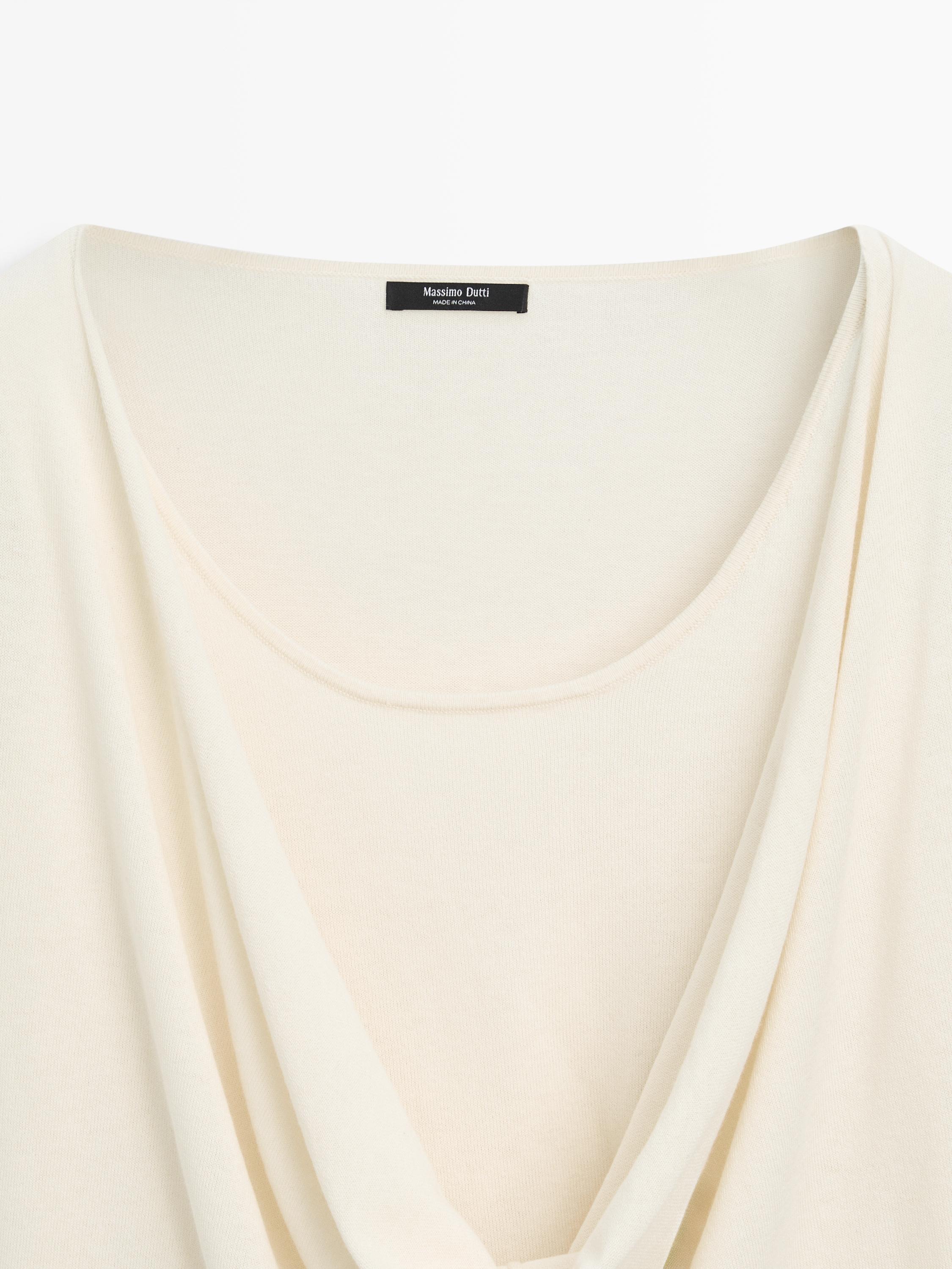 Свитер из смесового хлопка. Вырез со сборкой. Длинные рукава. Детали в рубчик .
