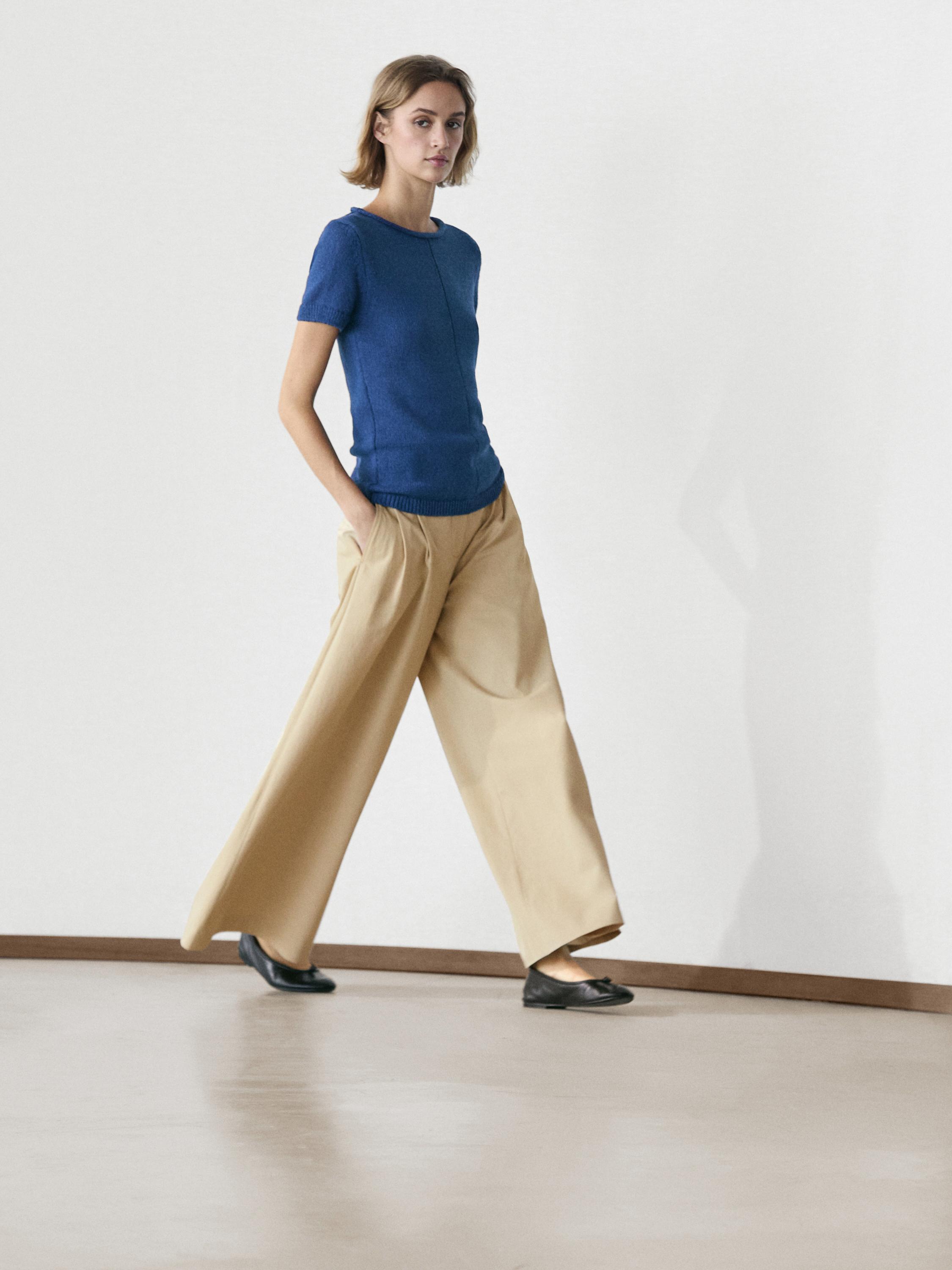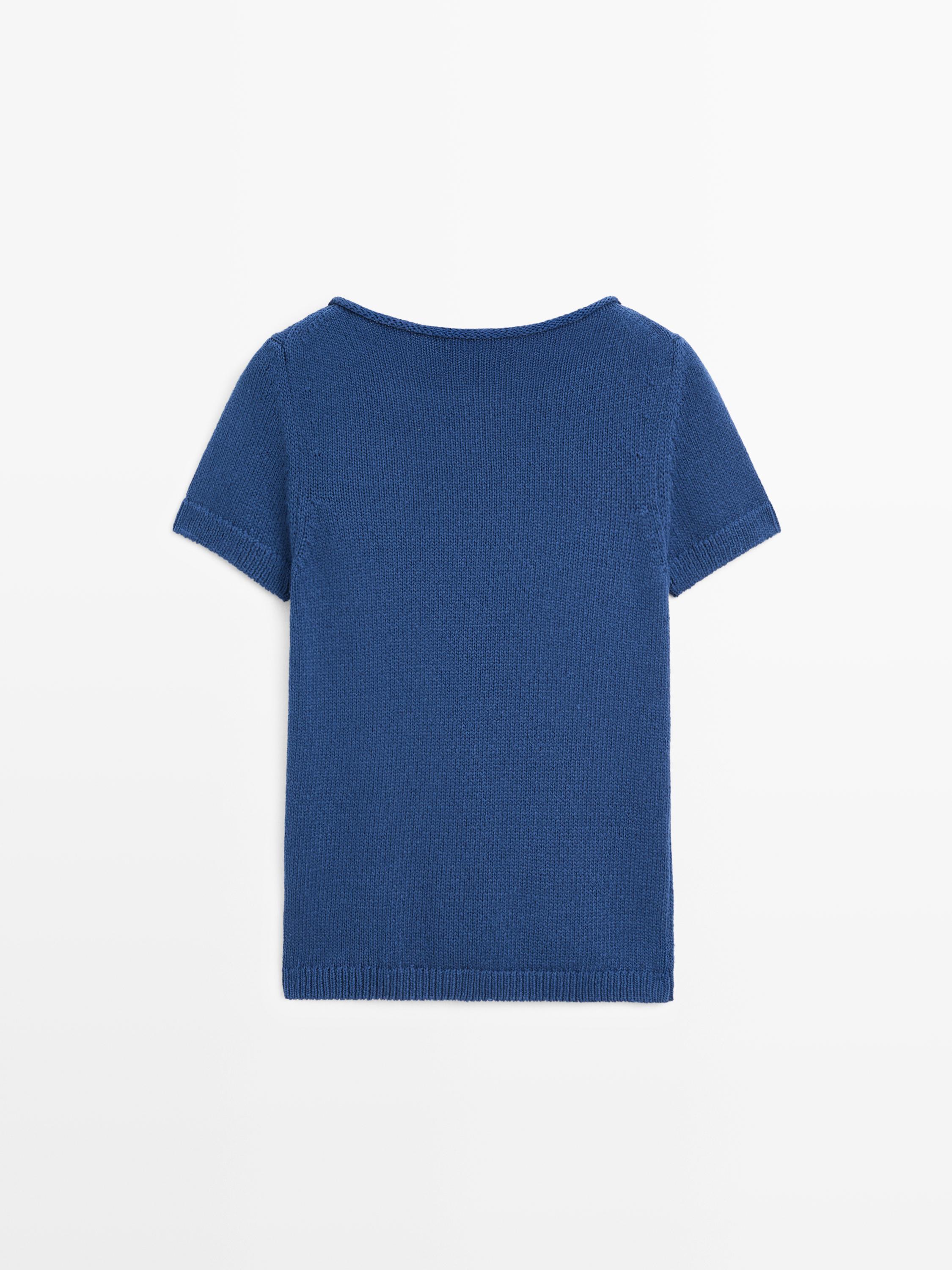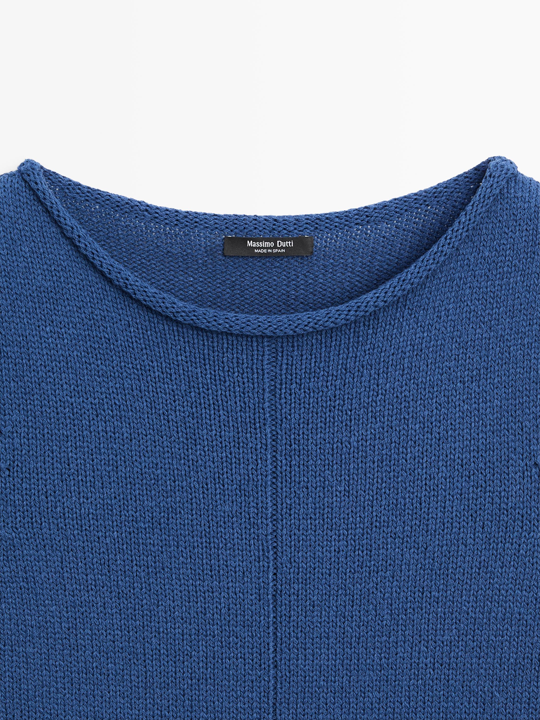 Massimo Dutti Свитер из смесового хлопка с короткими рукавами, светло-синий