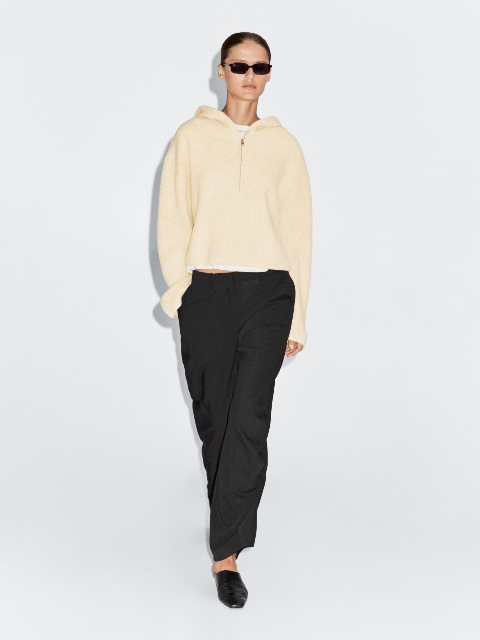 Massimo Dutti Свитер из смесовой шерсти с капюшоном, лаймовый