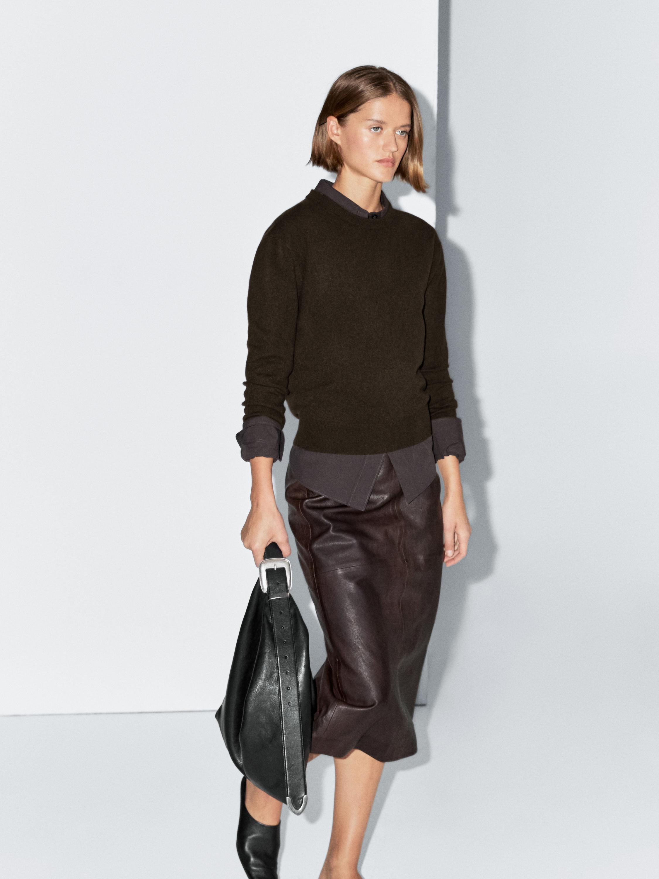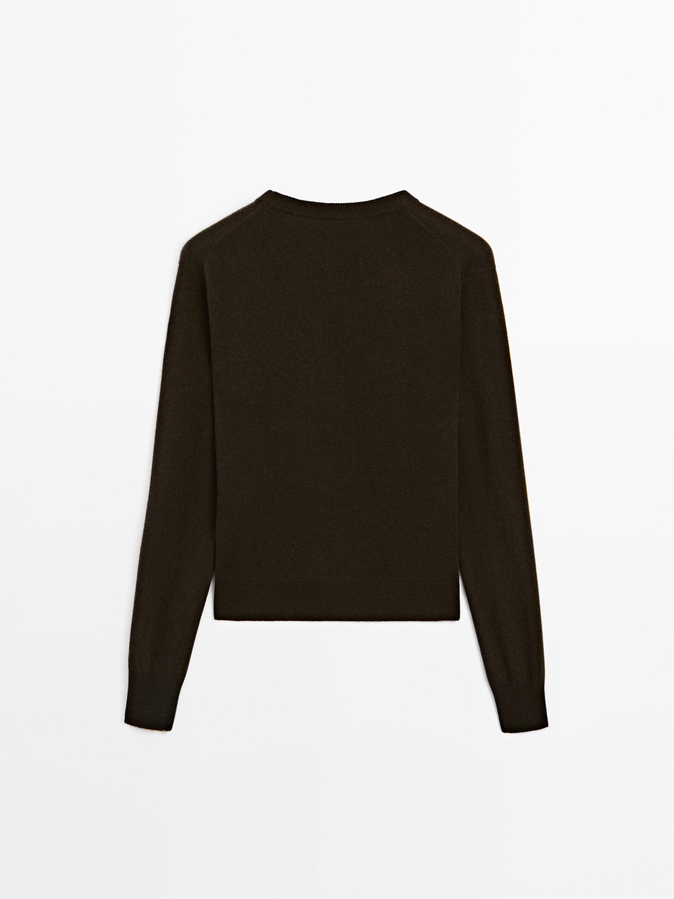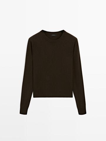 Massimo Dutti Свитер из смесовой шерсти с круглым вырезом, коричневый