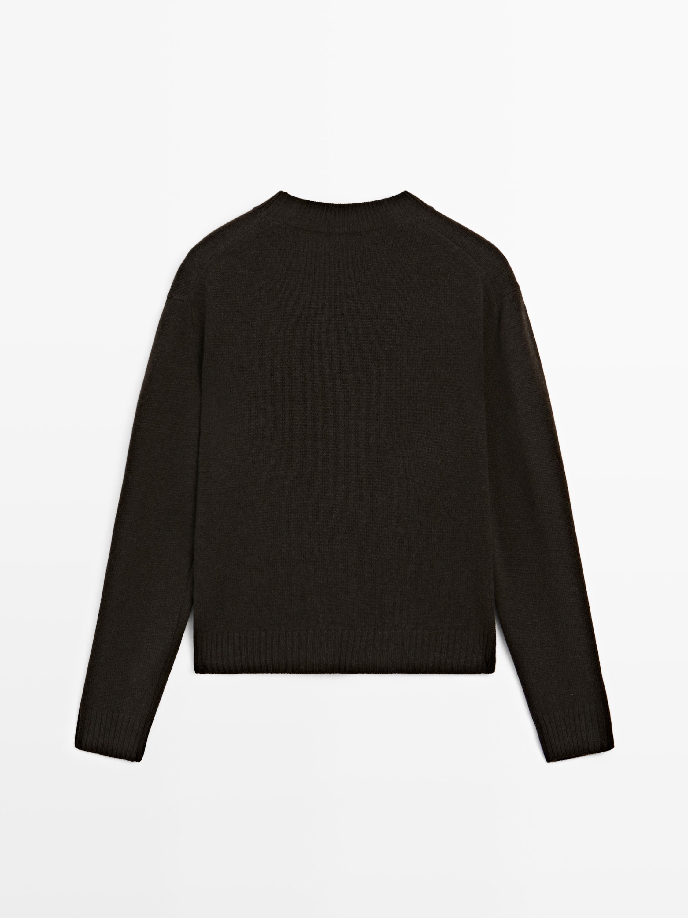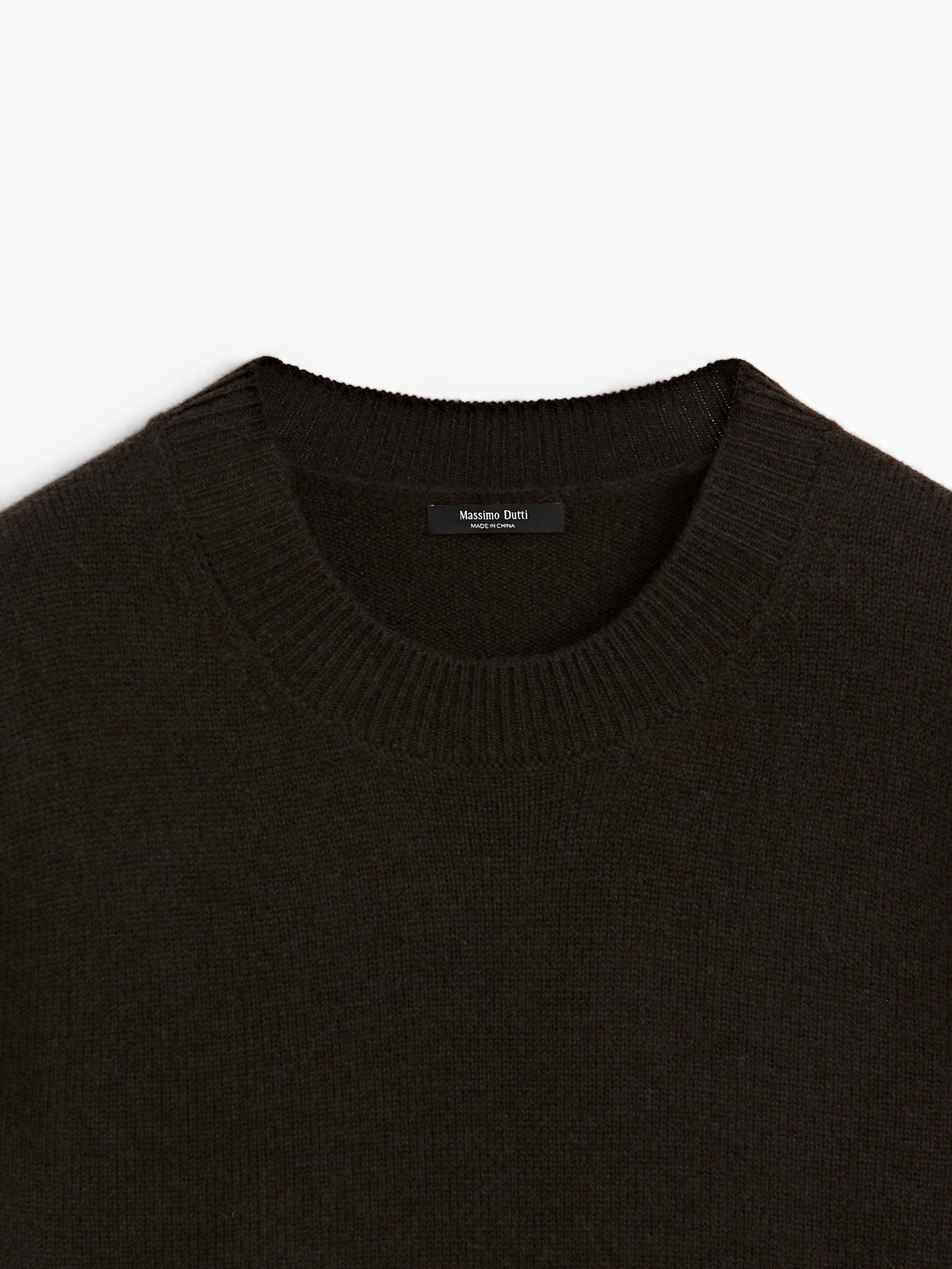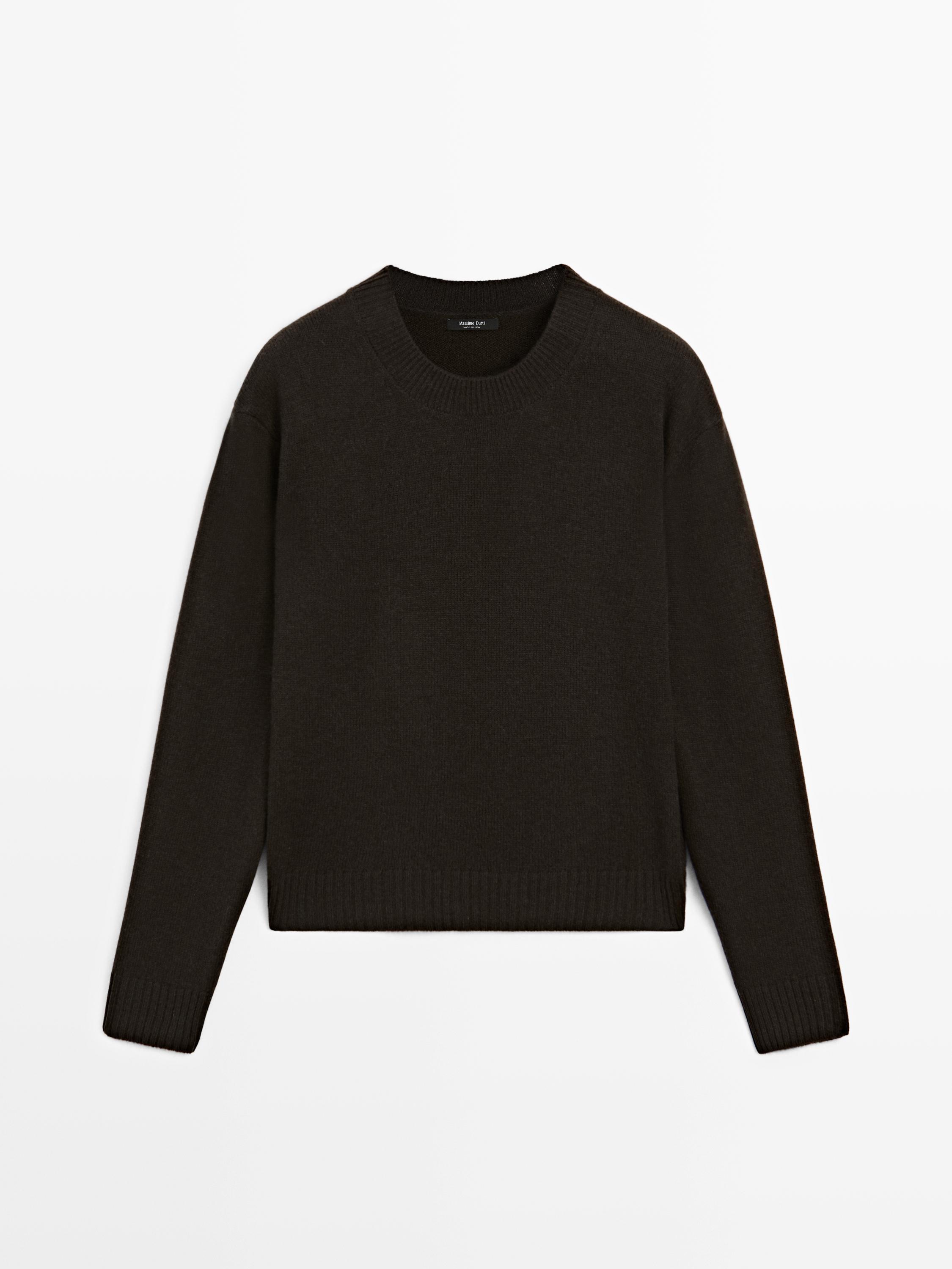 Massimo Dutti Свитер из смесовой шерсти с круглым вырезом, коричневый