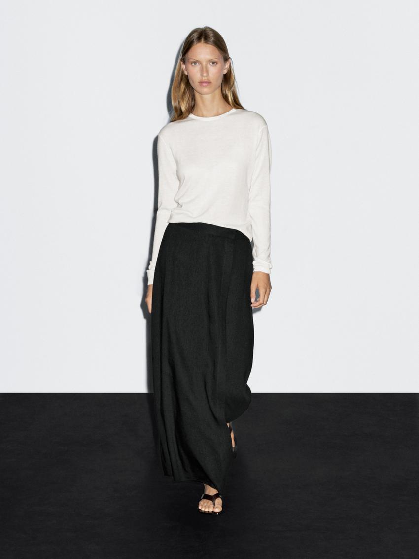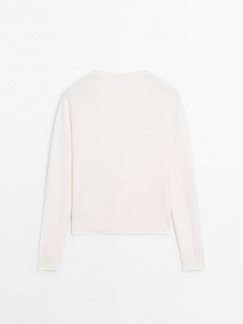 Massimo Dutti Свитер из смесовой шерсти с круглым вырезом, кремовый