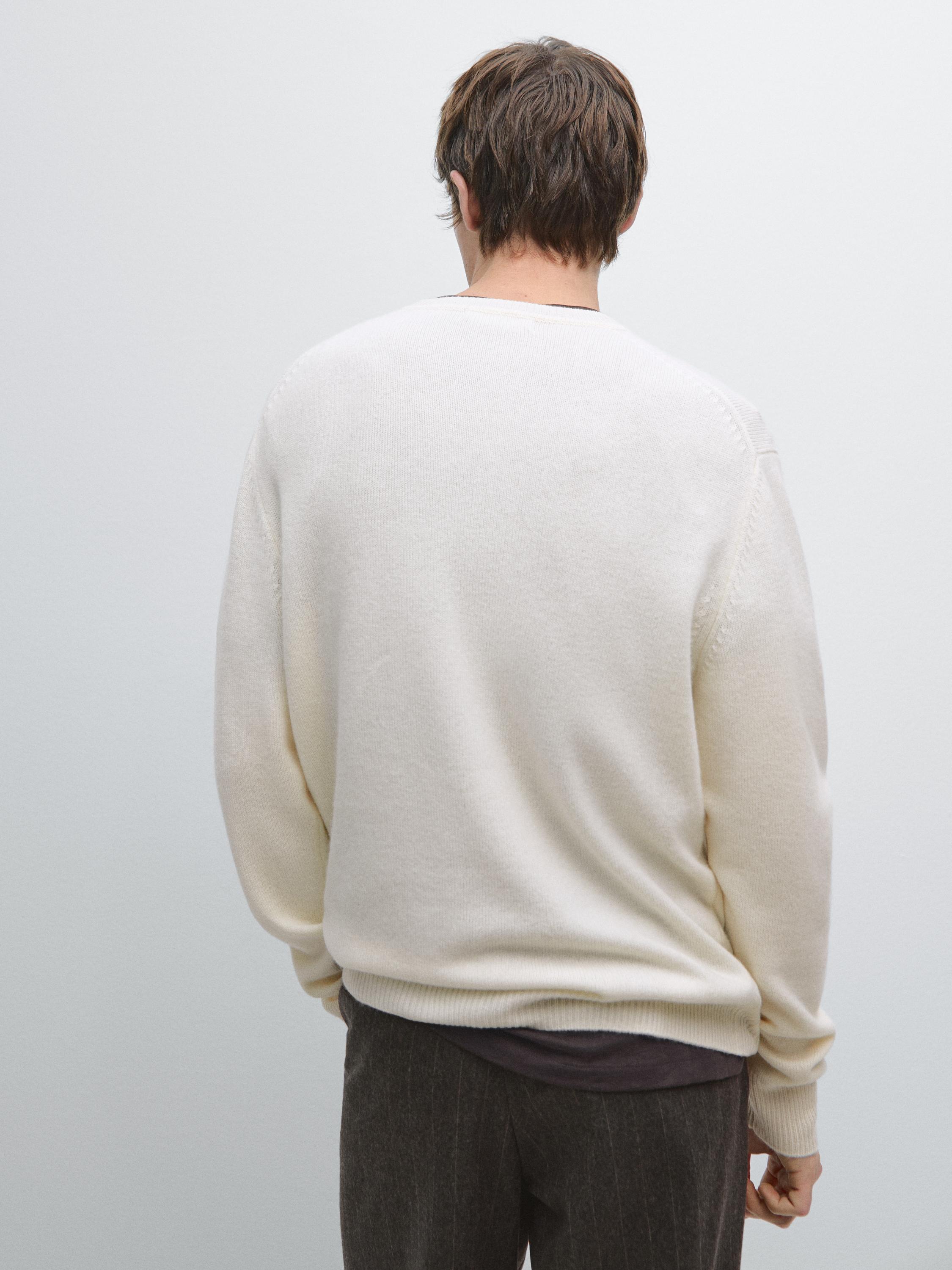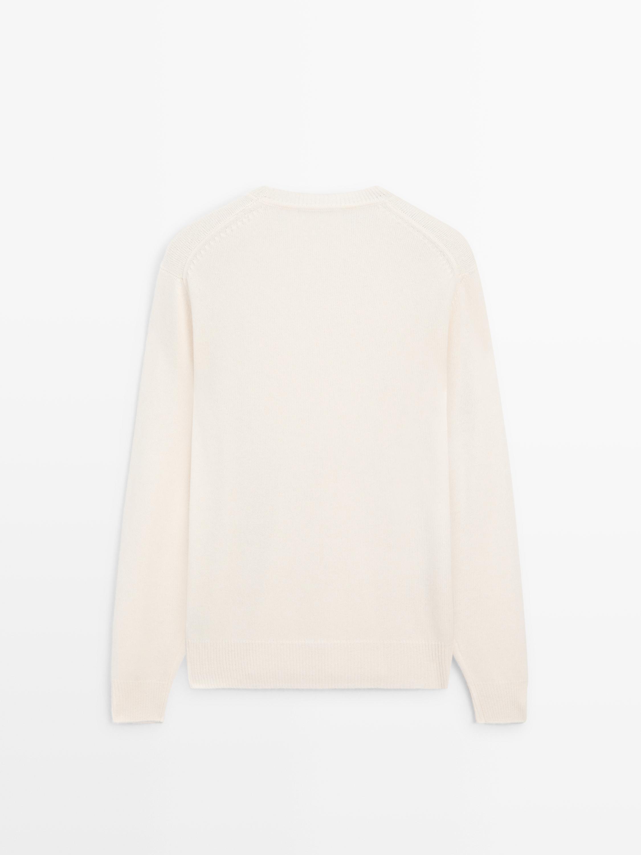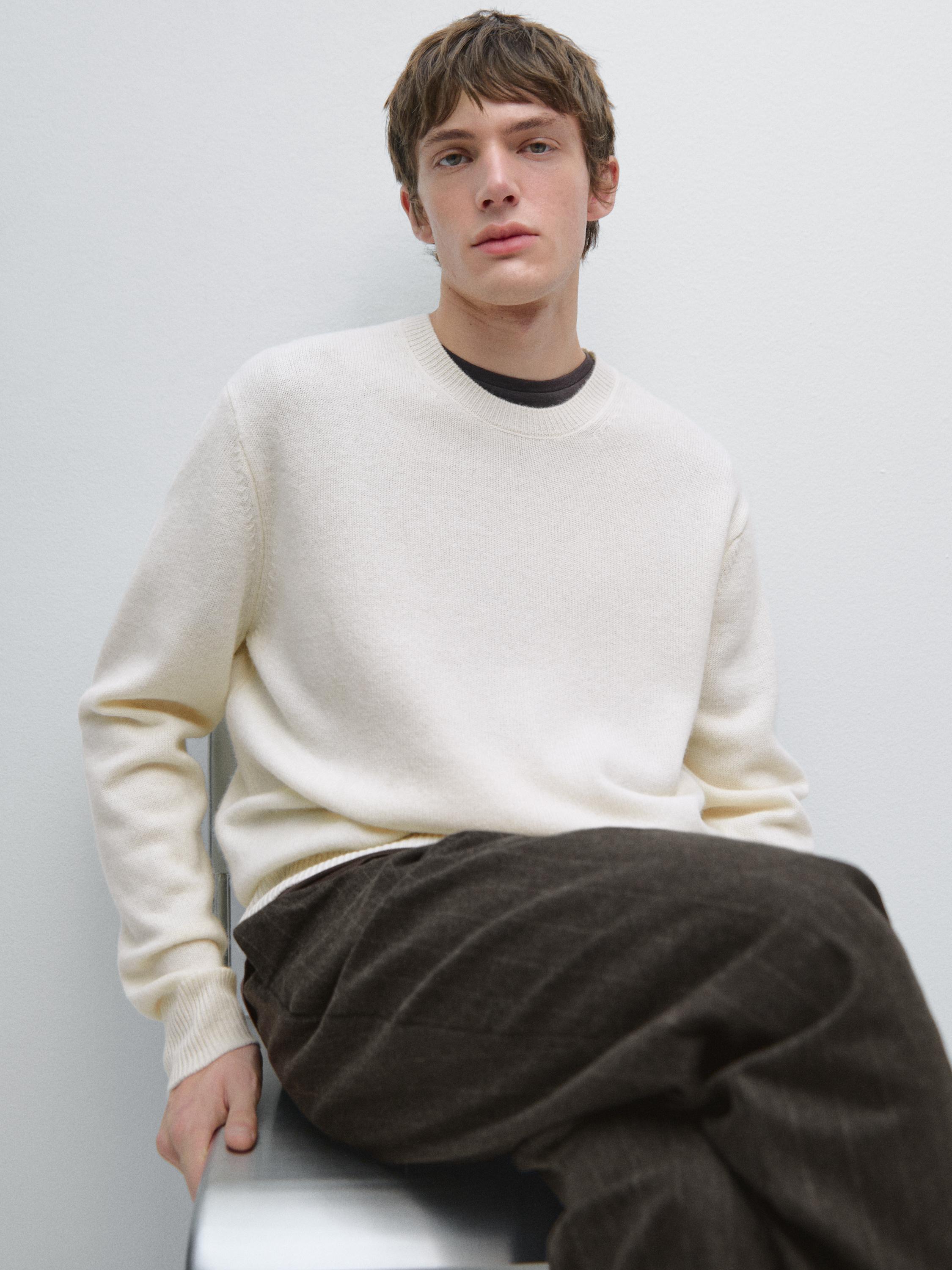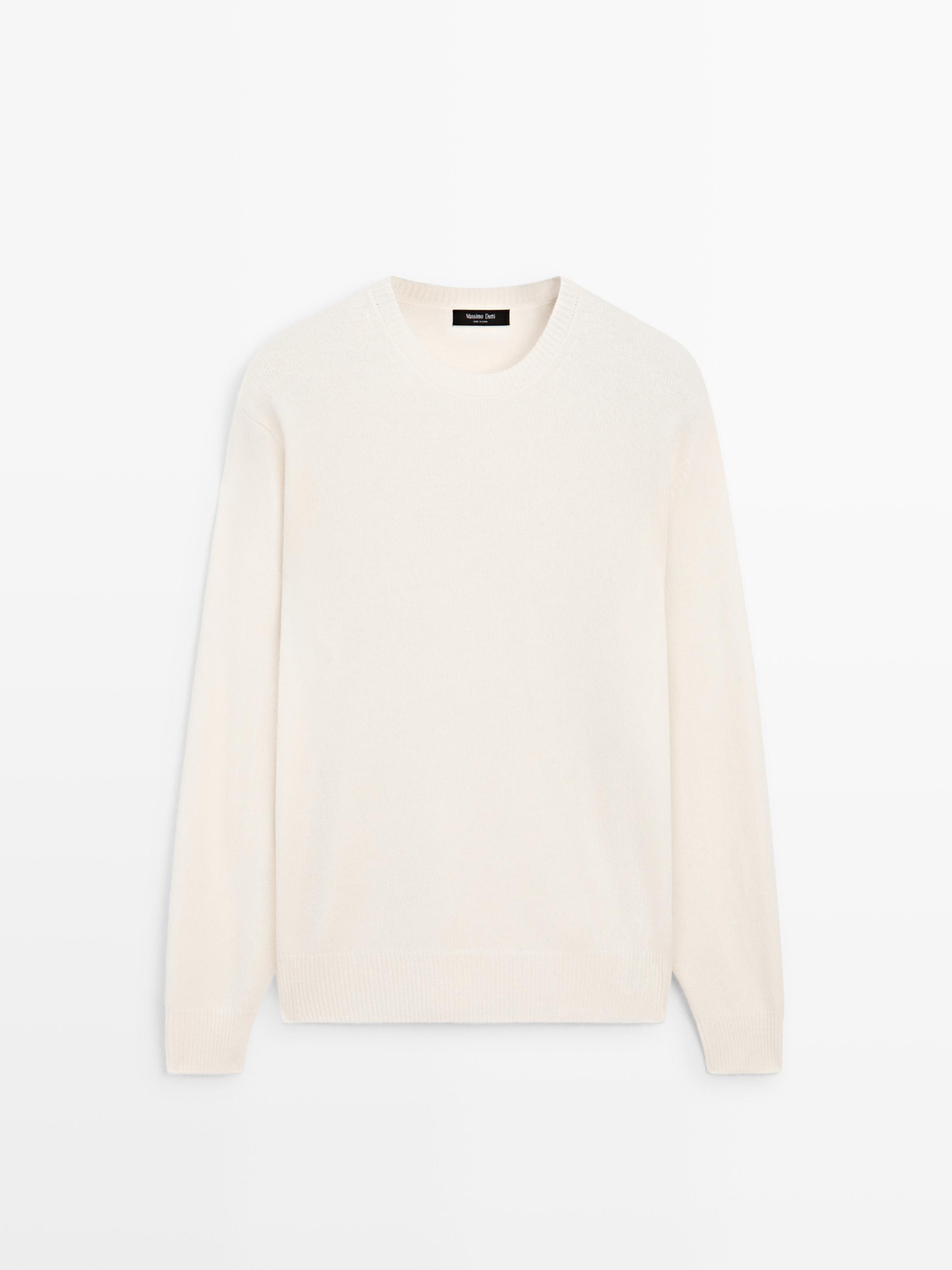 Massimo Dutti Свитер из смесовой шерсти с круглым вырезом, натуральный/кремовый