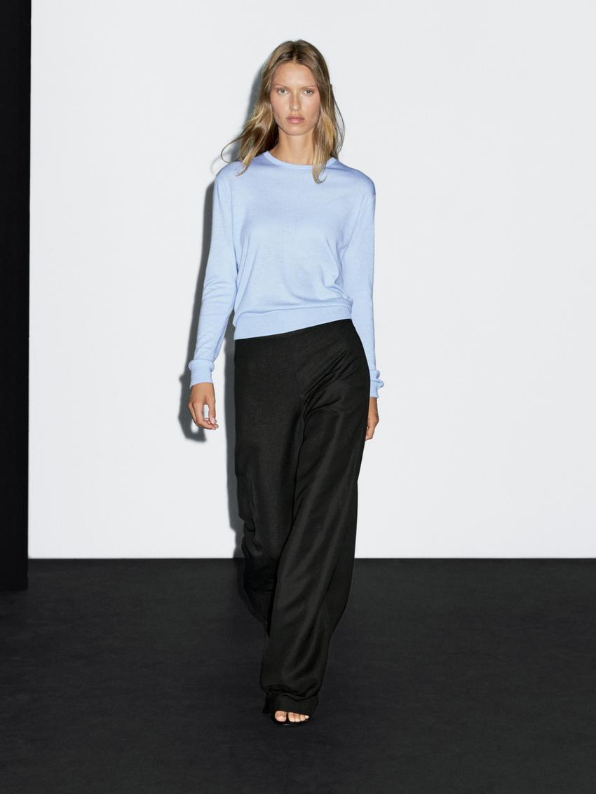 Massimo Dutti Свитер из смесовой шерсти с круглым вырезом, небесно-голубой