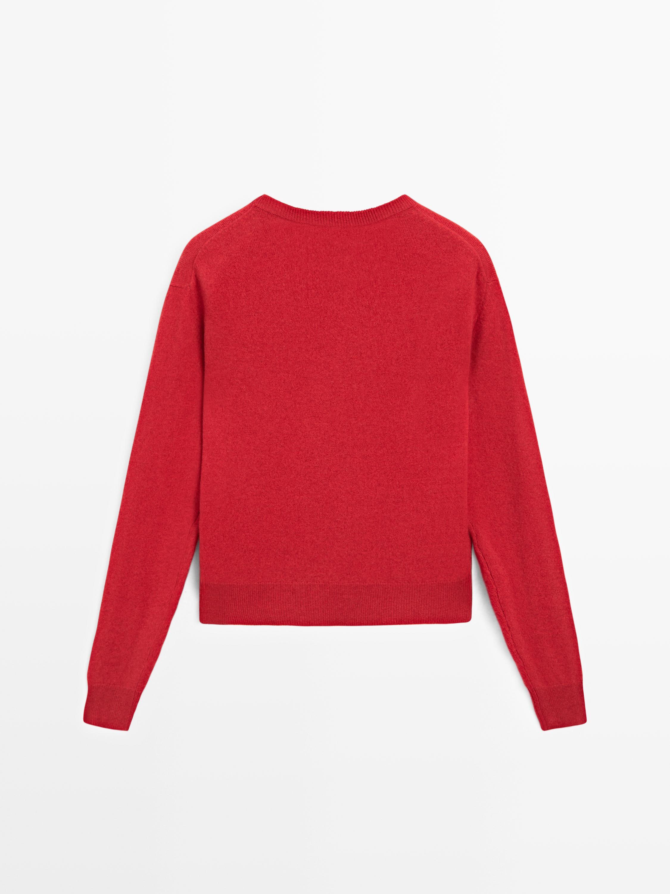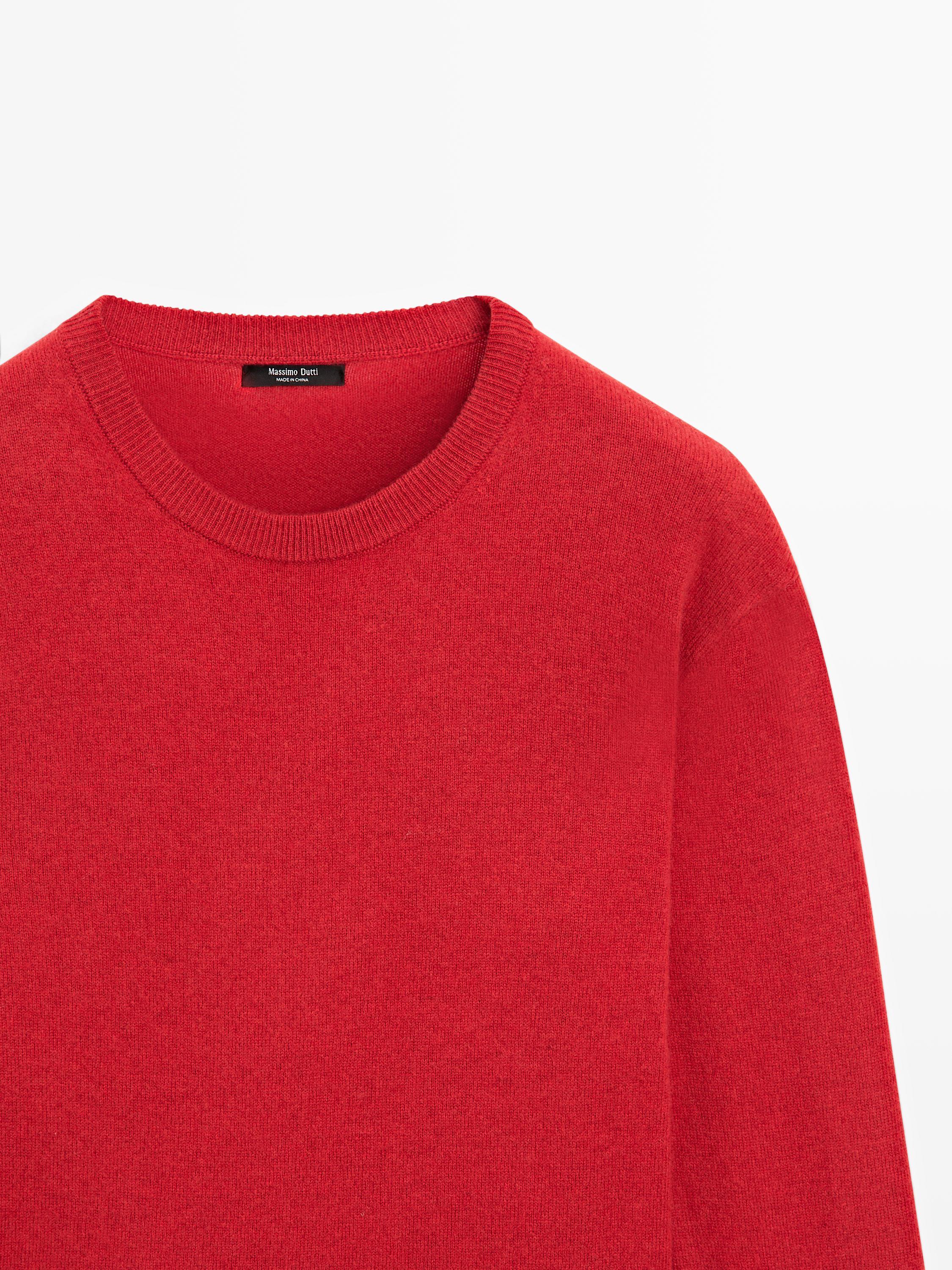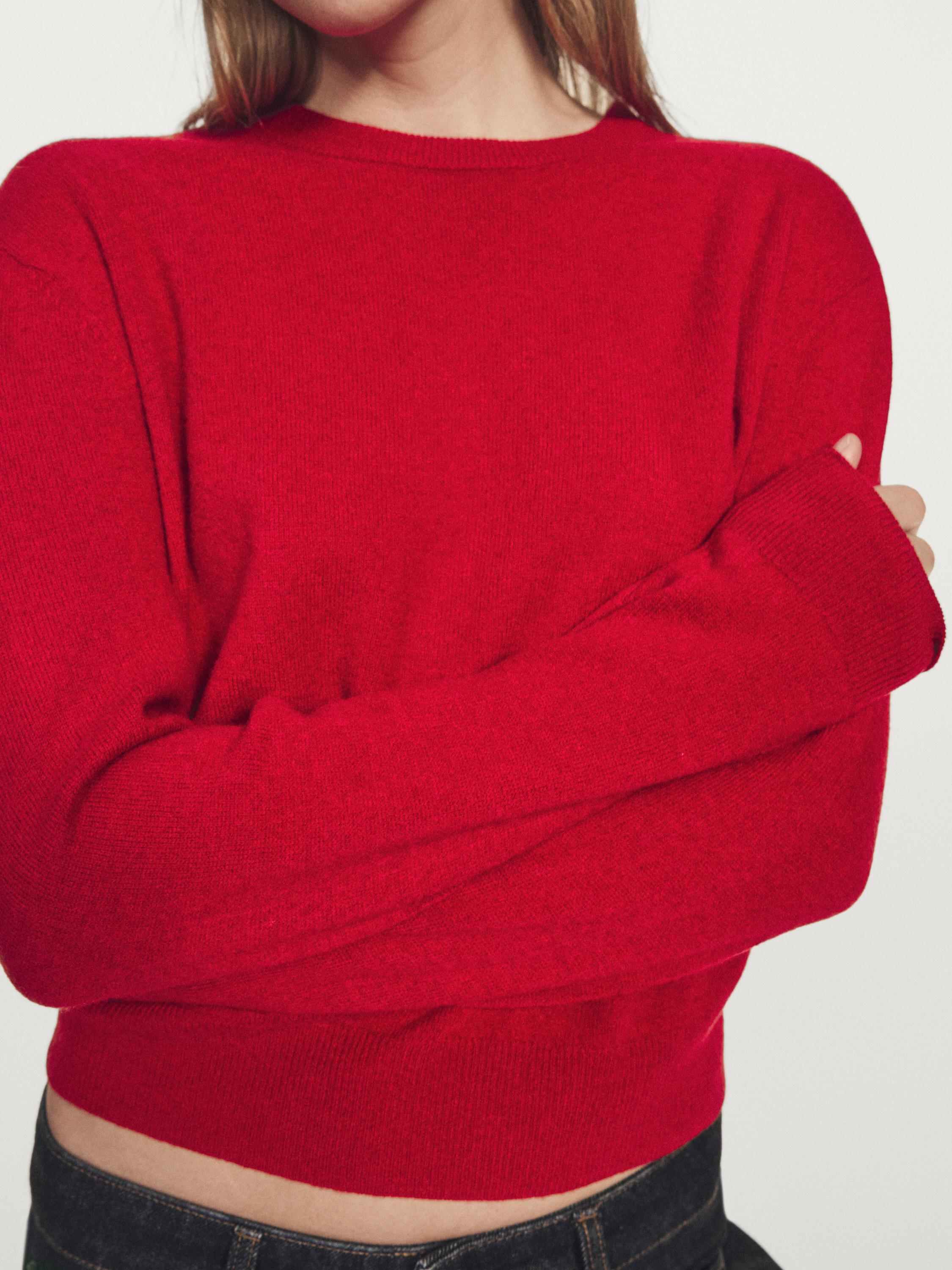 Massimo Dutti Свитер из смесовой шерсти с круглым вырезом, оранжевый