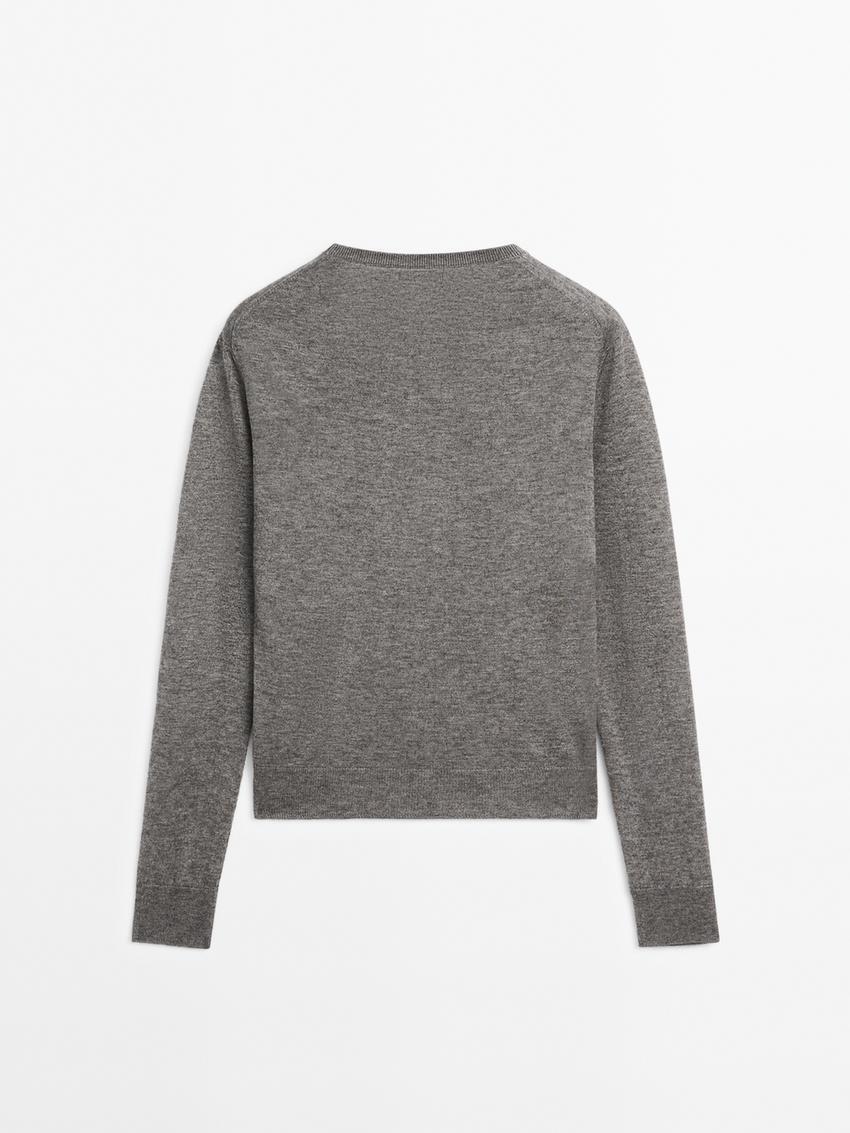 Massimo Dutti Свитер из смесовой шерсти с круглым вырезом, серый
