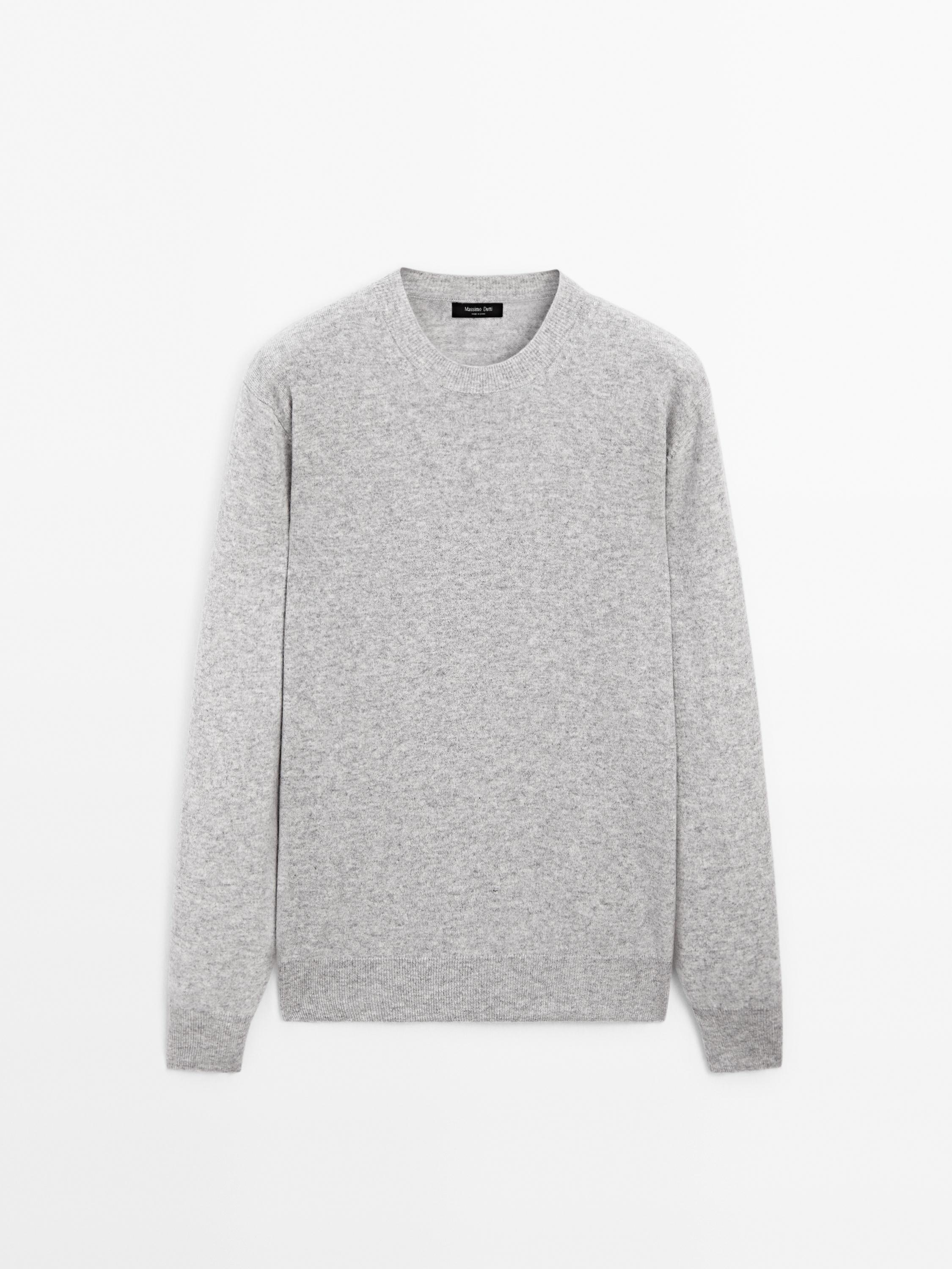 Massimo Dutti Свитер из смесовой шерсти с круглым вырезом, серый меланж