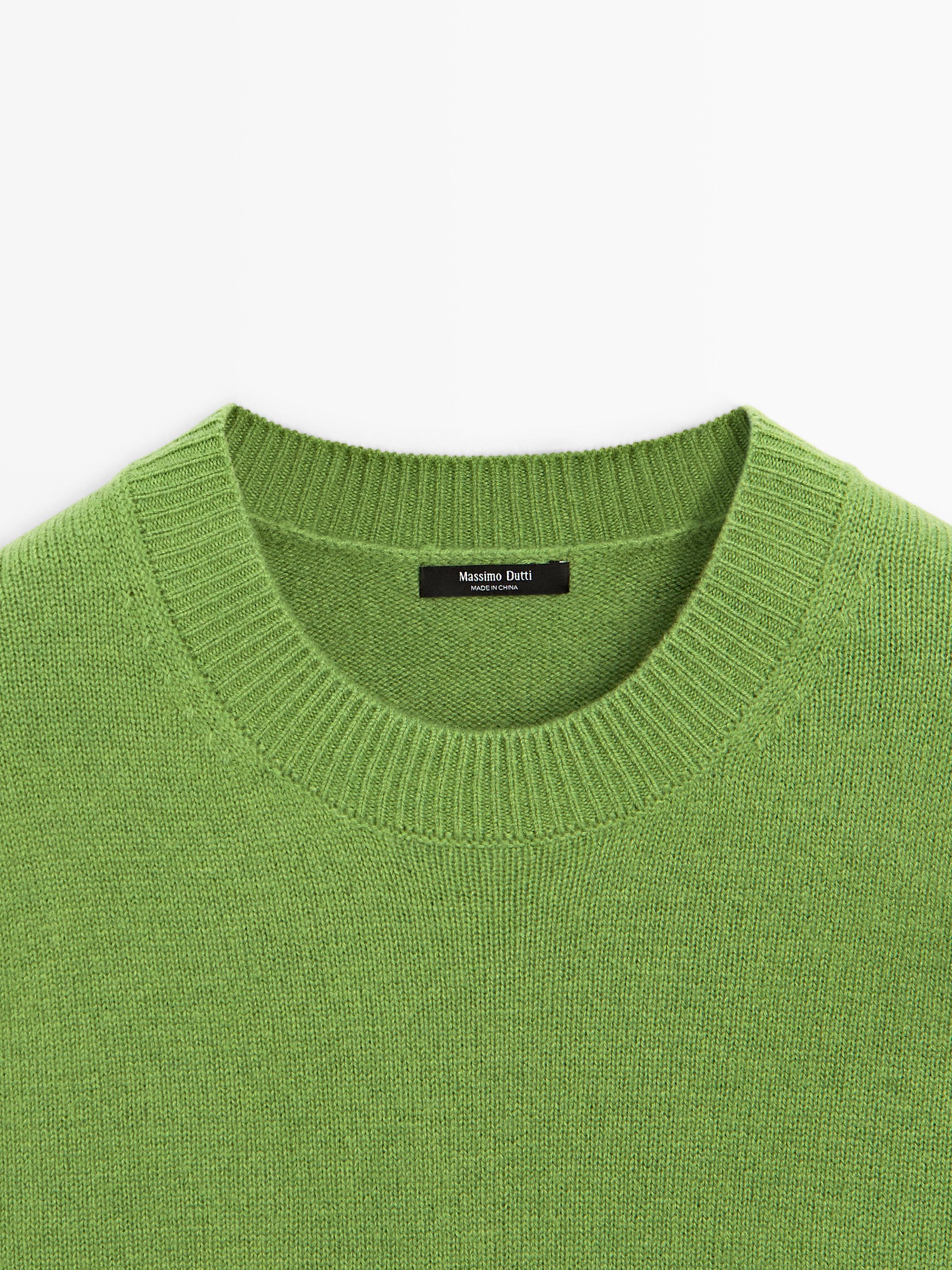 Massimo Dutti Свитер из смесовой шерсти с круглым вырезом, светло-зеленый