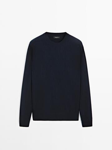 Massimo Dutti Свитер из смесовой шерсти с круглым вырезом, темно-синий