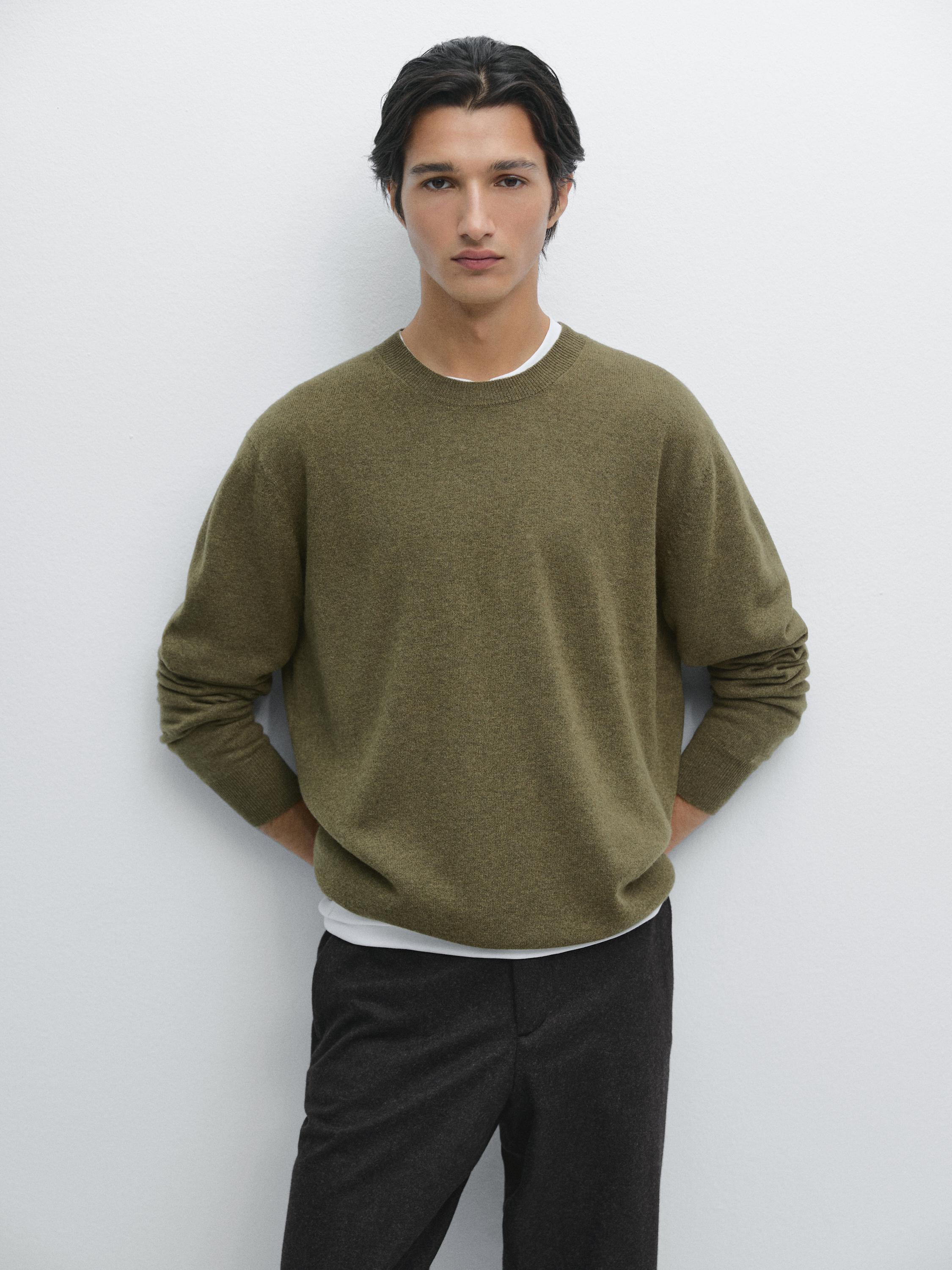 Massimo Dutti Свитер из смесовой шерсти с круглым вырезом, цвет морской волны