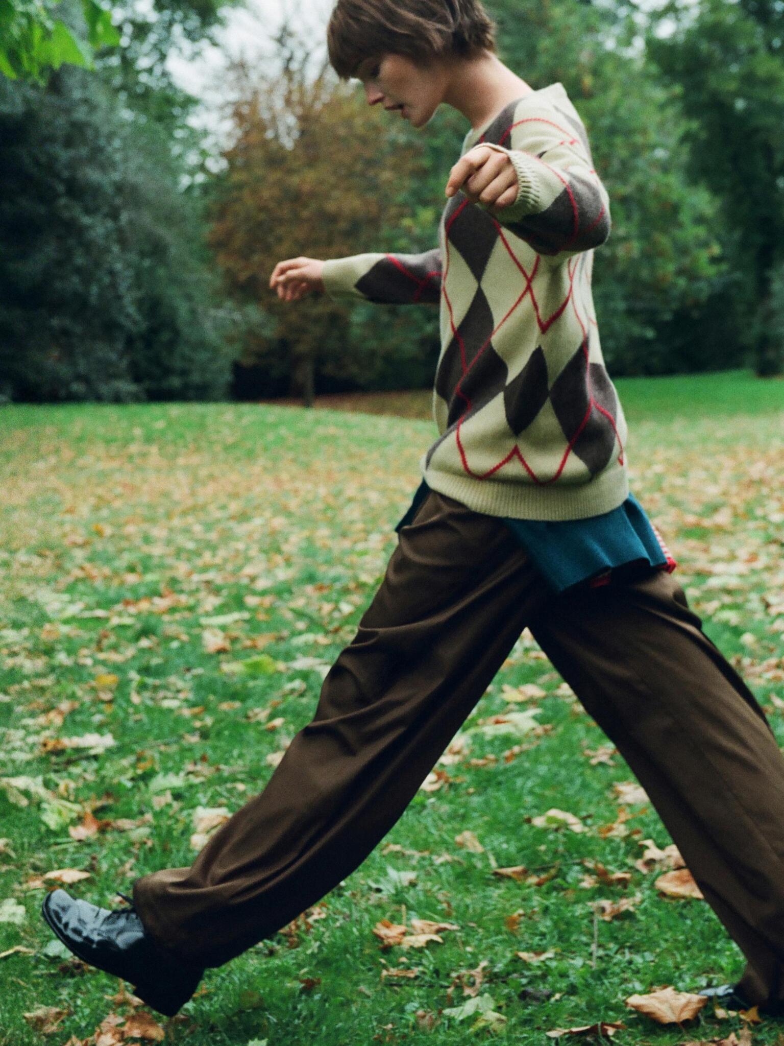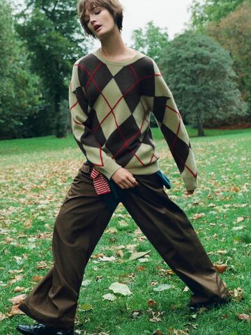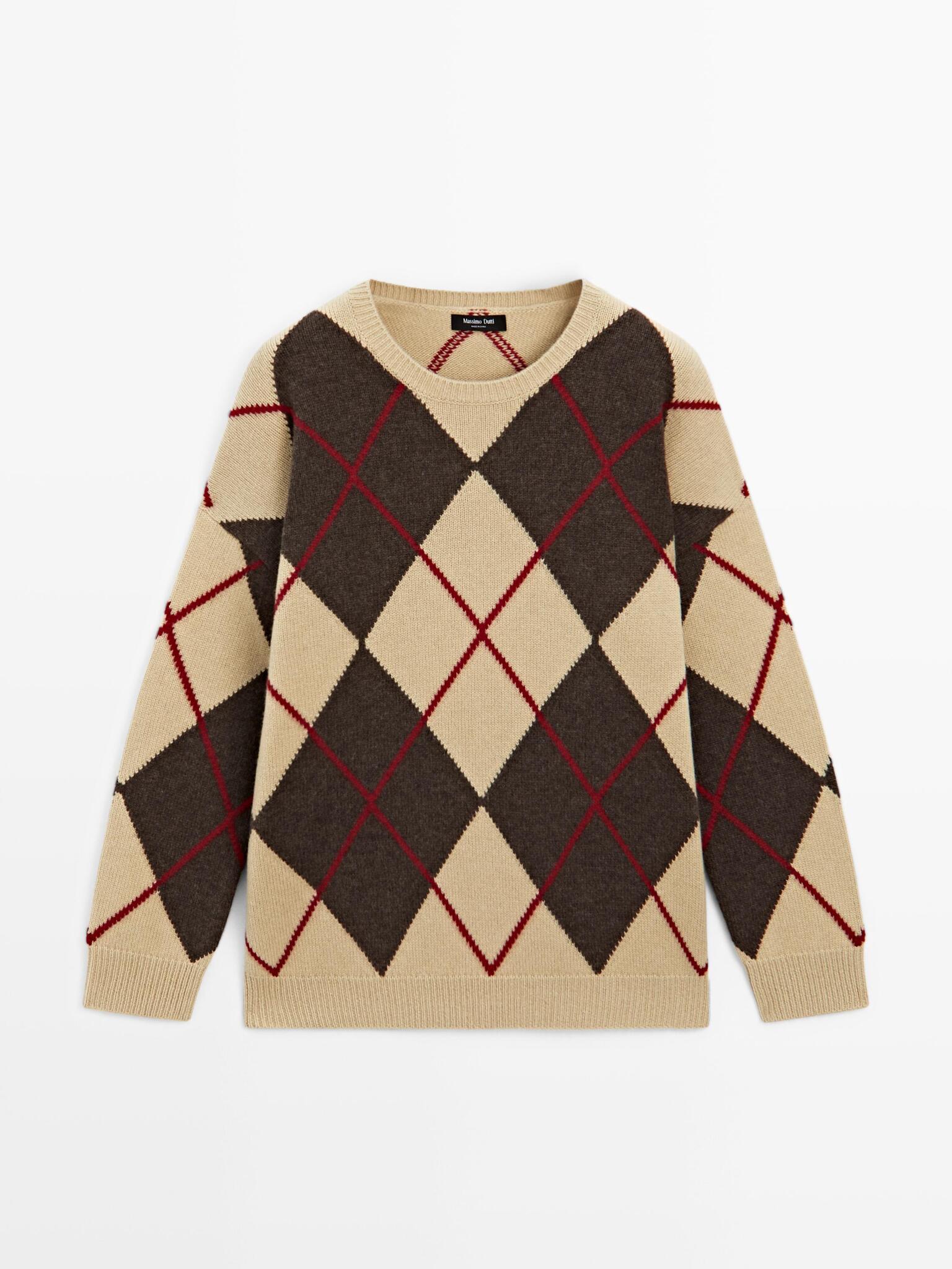Massimo Dutti Свитер из смесовой шерсти с узором «ромбы», цвет верблюжьей шерсти