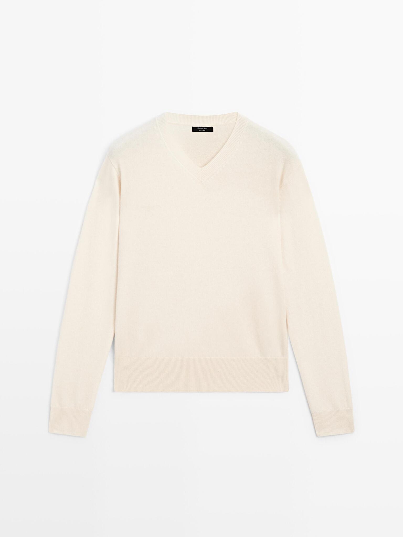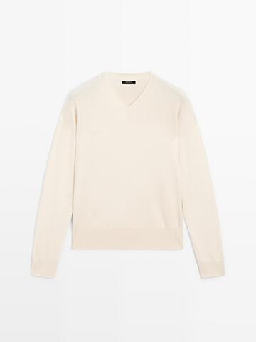 Massimo Dutti Свитер из смесовой шерсти с V-образным вырезом, бежевый