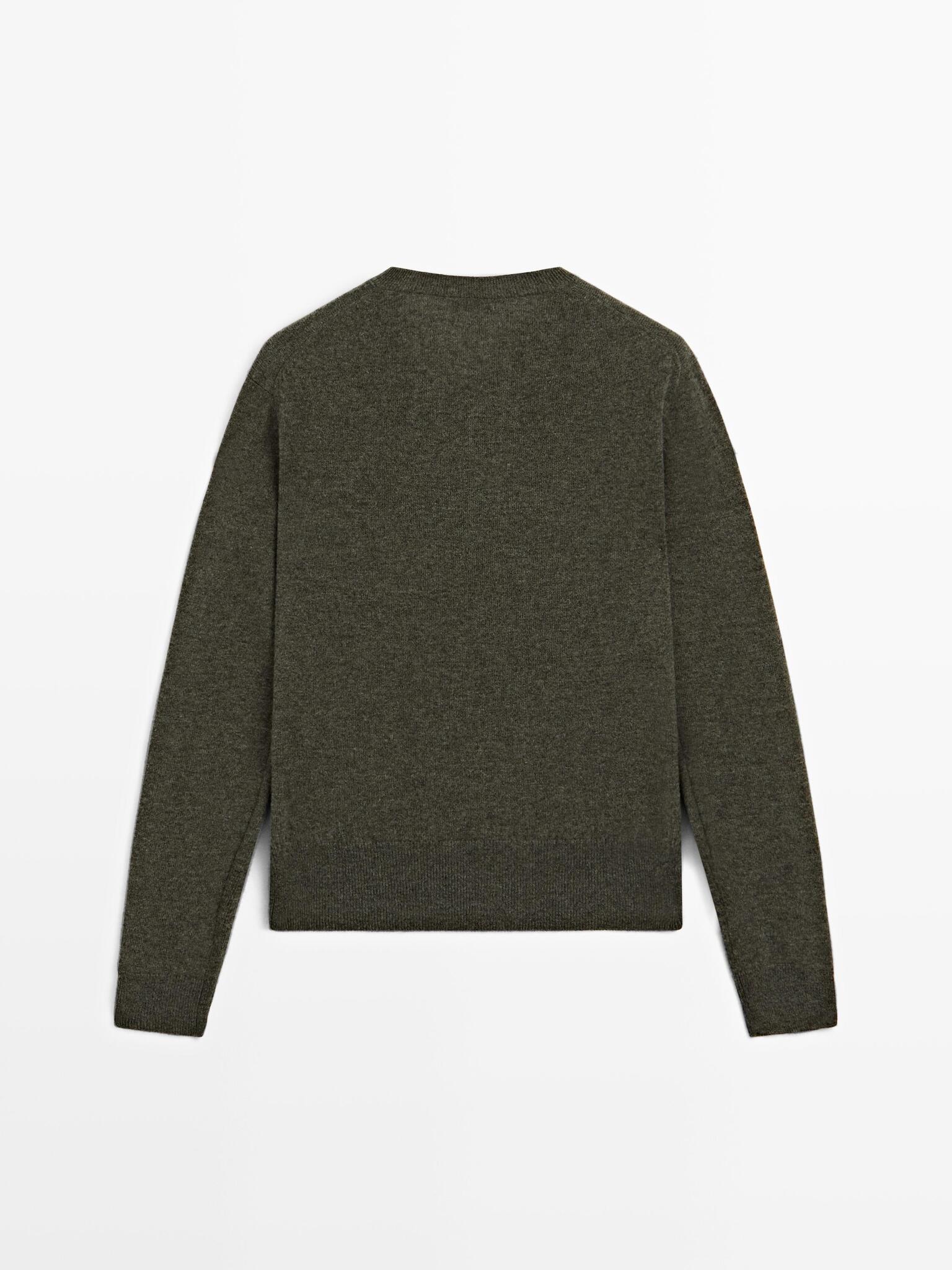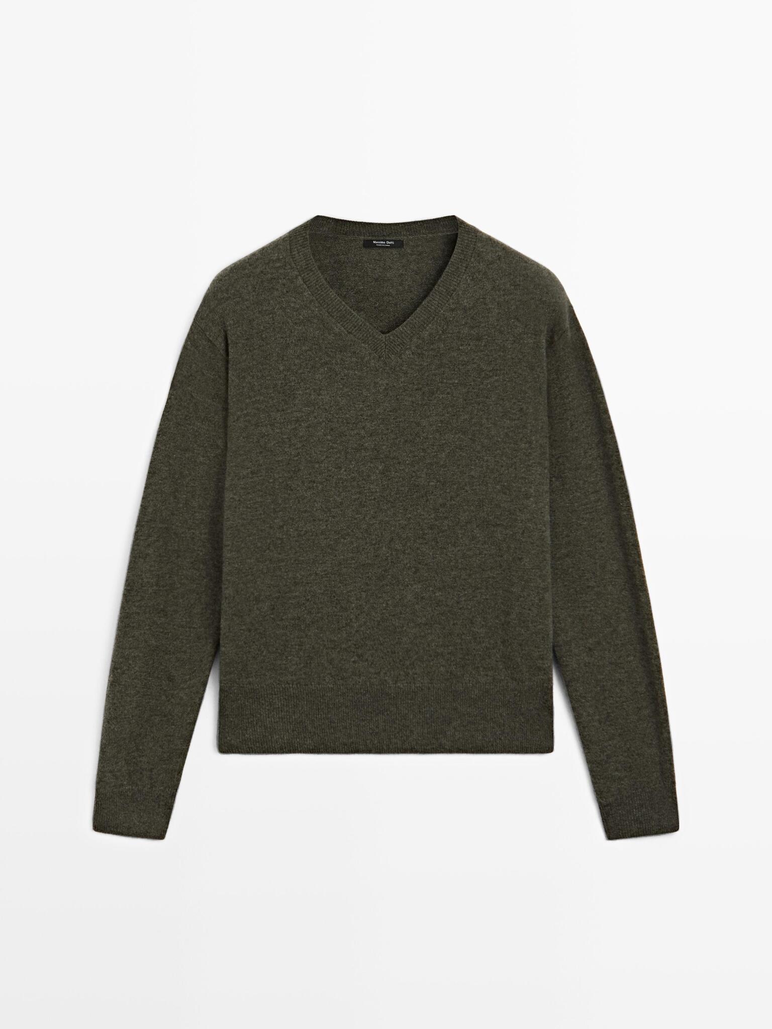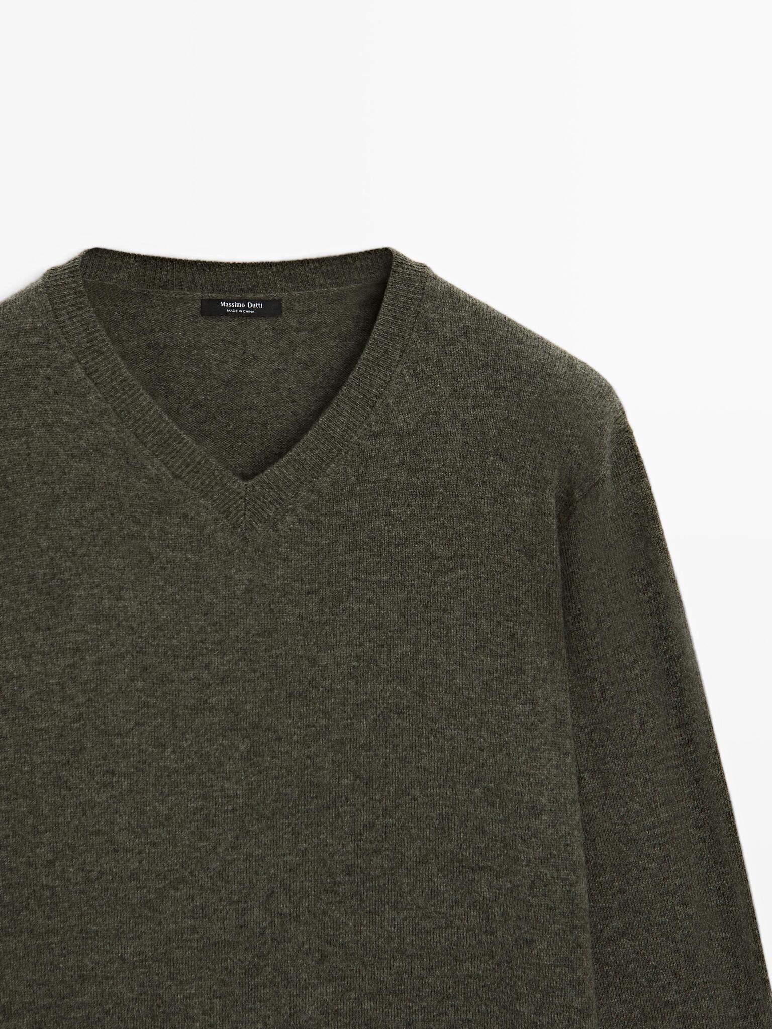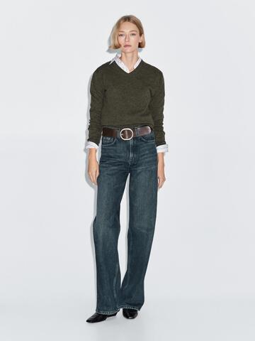 Massimo Dutti Свитер из смесовой шерсти с V-образным вырезом, зеленый