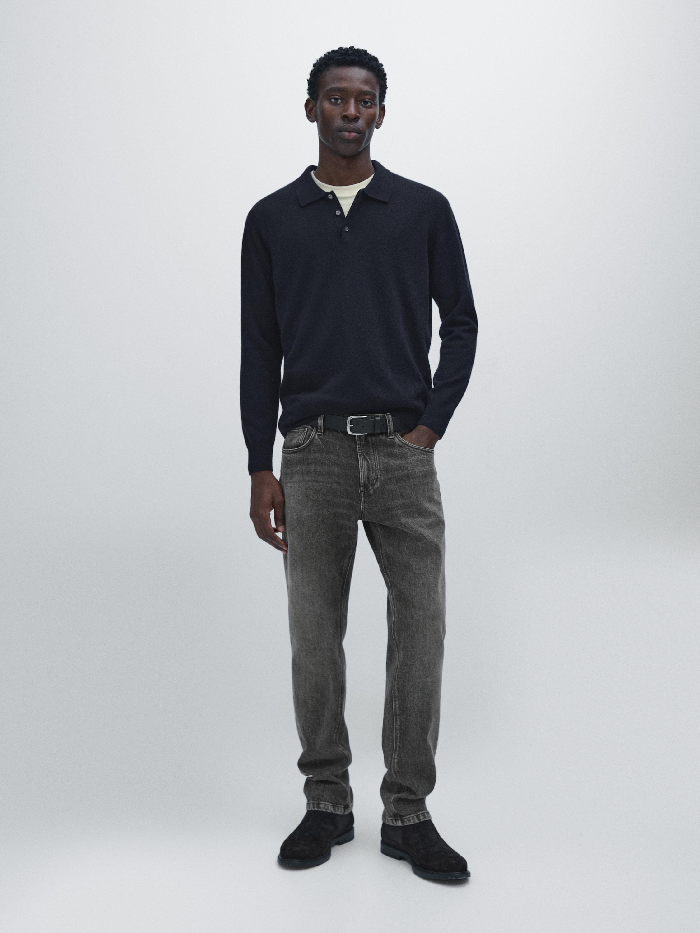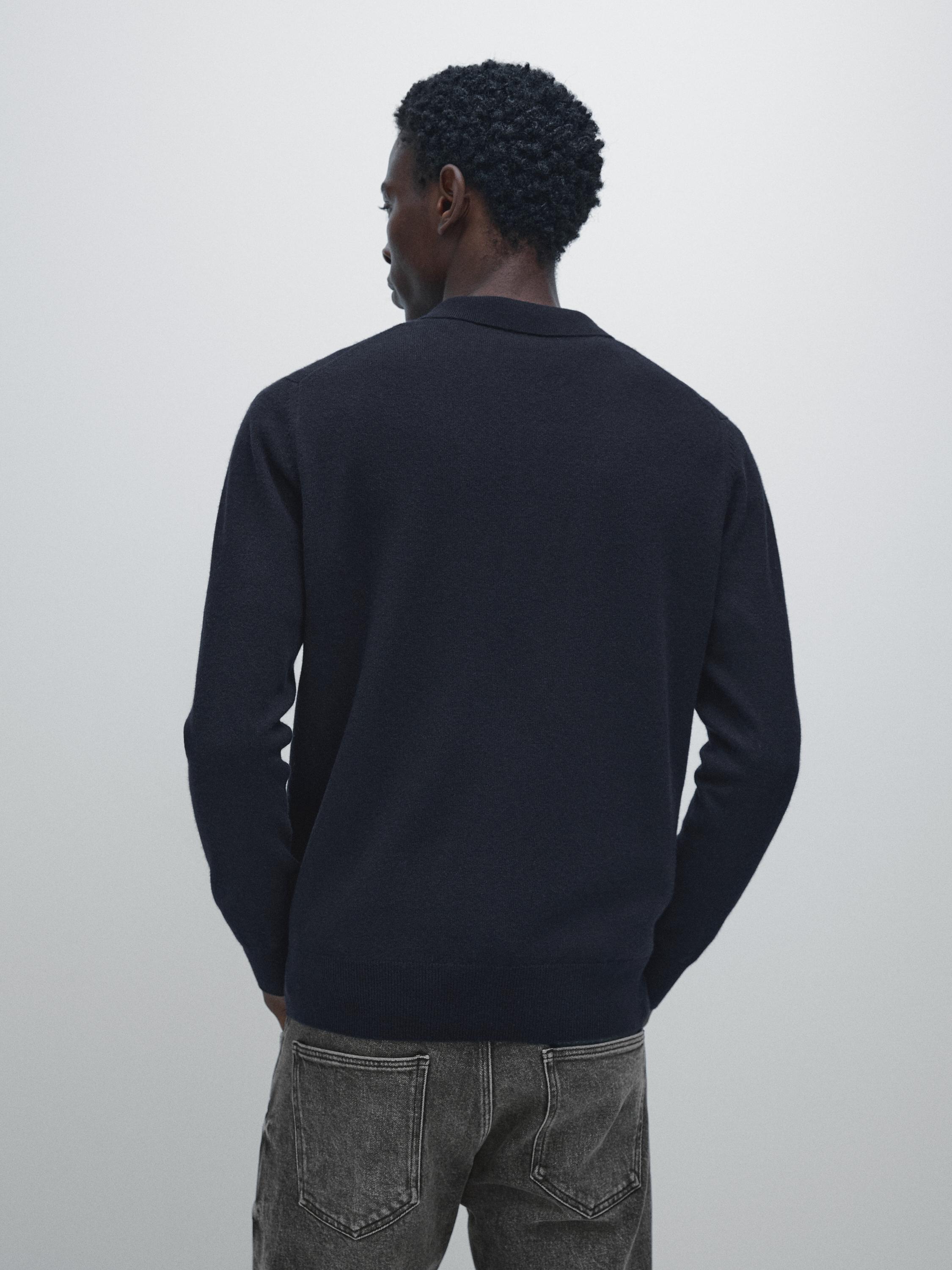 Massimo Dutti Свитер из смесовой шерсти с воротником поло, темно-синий