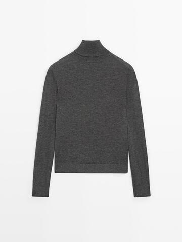 Massimo Dutti Свитер из смесовой шерсти с высоким воротником, антрацитово-серый