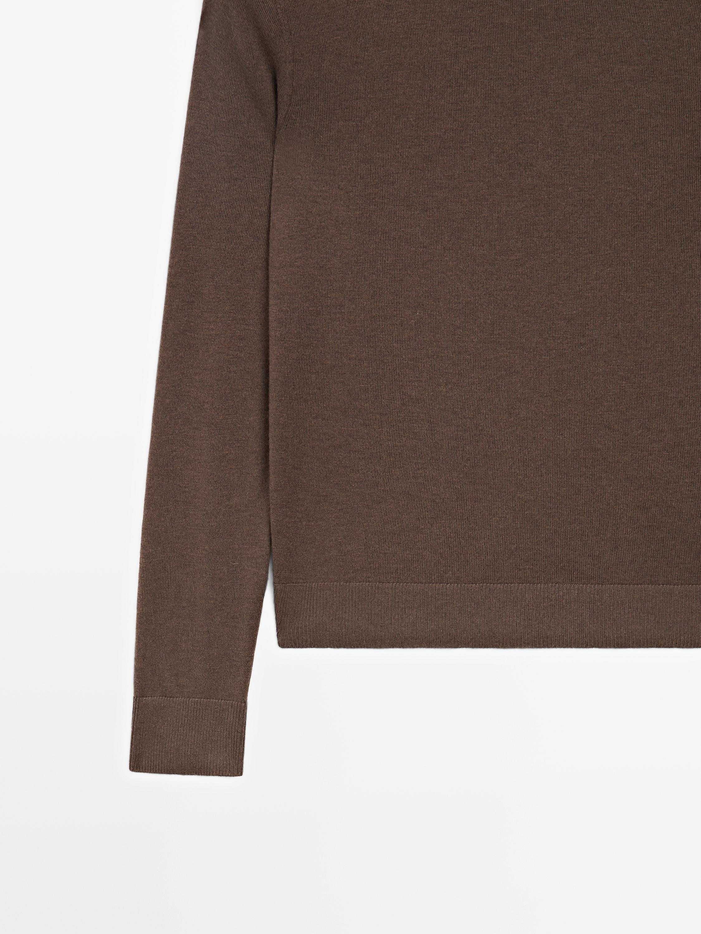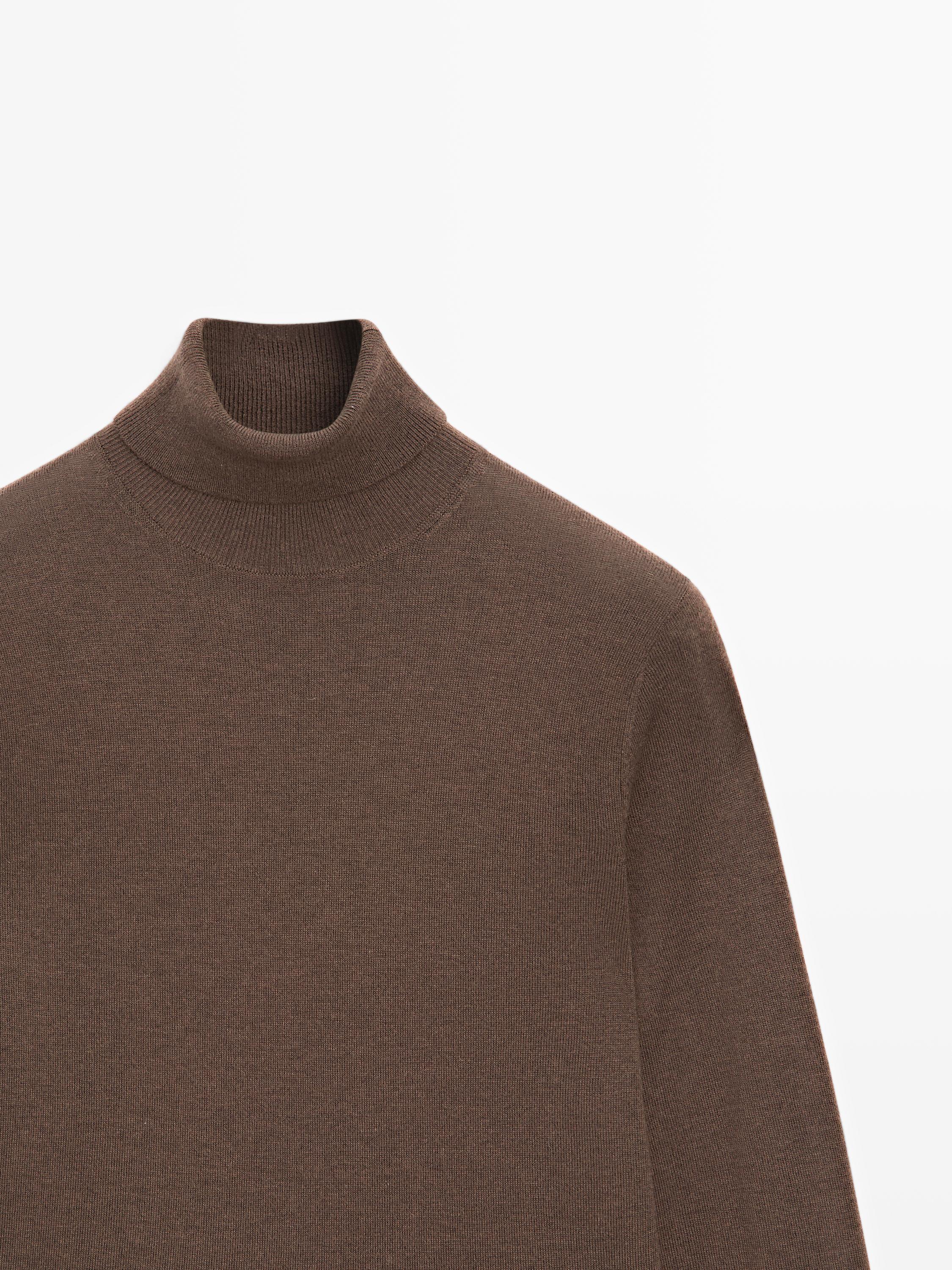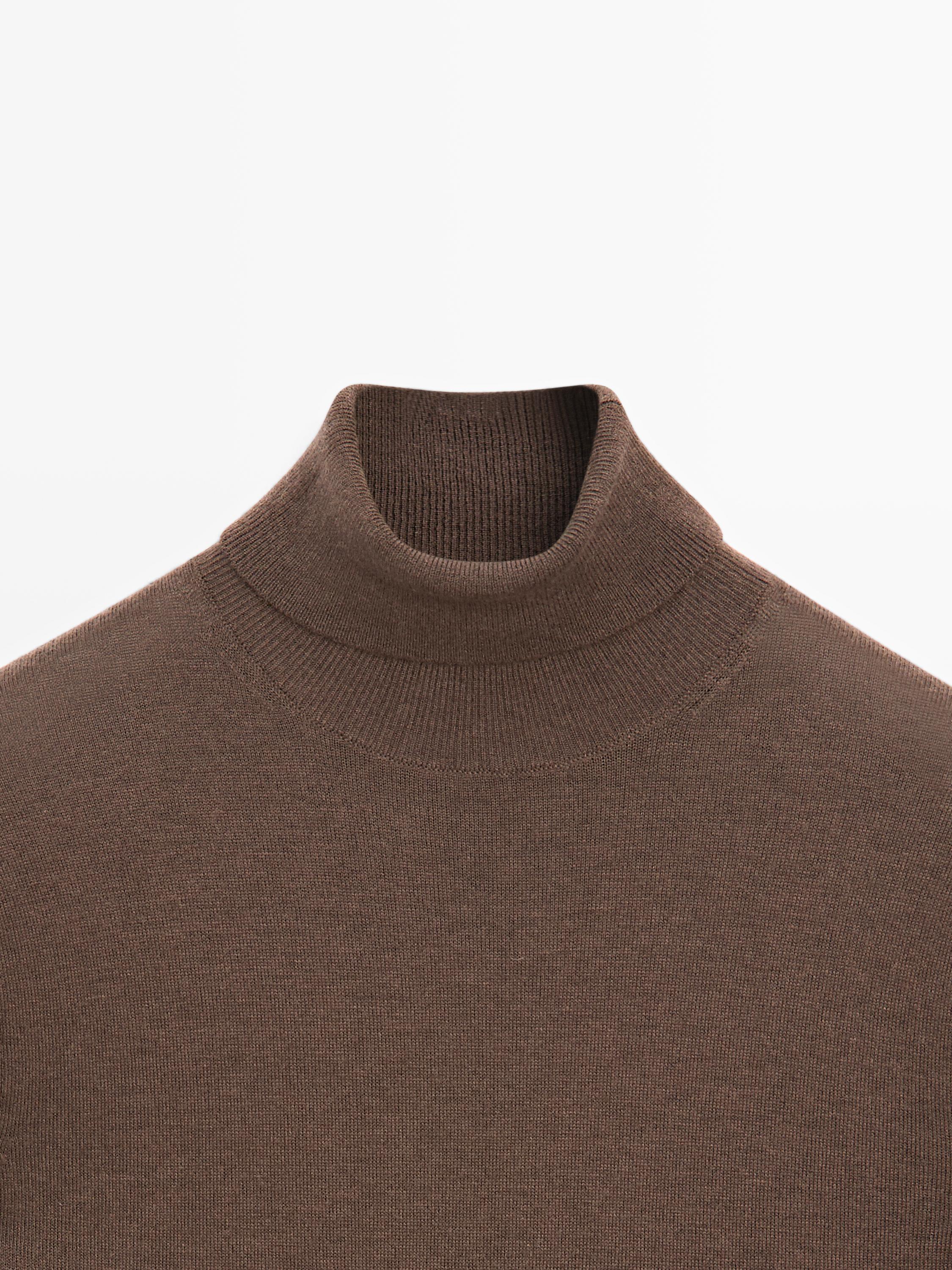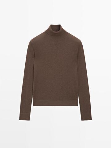Massimo Dutti Свитер из смесовой шерсти с высоким воротником, коричневый