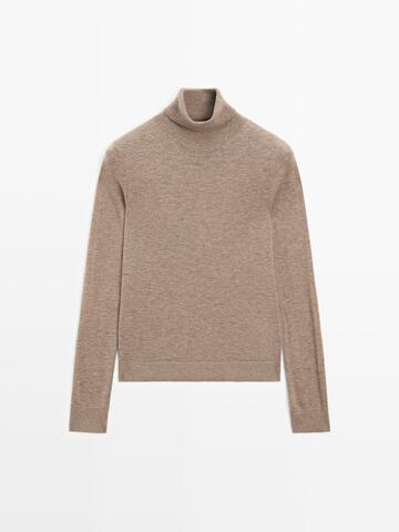 Massimo Dutti Свитер из смесовой шерсти с высоким воротником, кротово-коричневый