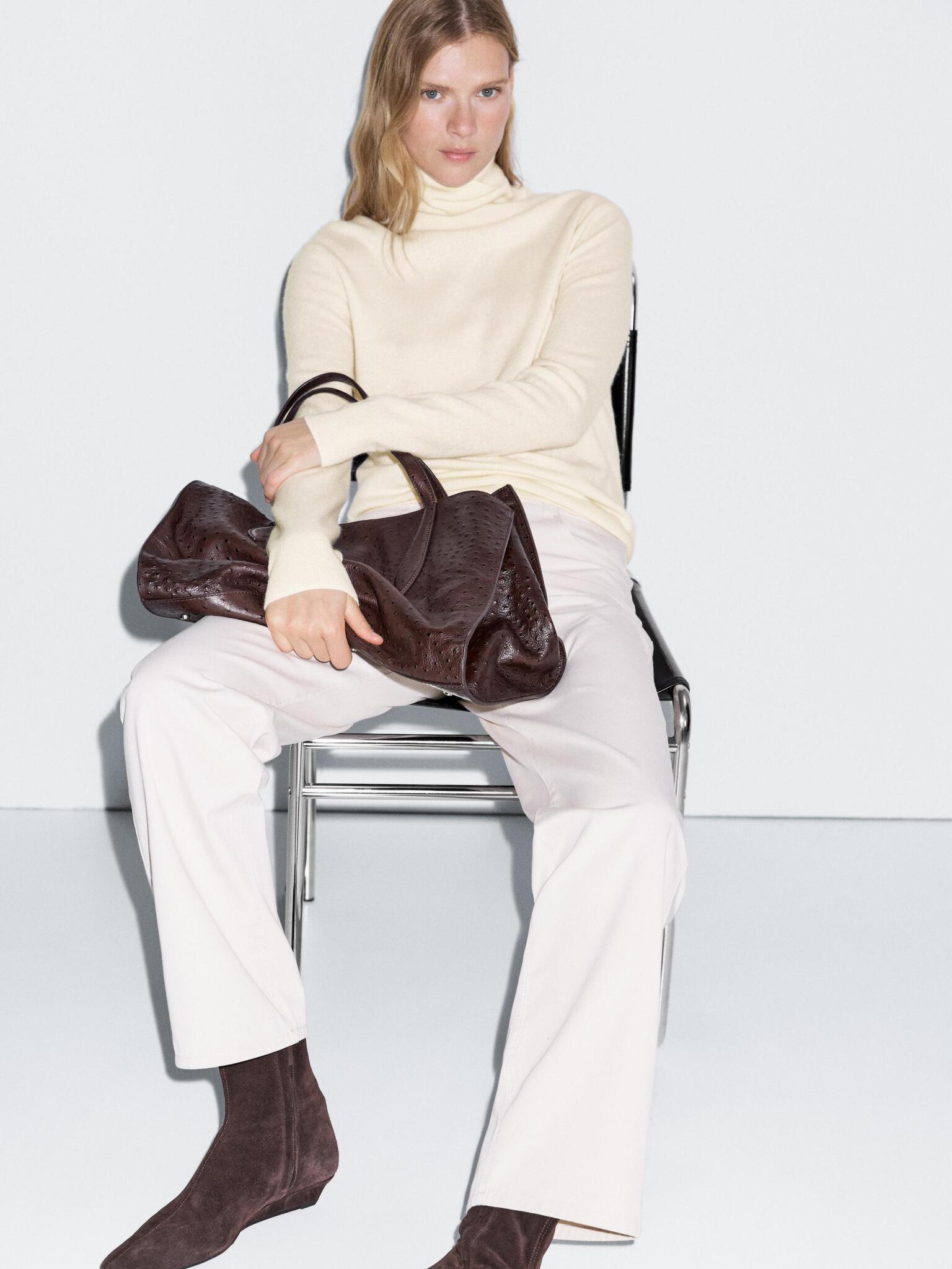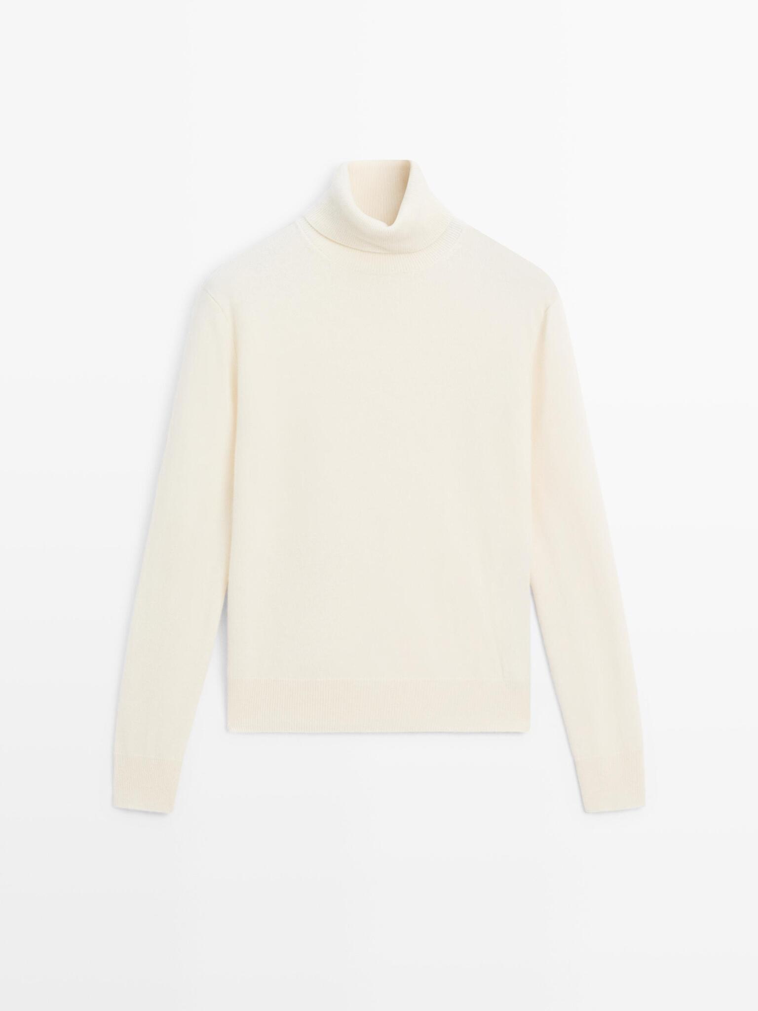 Massimo Dutti Свитер из смесовой шерсти с высоким воротником, натуральный/кремовый