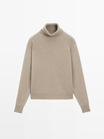 Massimo Dutti Свитер из смесовой шерсти с высоким воротником, серо-зеленый