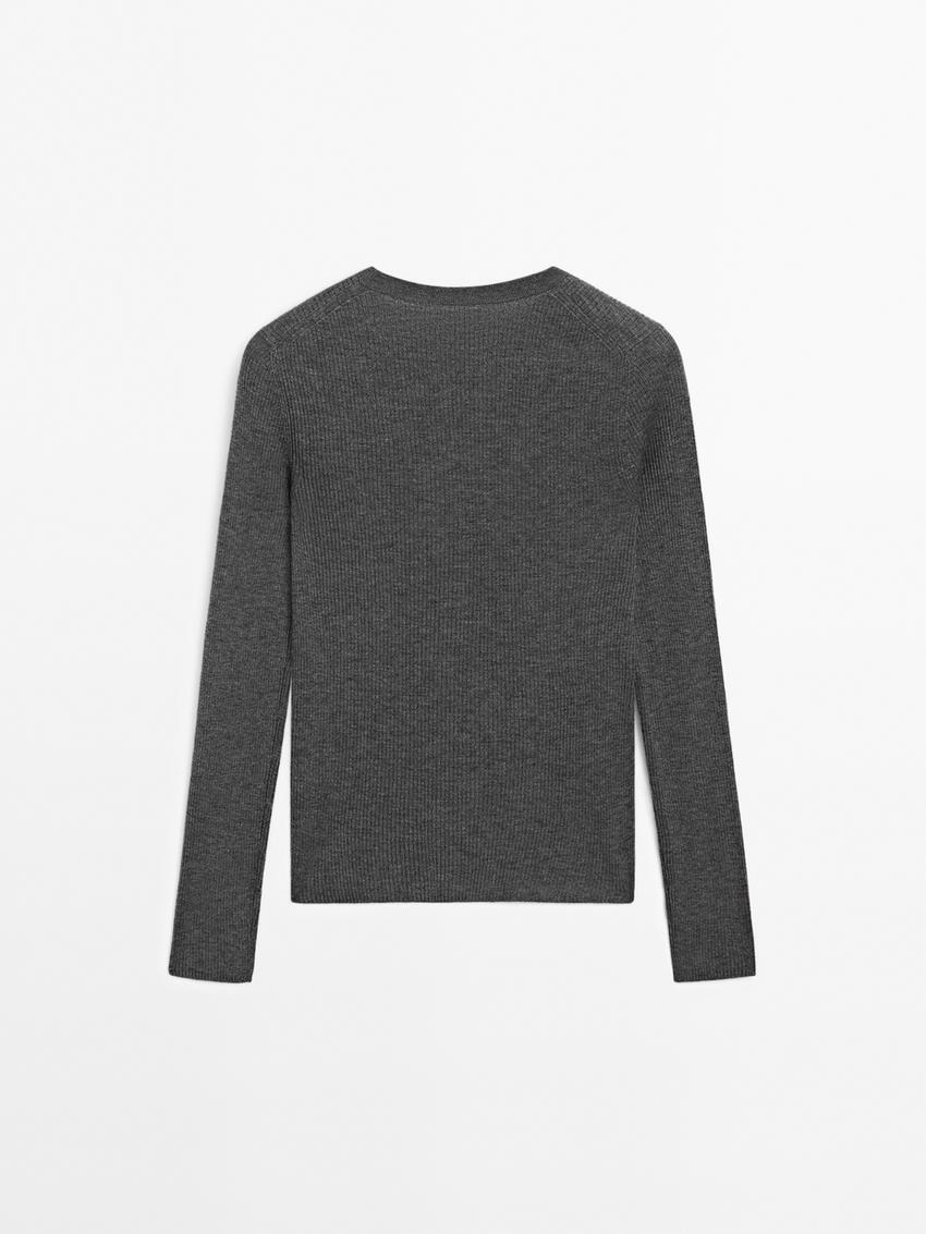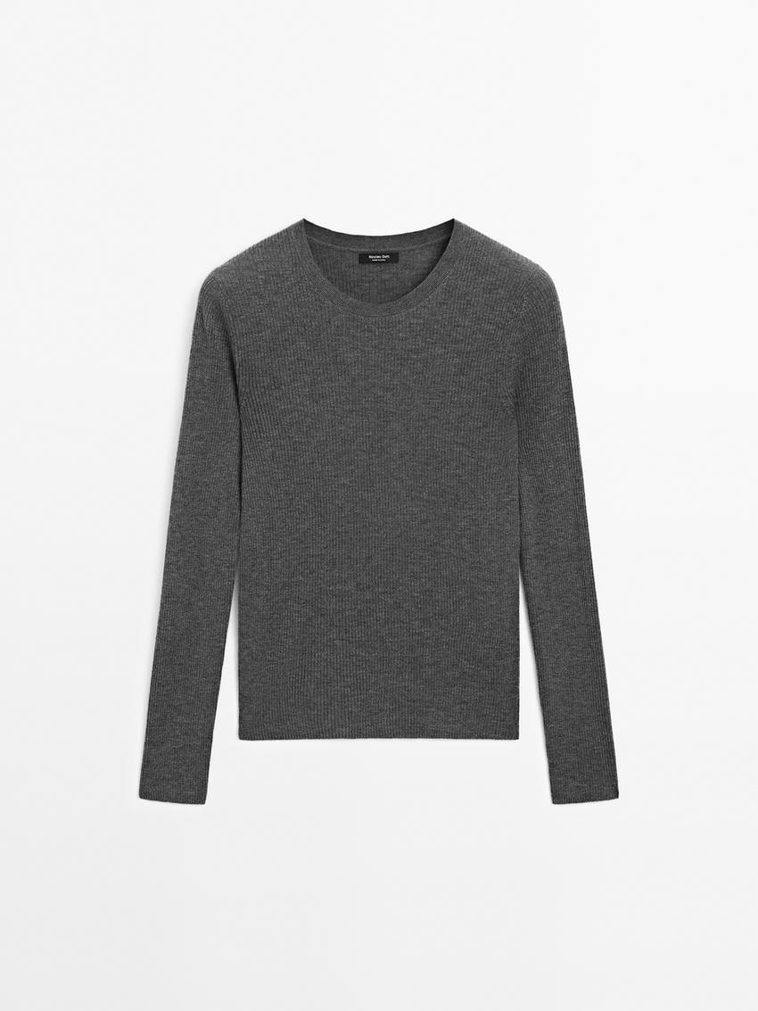 Massimo Dutti Свитер из смесовой шерсти в рубчик, серый