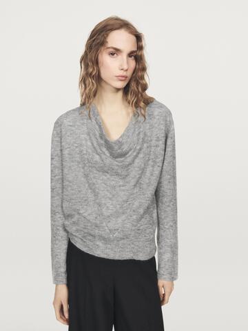 Massimo Dutti Свитер из трикотажа с драпированным вырезом, серый меланж