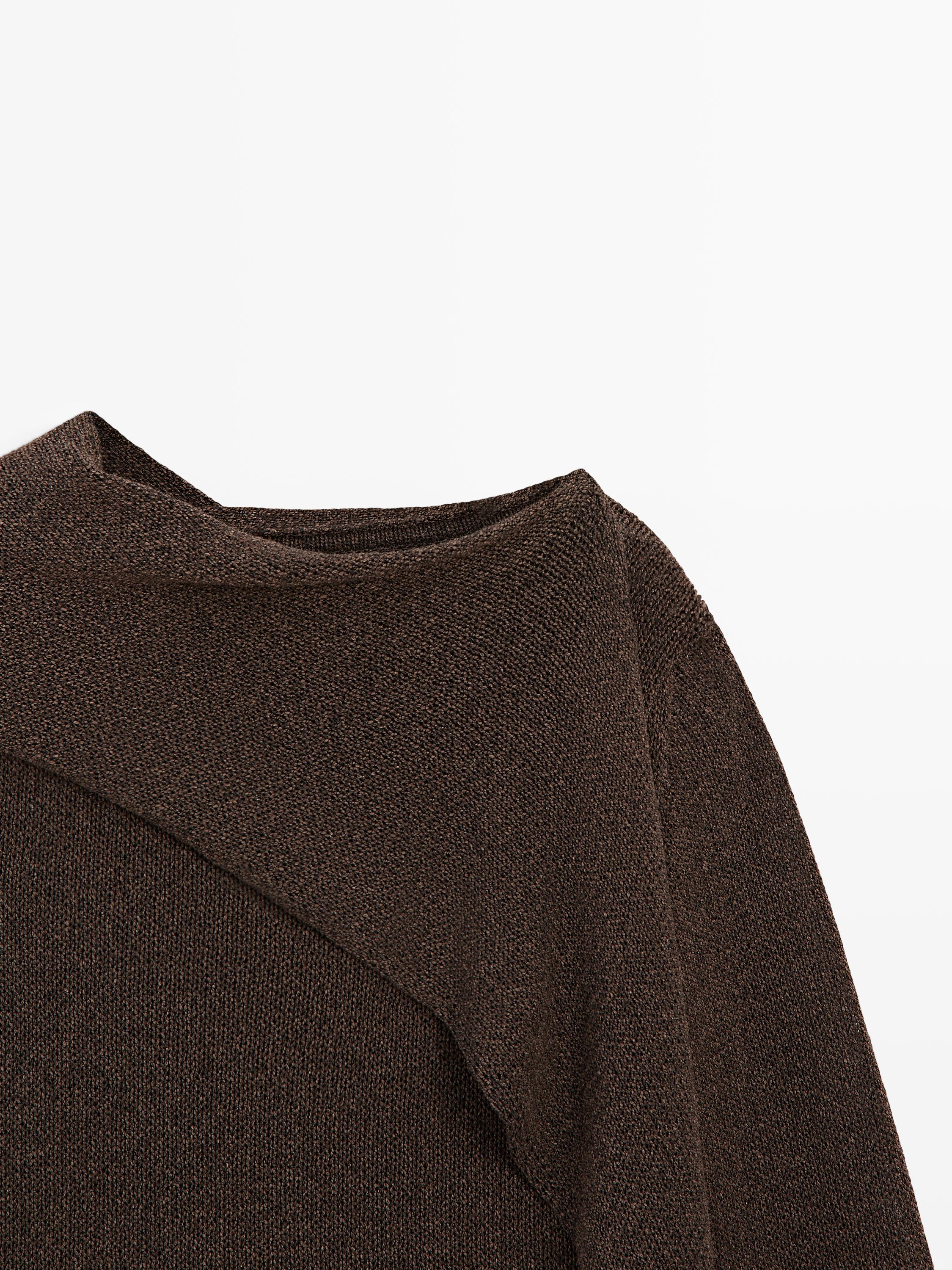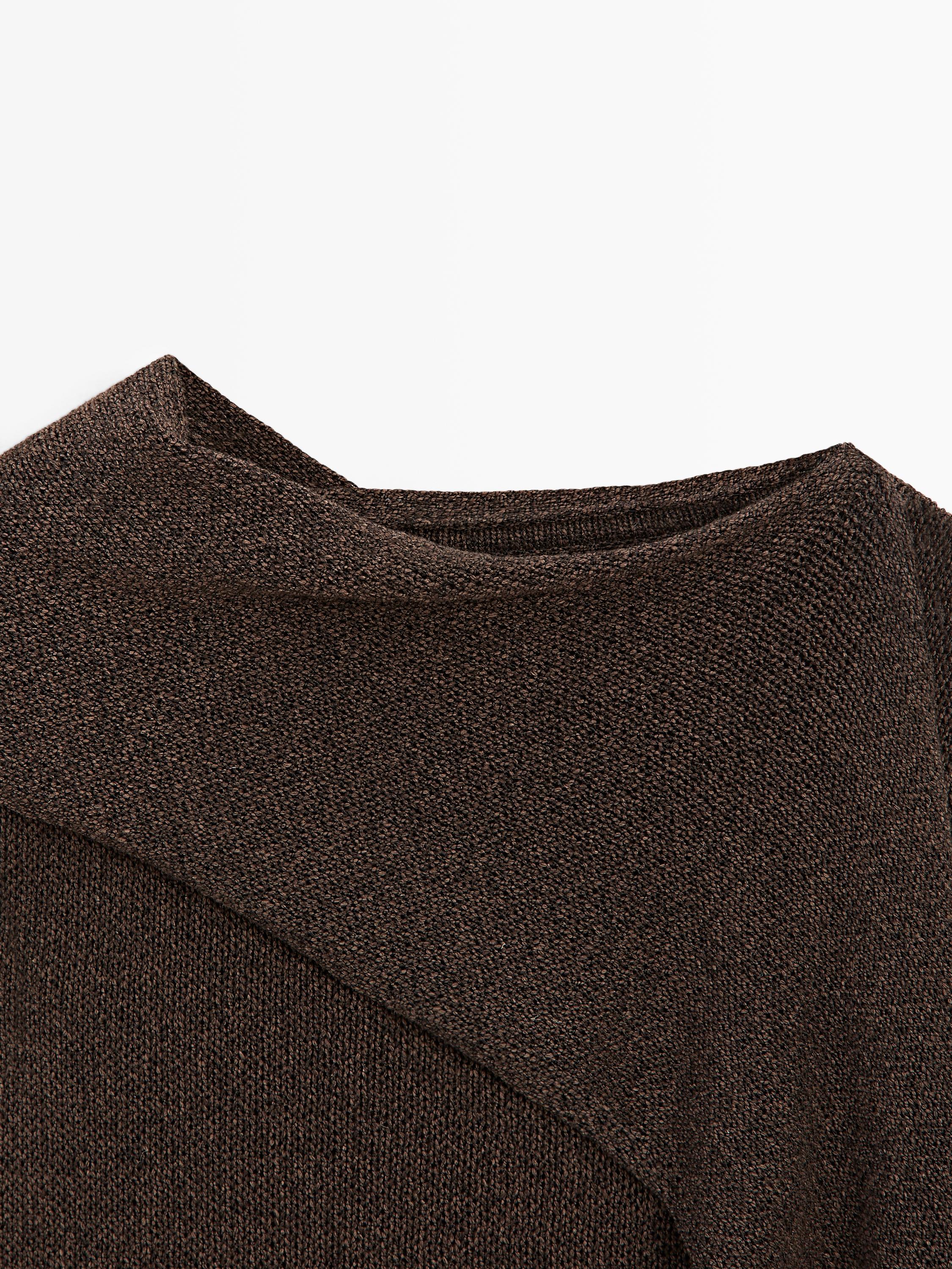 Massimo Dutti Свитер-накидка из смесового хлопка, шоколадный