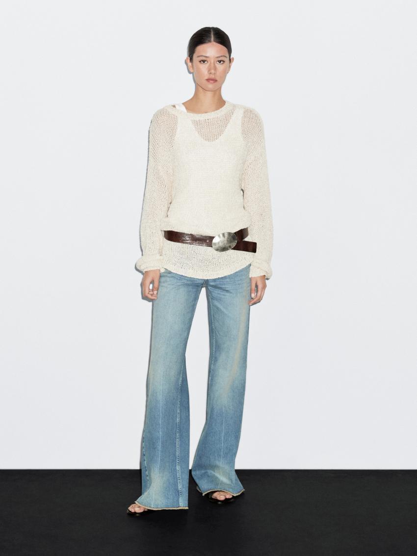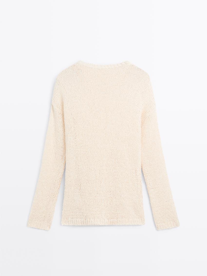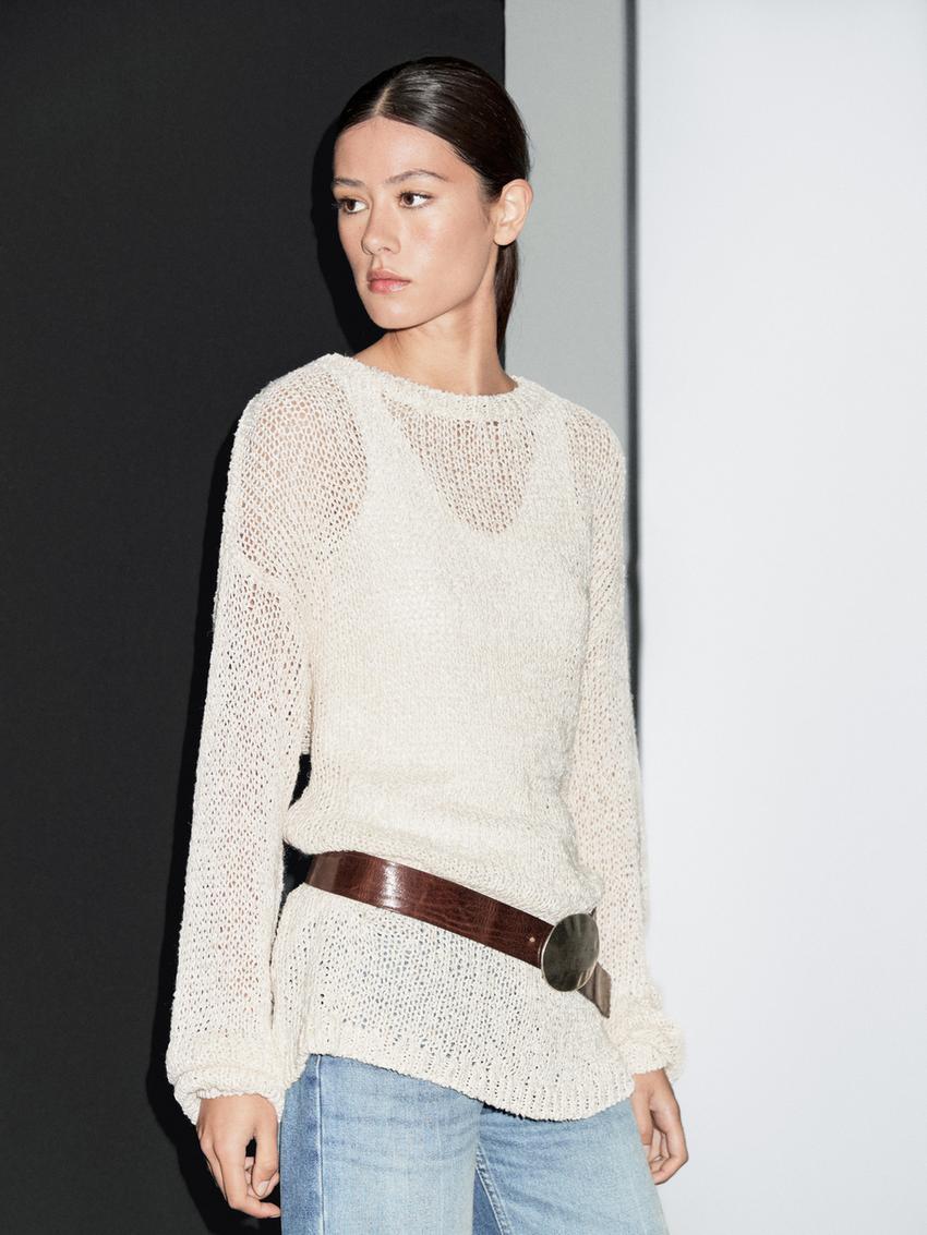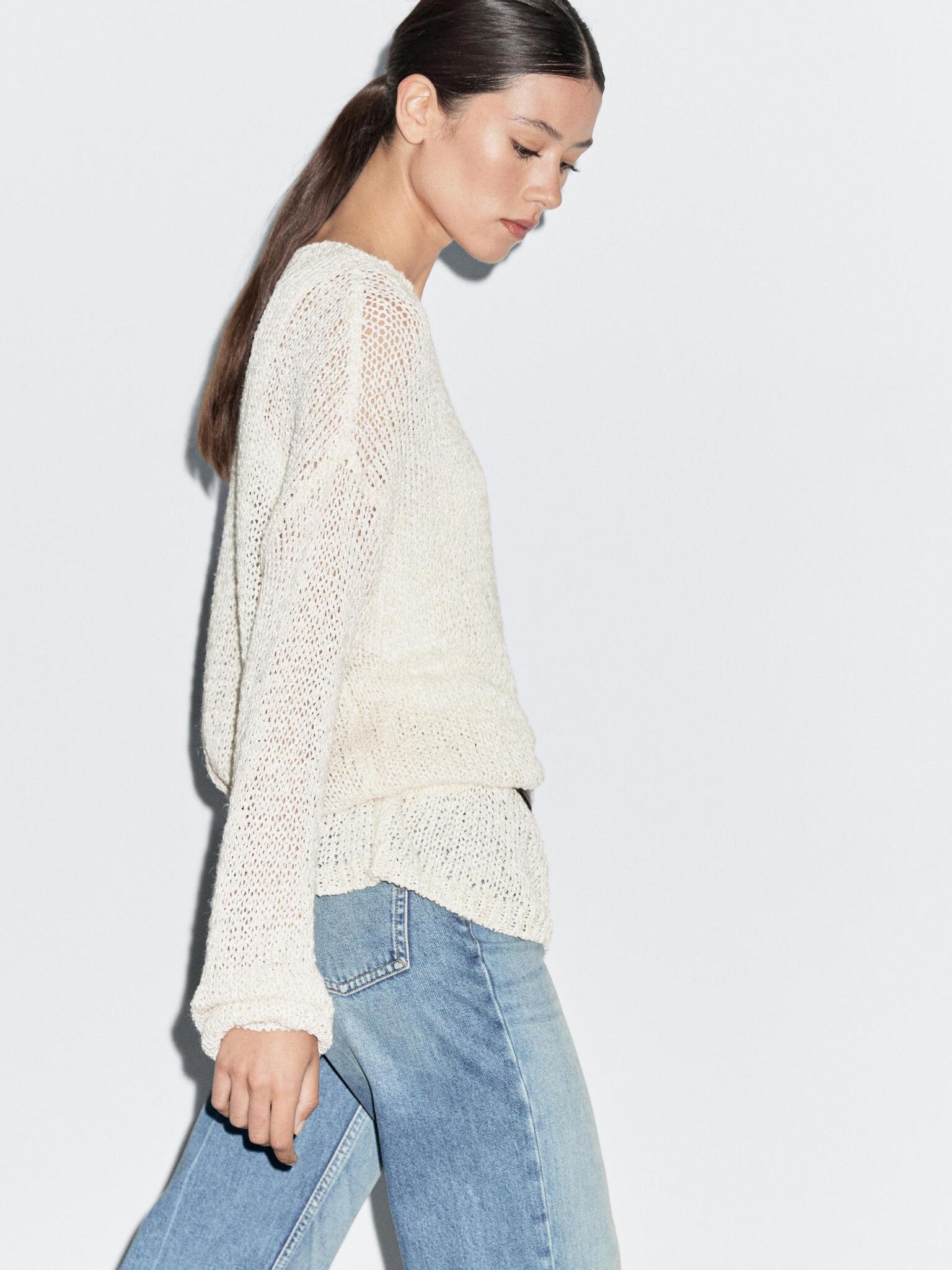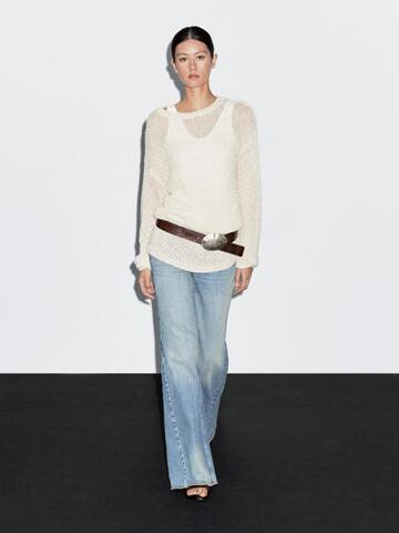 Massimo Dutti Свитер оверсайз ажурной вязки, песочный