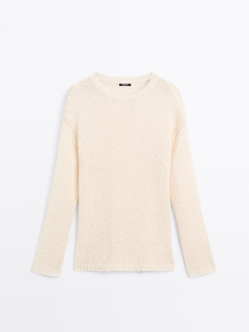 Свитер из смесового льняного трикотажа. Круглый вырез. Длинные рукава. Ажурная ткань . Оверсайз.