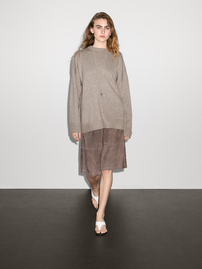 Massimo Dutti Свитер оверсайз из 100% кашемира, бежевый
