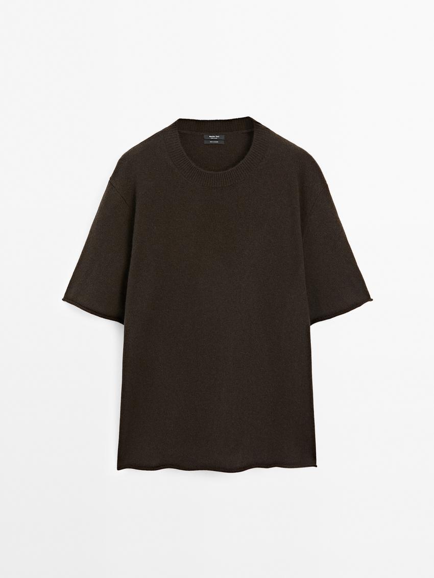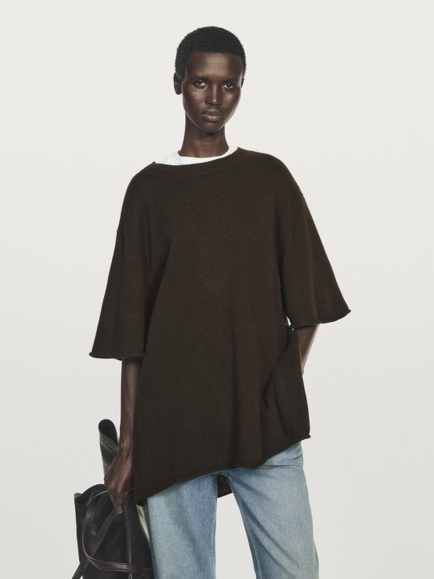 Трикотажный свитер оверсайз. Круглый вырез. Короткие рукава. Изготовлено из 100% кашемира.