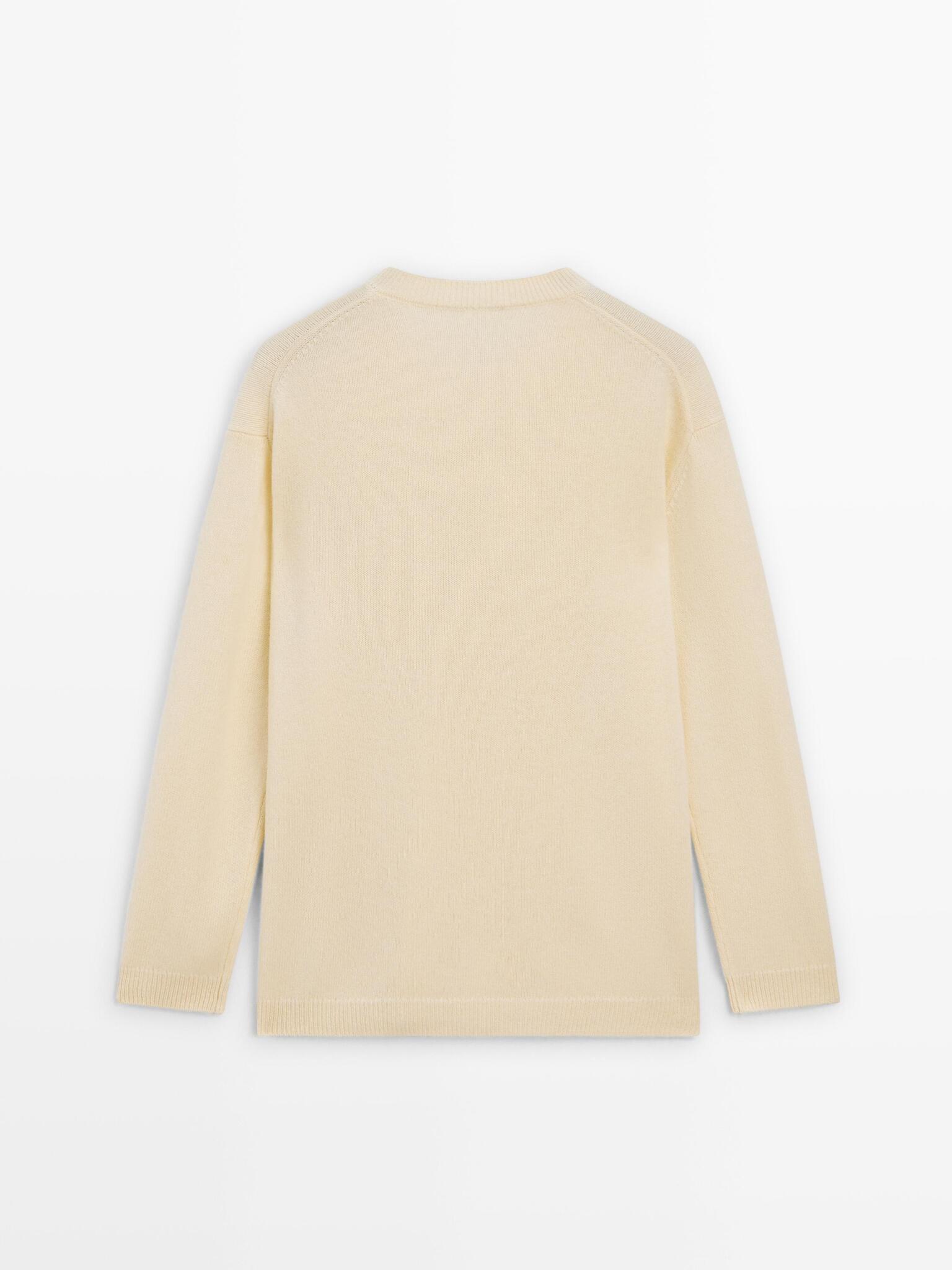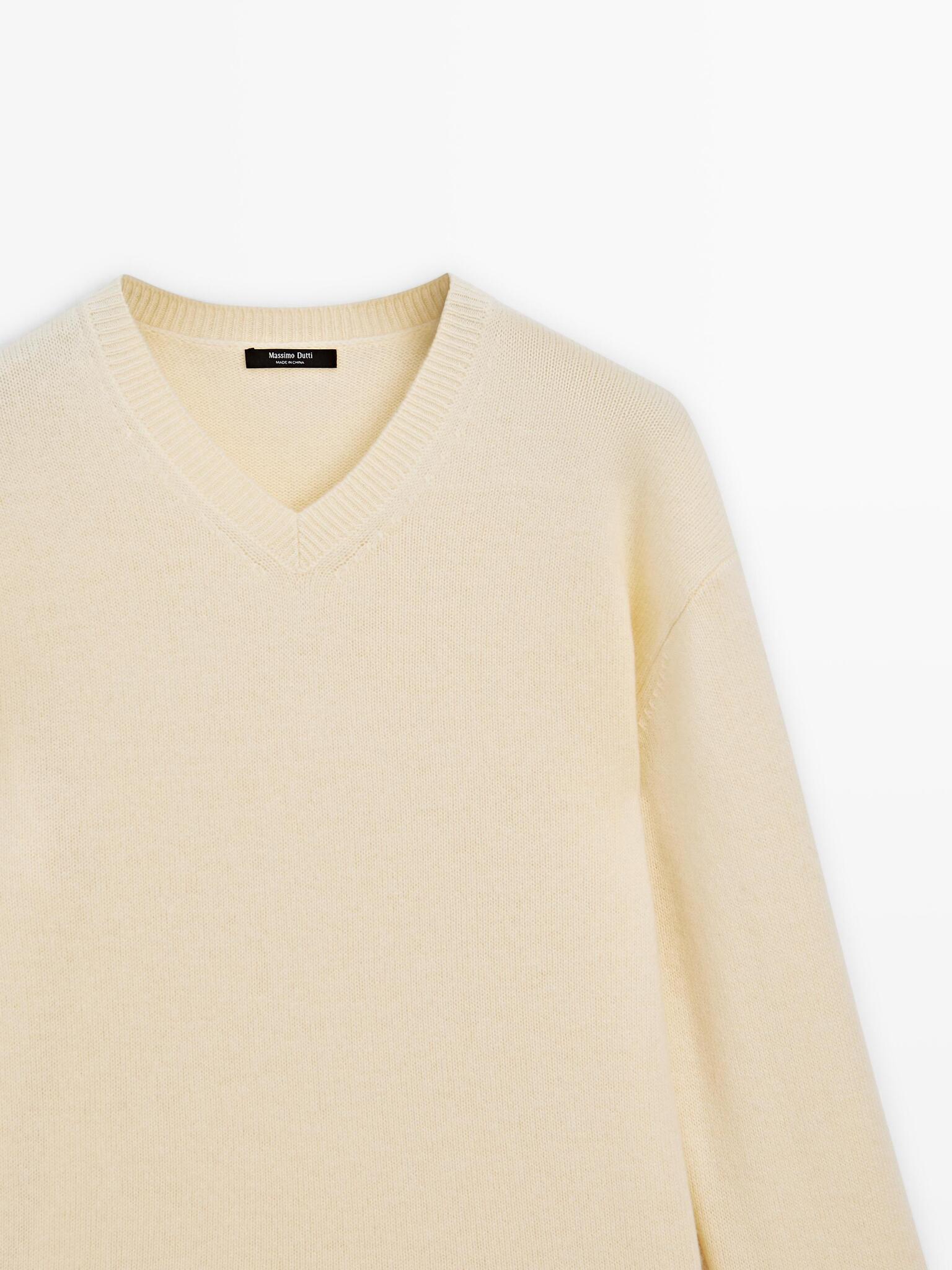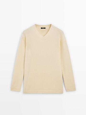 Massimo Dutti Свитер оверсайз с V-образным вырезом, ванильный