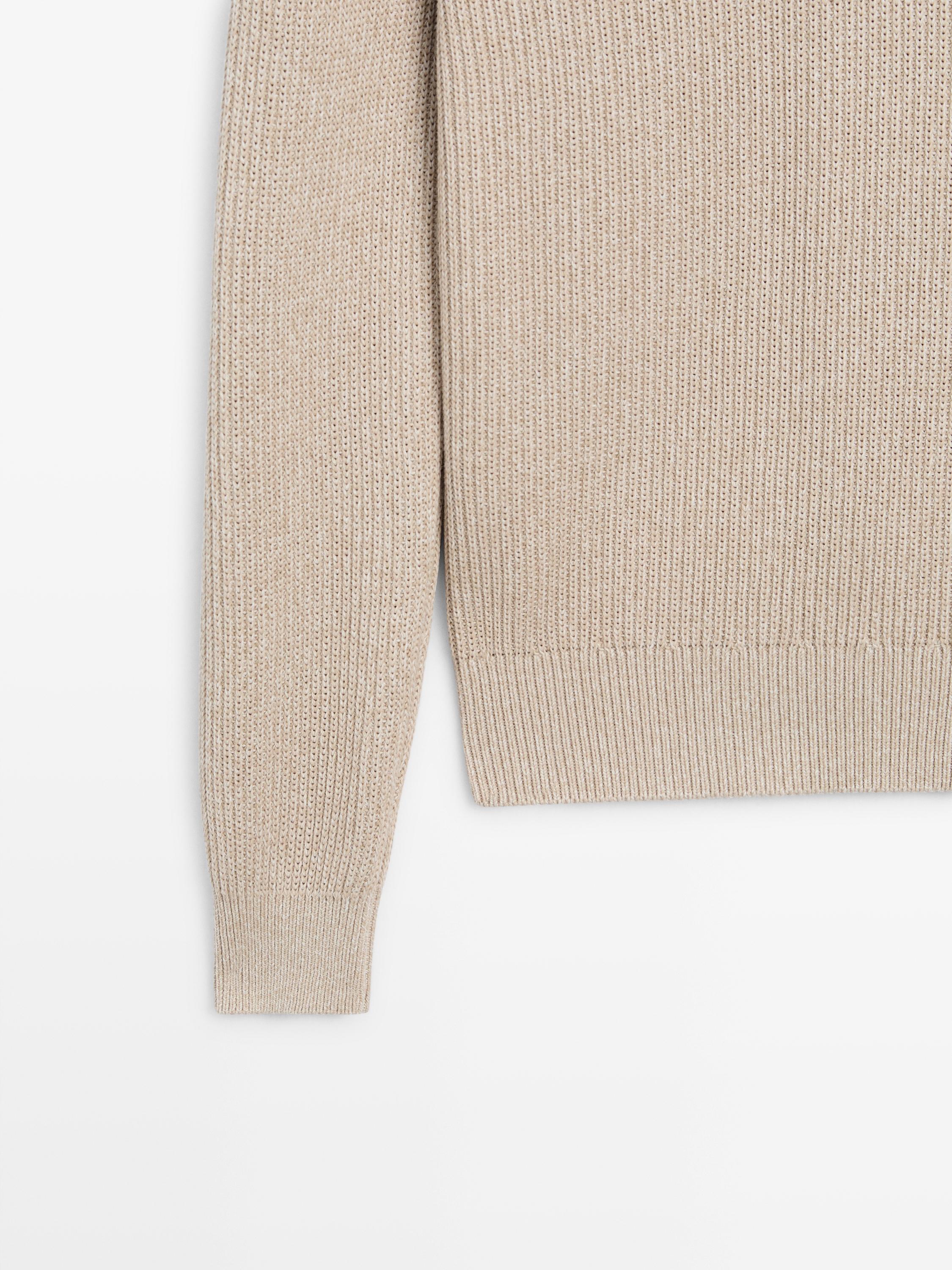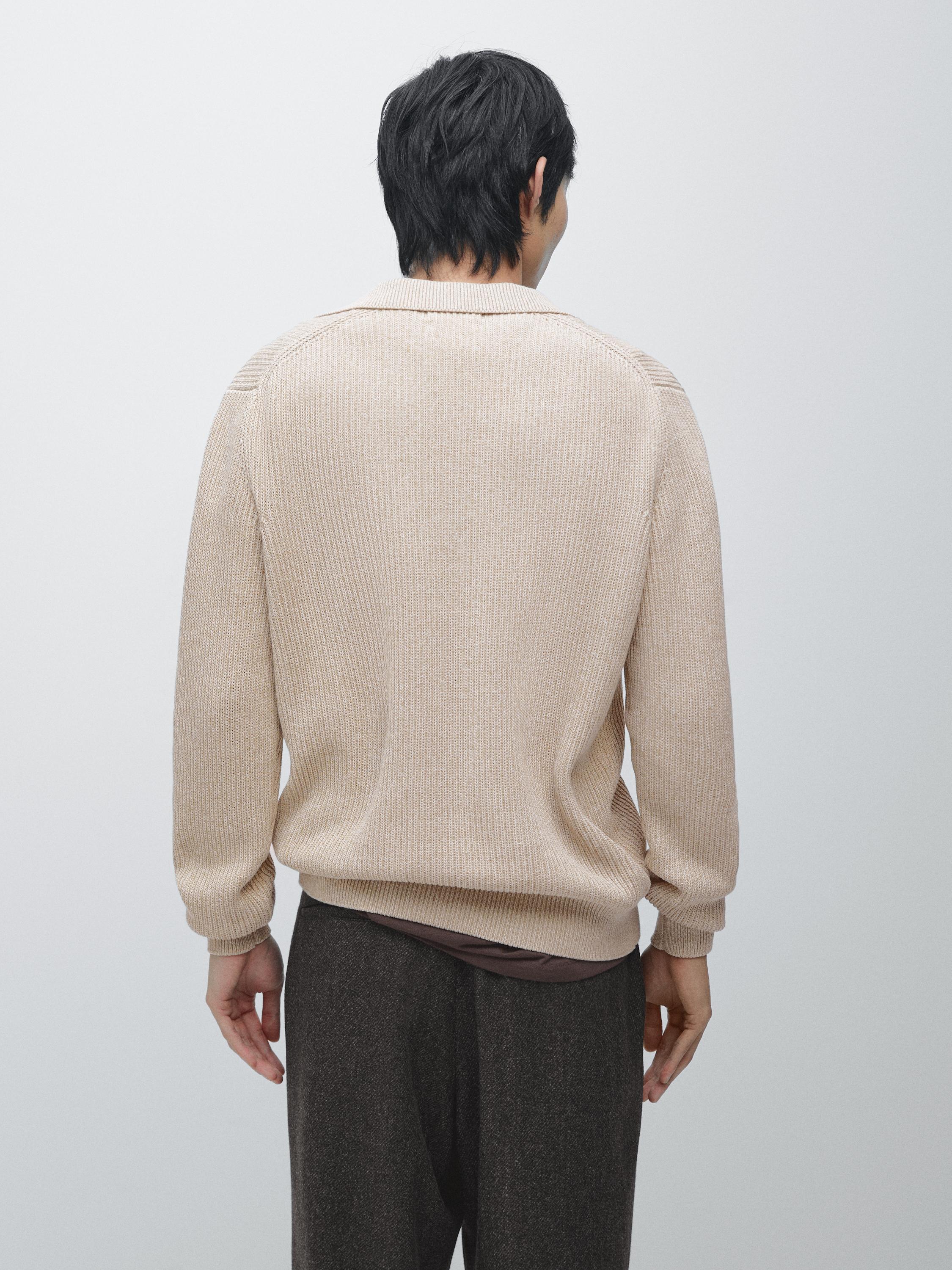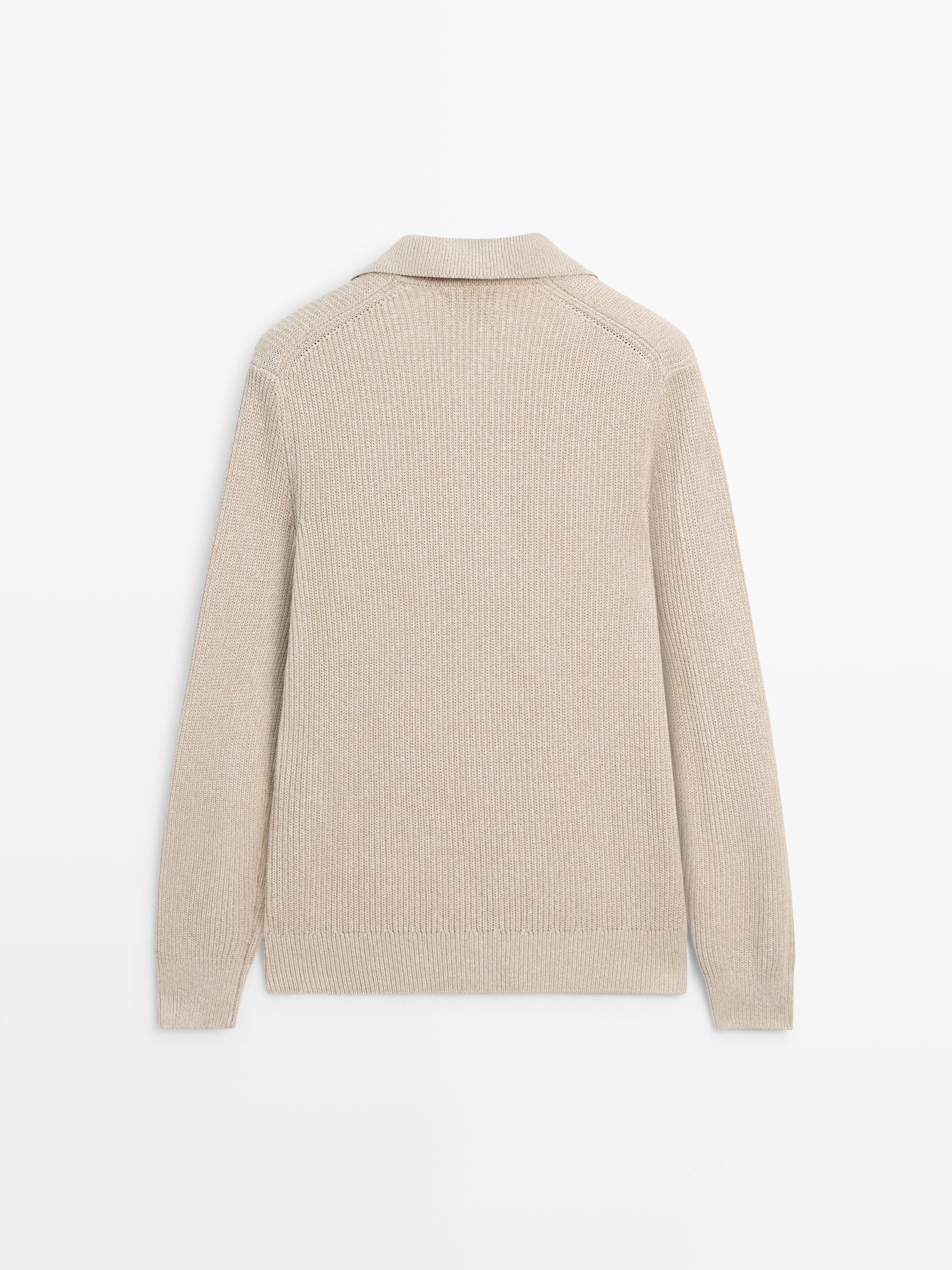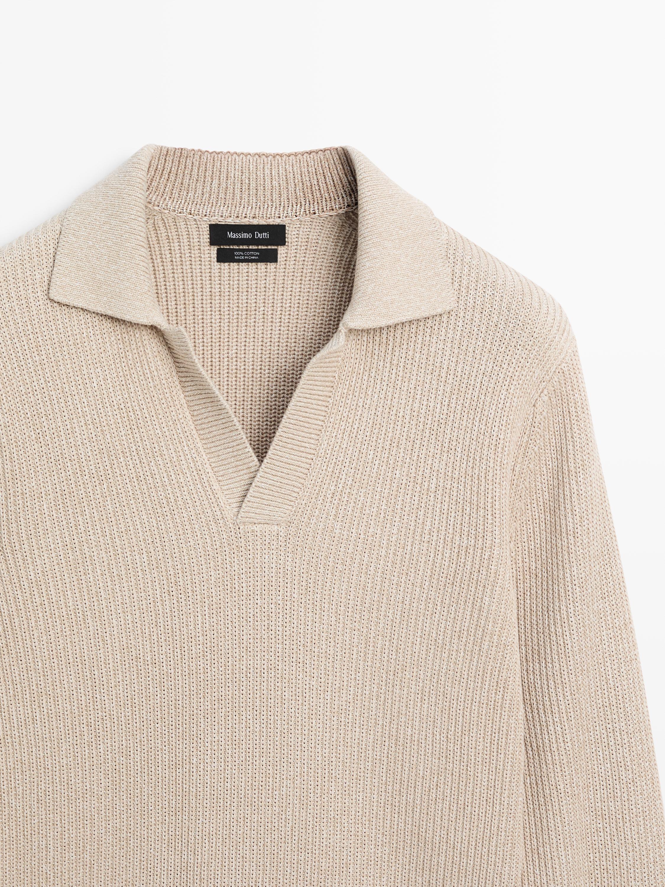 Massimo Dutti Свитер поло из хлопкового трикотажа, натуральный/кремовый