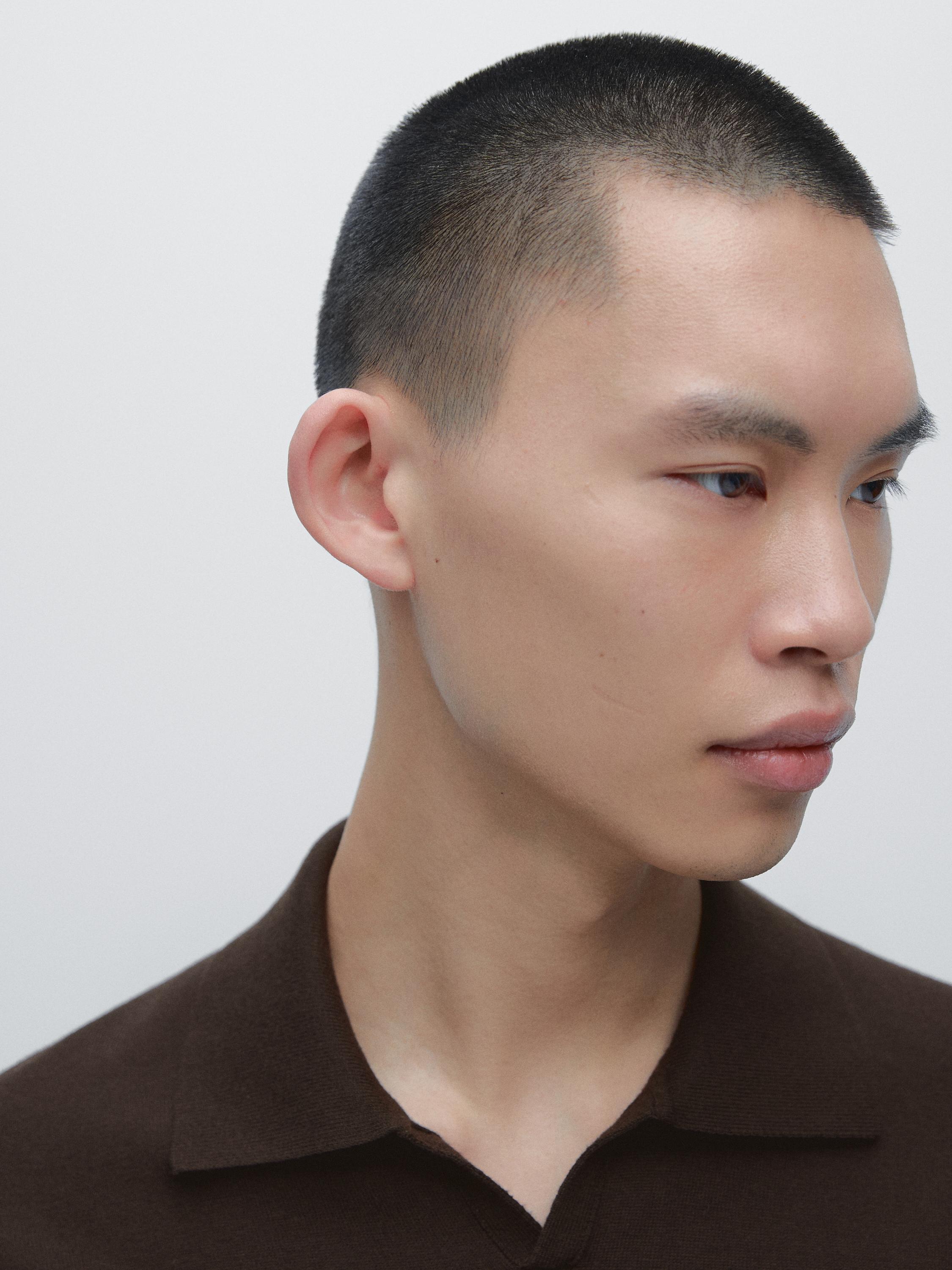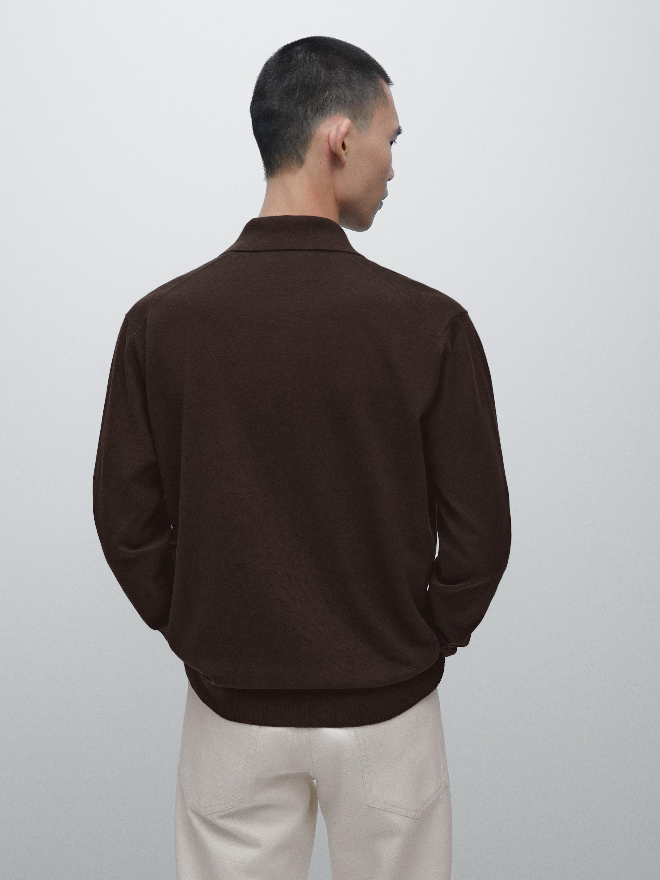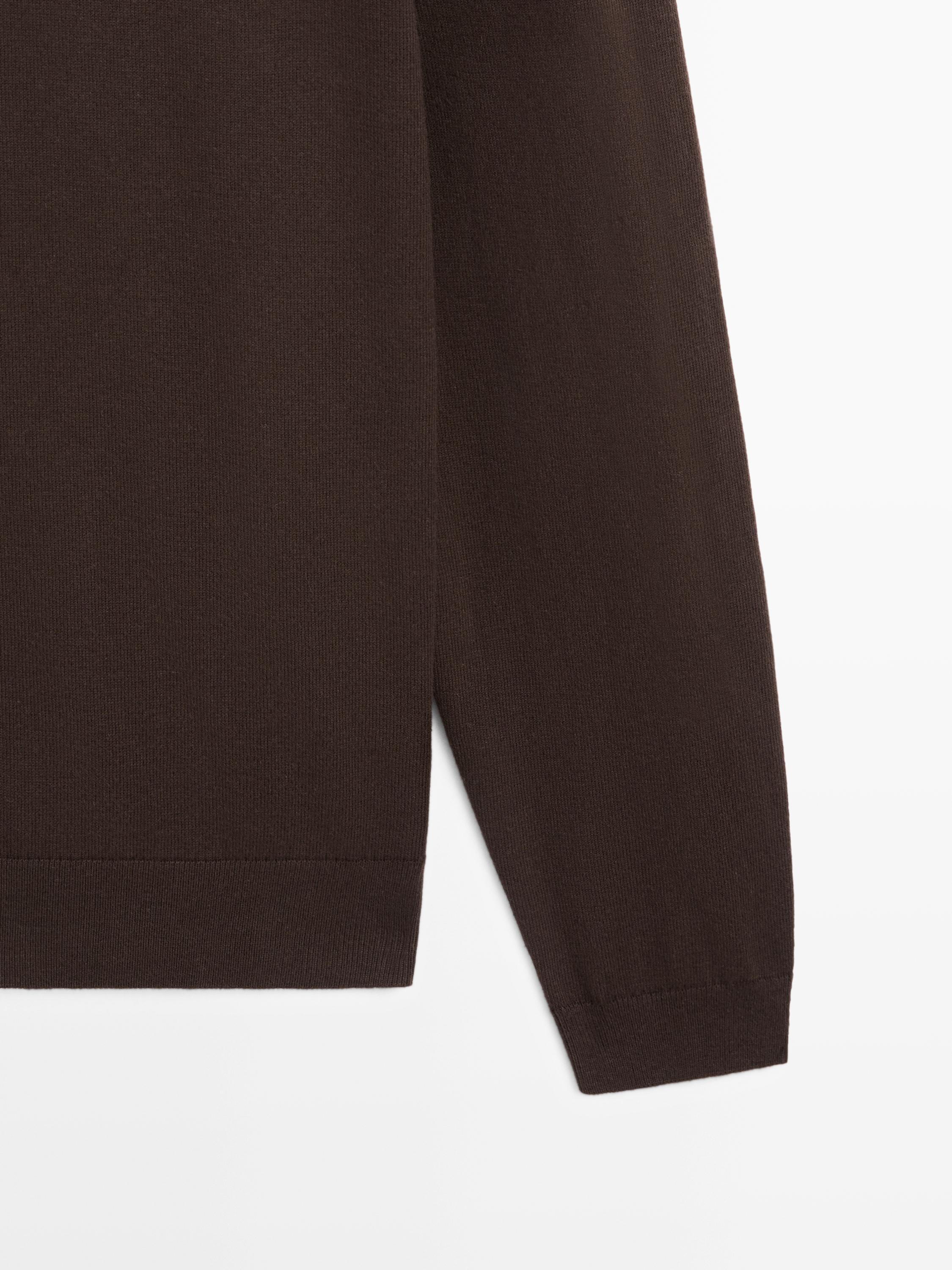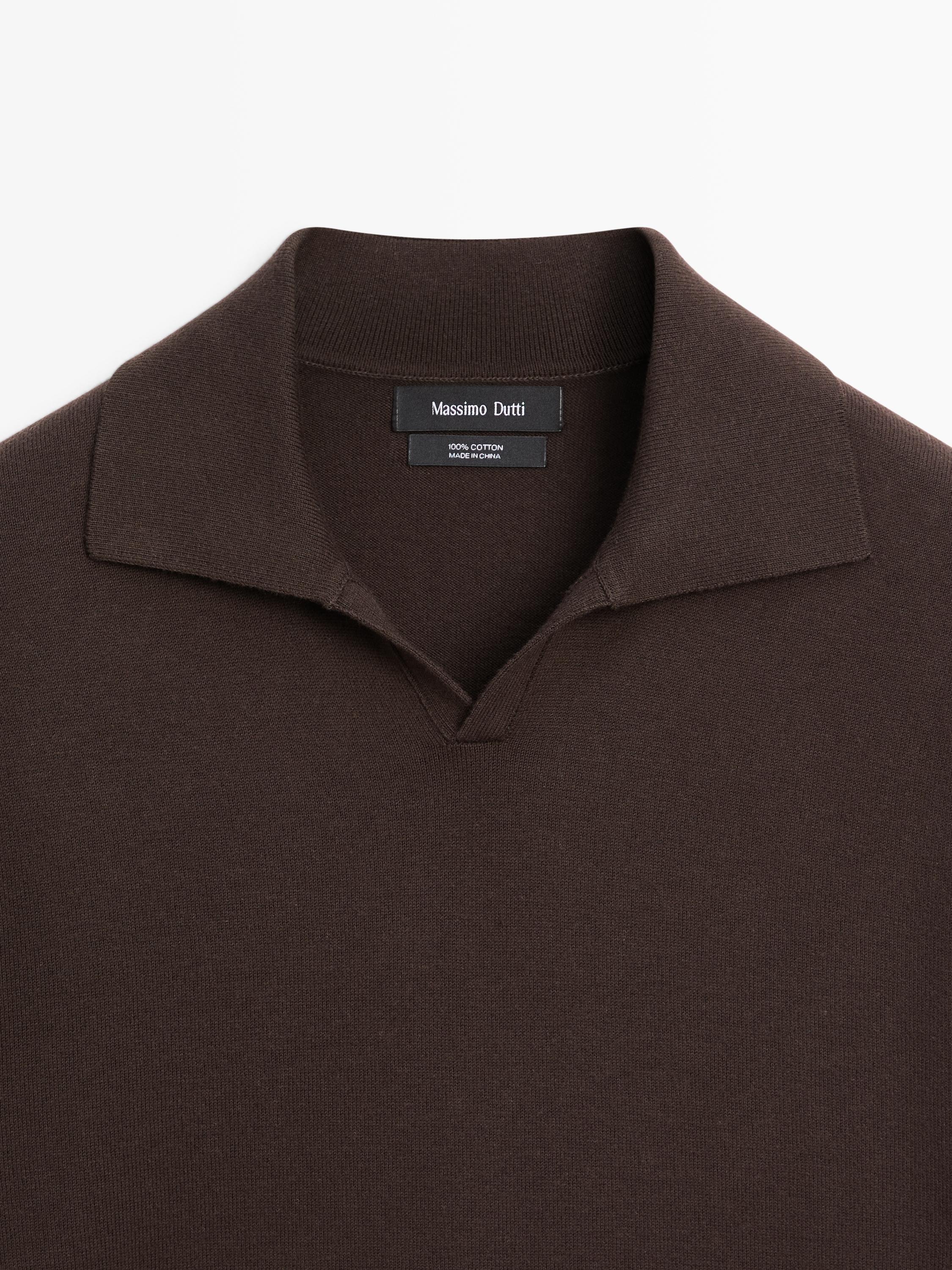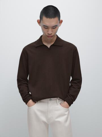 Massimo Dutti Свитер поло из хлопкового трикотажа, пестро-коричневый